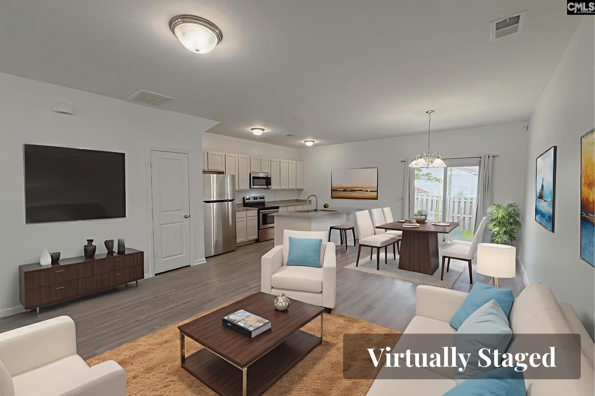 Welcome home to 420 Angel Grove Lane, a former model home that is truly move-in ready and located within a gated community ideally positioned between Harbison and Irmo—just minutes from I-26, shopping, dining, and everyday conveniences.This bright and well-designed 2-bedroom, 2.5-bath floor plan is perfect for comfortable living. The spacious kitchen features granite countertops, stainless steel appliances—including the refrigerator—and a large center island with bar seating, making it ideal for both daily use and entertaining.The entire interior has been professionally painted, providing a fresh, modern feel throughout. Durable LVP flooring spans the main level, while the upstairs features brand-new carpet and padding in both bedrooms and hallways. The first floor also includes a convenient half bath and a generously sized laundry room, with the washer and dryer conveying.Upstairs, both bedrooms have private en suite bathrooms and ample closet space, creating a functional and comfortable layout for homeowners or guests alike.Out back, enjoy a spacious yard with a covered patio and a private storage room—perfect for tools, bikes, or outdoor gear. Best of all, the HOA maintains both the front and backyard, allowing for low-maintenance, worry-free living.With thoughtful updates, fresh finishes, and an excellent location, 420 Angel Grove Lane is ready to welcome its next owner. Schedule your private showing today. Disclaimer: CMLS has not reviewed and, therefore, does not endorse vendors who may appear in listings.