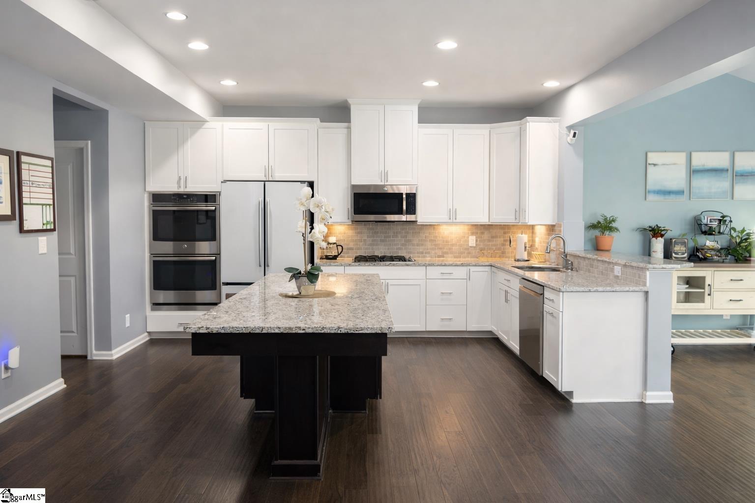 Welcome home to this gorgeous, move-in-ready residence that perfectly blends luxury with everyday functionality. Featuring 4 spacious bedrooms, 3.5 baths, and a dedicated home office, this home welcomes you with an elegant formal dining room and a cozy sitting area just off the entryway. The heart of the home is a stunning open-concept kitchen and Great Room designed for gathering. The chef-inspired kitchen boasts beautiful granite countertops, a designer brick tile backsplash, stainless steel appliances, a gas stovetop, and a large central island that serves as the perfect hub for family and friends. A massive walk-in pantry provides ample storage, while the adjacent breakfast area is flooded with morning light through a wall of windows, making it an ideal spot for a sunroom retreat. The Great Room is anchored by a striking shiplap accent wall and a cozy gas fireplace, creating an inviting atmosphere for relaxation. Just off this space, the stylish home office also features a matching shiplap wall, offering a sophisticated and quiet workspace. Upstairs, the massive master suite serves as a private sanctuary with "his and her" walk-in closets and a spa-like bathroom complete with double sinks, a deep soaking tub, and a separate shower. The upper level also includes a guest suite with its own private bath, two additional bedrooms sharing a well-appointed bathroom, and a versatile loft area perfect for a playroom, media center or jsut a hang out space. The functional laundry room is conveniently located near the bedrooms and includes built-in shelving and a sink. Beyond its aesthetic appeal, this home is built for modern living, coming fully networked for wired internet and equipped with surround sound for effortless entertaining. Stepping outside, you will find a newly fenced-in backyard that offers the ultimate in privacy for outdoor gatherings, pets, or play. Situated in a highly sought-after neighborhood, this beautiful home offers the space, style, and location you’ve been searching for.