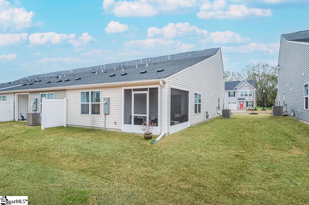 The Villas @ Arden Woods! Discover resort-style living in one of the Upstate's most desirable communities! This home is in immaculate condition! Community highlights: Junior olympic-size pool with shallow-water sunbathing area, golf cart paths throughout the neighborhood, community fishing pond, 2 dog parks, 2 playgrounds, scenic walking trails, SHOPPING AT THE SHOPS at ARDEN:Grocery, restaurants, and other retail just steps away! Less than 5 minutes to interstate access for easy commuting! The Grand Nassau floor plan offers open-concept living with 3 bedrooms (Master suite on main), 2.5 bathrooms, and a garage with an additional two-car parking pad. Laundry on main, also! Charming cottage-style exterior and the DESIRABLE END-UNIT location provides extra natural light and privacy. Inside you'll love the warm, cozy, and welcoming atmosphere. Upgraded storm door has been added as well as blinds throughout. Kitchen has upgraded backsplash, gas range, and a TANKLESS WATER HEATER! All kitchen appliances remain INCLUDING THE REFRIGERATOR! The covered patio has been screened-in and perfect for relaxing outdoors. This home truly offers low-maintenance living in an amenity-rich community! Your own private retreat with everything you need close by. Don't miss this incredible opportunity to have your own home with the ease of maintenance free living! Schedule your showing today!