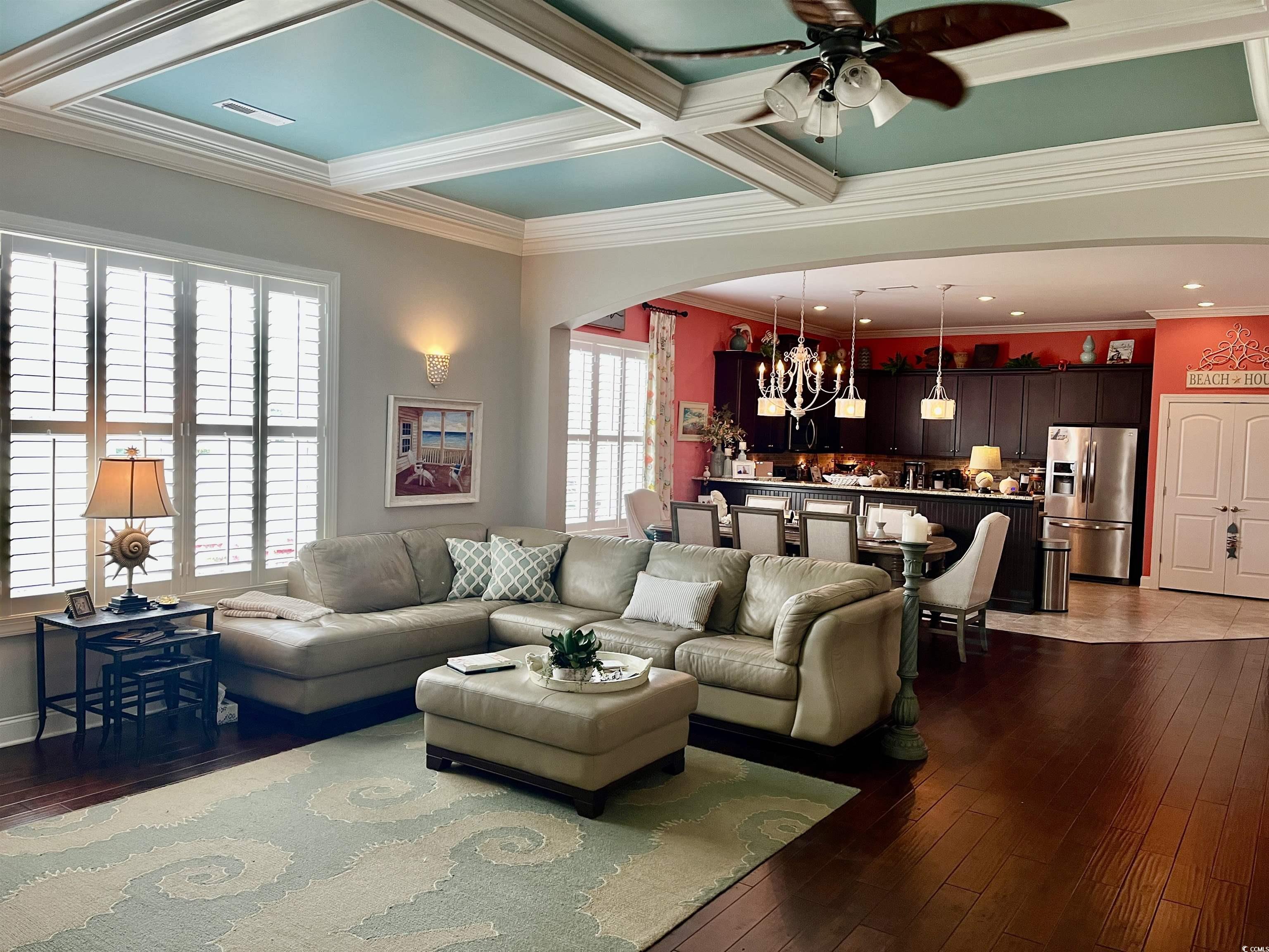 Come live in one of the finest waterway neighborhoods in the Myrtle Beach area. This spacious 3 Br 2.5 Bath home has everything you are looking for in a great home. This home has one of the largest master bedrooms and living area in the neighborhood along with porches for enjoying the beach and waterway breeze. The home features a whole house generator, plantation shutters, hard wood floors, crown molding, zoysia grass, and oversized garage, and expanded kitchen, a formal dining room, tile showers, a jetted master tub, large lake views, and much more in this private gated neighborhood. The home is close to schools, restaurants, grocery stores, shopping, and even a mountain bike park right outside the gates. You can also get across the waterway on a private trail and bike to the beach or YMCA. You will really enjoy sitting on the massive porch on the second floor overlooking the neighborhood lake and fountain. This neighborhood has plenty of boat storage/trailer parking in a gated area and also a gazebo and boat ramp to launch your boats or jet skis into the Intracoastal Waterway. This home is a must see for those looking to enjoy a luxury lifestyle in Myrtle Beach!