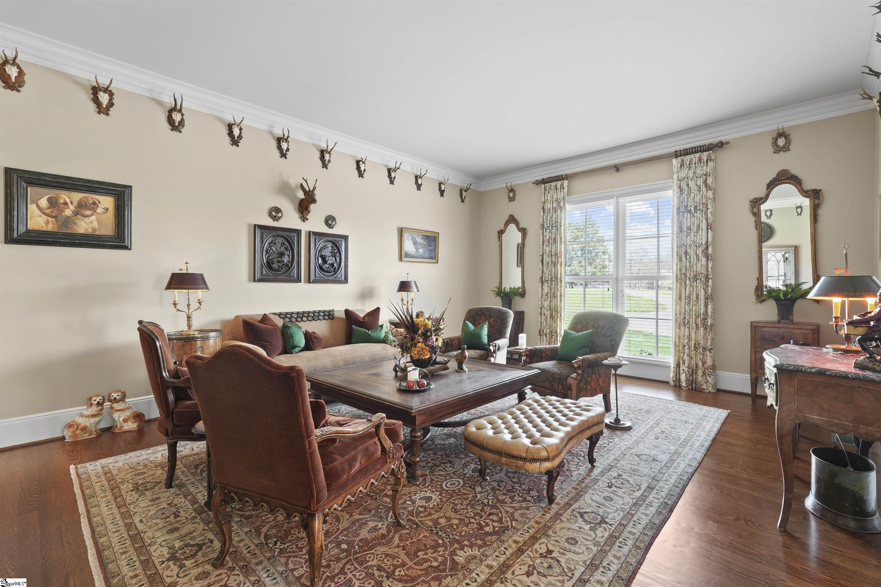 Welcome to an extraordinary 39.8-acre legacy estate in the heart of Easley — a rare and unique property featuring three impeccably maintained residences, each with private utilities and separate driveways. Perfectly suited for multi-generational living, guest accommodations, or income-producing opportunities, this remarkable property blends luxury, privacy, and versatility across acres of beautifully preserved land. Introducing 417 (The White House), 421 (The Main Residence), and 423 (The Brick Home) E Church Road. At the center of the estate stands the custom-built primary residence, completed in 2007 and thoughtfully designed with timeless sophistication. A private, tree-lined drive leads to a stately circular entry. Inside, a custom wood door opens to a grand foyer illuminated by an elegant chandelier, with rich hardwood floors flowing seamlessly throughout the main level. The formal dining room is adorned with tall windows, designer drapery, ornate wallpaper, and a dedicated china and silver closet. The chef’s kitchen is the heart of the home, showcasing custom cabinetry, dual freestanding islands—one for preparation and one for gathering—premium appliances, and a warming drawer. A fully equipped second kitchen and laundry area provides exceptional functionality for entertaining, canning, or extended stays. A private office with floor-to-ceiling built-ins provides the perfect work-from-home retreat. The vaulted sunroom, crowned with a striking chandelier, welcomes natural light and serene views, opening directly to the back patio where a built-in grill and wooded backdrop create an idyllic setting for al fresco dining and entertaining. Two guest suites, privately situated behind French doors, each include en-suite baths and walk-in closets. The primary suite is a true sanctuary, featuring a spa-inspired bath with dual vanities, soaking tub, separate shower, and a custom walk-in closet. The finished basement includes a half bath and flexible space ideal for hobbies, storage, or future expansion. Above the three-car garage, an attic space with water and power presents the opportunity for a future apartment or studio. A separate pole barn with a two-car garage adds even more functionality. Recent upgrades include three newly replaced HVAC units for zoned comfort, a whole-home natural gas generator, professionally installed radon mitigation system, and recently serviced septic systems. A border of mature Arborvitae enhances both privacy and natural beauty. Both The White House and The Brick Home are move-in ready and meticulously maintained, offering endless possibilities for extended family living, guest quarters, or rental income. With a blend of cleared and wooded acreage, the estate invites farming, gardening, recreation, or simply embracing the peace of expansive private land. This is more than a property — it is a lifestyle. Experience Southern elegance, exceptional privacy, and limitless potential on E Church Road. Schedule your private tour and discover what makes this estate truly unforgettable.