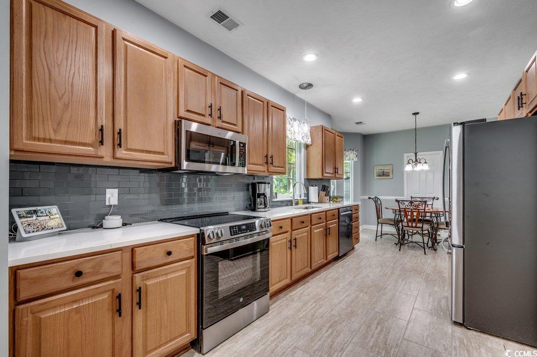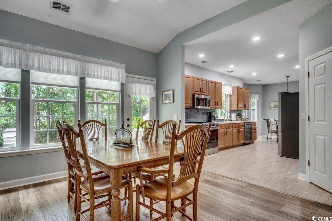 Multi-Generational household? Searching for a real Mother-IN-Law SUITE? Here is the truest form you'll find in turn key condition and an affordable price point. Your 10' ceilings welcome you as you glide effortlessly into your light and open floor plan with gas fireplace. Relax as high quality LVP flooring and fresh paint lead you into the kitchen with gorgeous quartz countertops, new appliances, and spacious pantry. Your worries melt away with the convenient downstairs master bedroom and en-suite bath. A half bath for visitors and 4th bedroom/office space complete the main portion of the first floor. Just steps away you find the connected but separated suite with its cozy living area perfect for family / friends / long term guests. The suite has its own full size bedroom, full bath, and kitchen with sink, refrigerator, and stove. The suite has an exit into the garage where there is an entry door allowing everyone true privacy. Out front is your beautifully manicured lawn with irrigation and covered porch. The wooded back yard has a detached shed, and was built up with a retaining wall for a more desirable grade to enjoy. The roof is 2025 and energy efficient HVAC is 2024. There is a comprehensive improvement list that will give you peace of mind for years to come. Woodlyn Meadows is a great established community with sidewalks and a pool, a short distance from the Little River waterfront, NMB Sports Complex, and the beautiful beaches of North Myrtle Beach. This home has been lovingly cared for by the original owners, and is ready for you to love like they have!