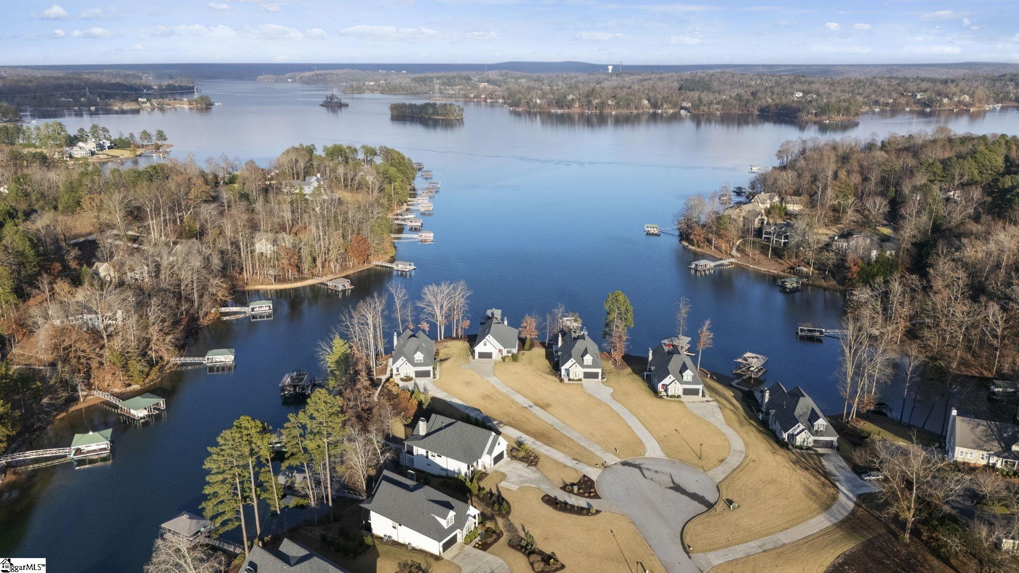 421 Lakestone Court sits at the quiet tip of Lakestone Cottages, offering unobstructed lake views and direct access to one of the cleanest and most desirable lakes in the Carolinas. This 6-bedroom, 6.5-bath waterfront home features multi-level outdoor living, sunrise vistas, and a gently sloping lawn leading to a private deep-water dock with a hydraulic lift. The setting is ideal for swimming, boating, and paddleboarding in a protected cove with year-round depth. Inside, the home’s three-level layout blends luxury and functionality with an open living area overlooking the lake, a well-appointed kitchen with quartz counters, and a main-level primary suite. A second primary suite and additional guest rooms offer privacy, while the lower level includes a mudroom, secondary kitchenette, recreation spaces, and walkout access to the patio and yard. Lakestone Cottages currently allows long-term and short-term rentals; buyers should verify all HOA regulations. This home offers exceptional lake living in a highly sought-after location.