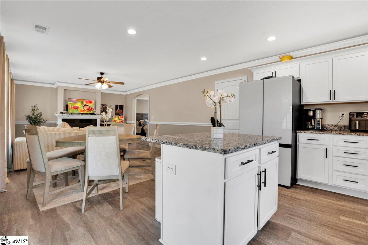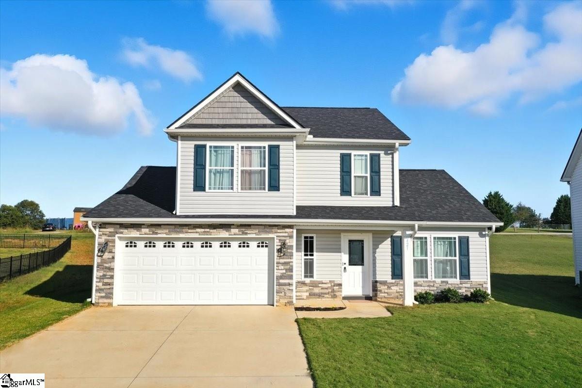 Tucked away on a quiet cul-de-sac and set on just over half an acre, this 2023-built home offers the perfect mix of space, comfort, and function. With 4 bedrooms and 2.5 baths, it’s designed for real life—easy to live in and easy to love. The main-level primary suite features a trey ceiling, walk-in closet, and private bath with dual sinks, granite countertops, and a tiled shower. The open-concept living area brings the great room with a gas log fireplace together with the dining space and kitchen, creating a connected feel without losing coziness. The kitchen includes granite countertops, stainless steel appliances, a center island, and a spacious pantry—perfect for both family dinners and entertaining friends. Luxury vinyl plank flooring runs through the main living areas, while soft carpeting adds comfort to each bedroom. Upstairs, you’ll find three additional bedrooms and a full hall bath with granite counters and a tub/shower combo. Out back, the screened porch overlooks a peaceful backyard—ideal for morning coffee, reading, or unwinding in the evening. You’re also just minutes from Lake Robinson for fishing, walking trails, and quiet views. Conveniently located between Greenville, Greer, and Landrum, you’ll have quick access to local restaurants, shops, and everyday essentials while still enjoying a tucked-away feel. If you’ve been searching for a newer home that feels calm, comfortable, and move-in ready—this one’s worth a look.