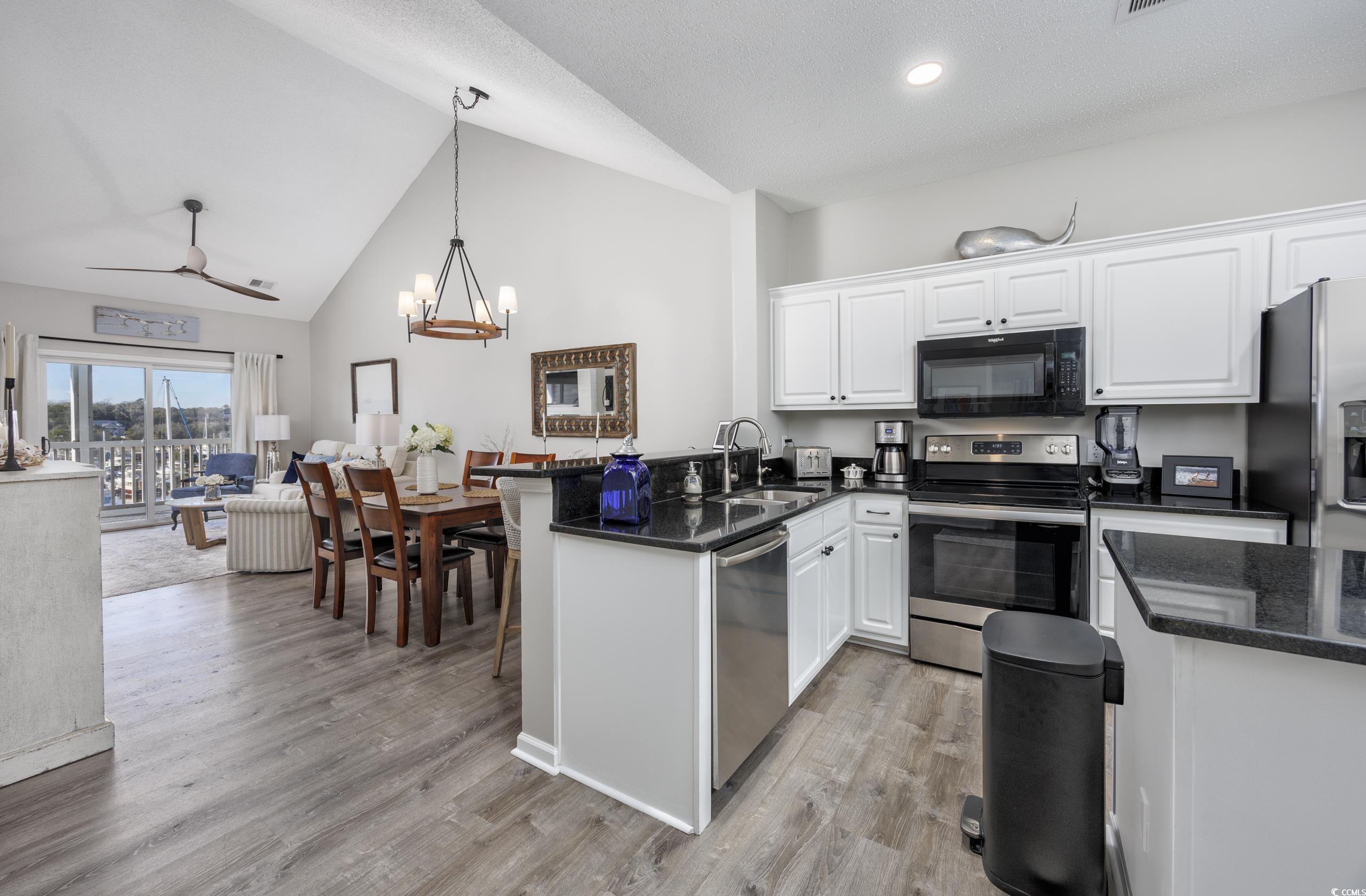 Discover this stunning 2-bedroom, 2-bath condo on the third floor of Harbourfront Villas in Little River, complete with elevator access. Recently remodeled to perfection, this unit boasts new tile throughout both bathrooms, the screened-in porch, and outdoor closet. The master bath features a luxurious tiled shower with a new glass door, while both bathrooms showcase updated vanities, mirrors, and toilets. Fresh ceiling fans grace the living room, guest room, and master bedroom, complemented by new light fixtures in the dining area, bathrooms, hallway, and guest bedroom, including a dimmer switch in the dining area. The renovation extends to new exhaust fans in the bathrooms, a custom shiplap wall for the mounted TV and electric fireplace, and a fresh coat of paint throughout, including indoor and outdoor closets. The laundry room benefits from new cabinets and an added pantry, while the hot water heater and HVAC system were replaced in August 2024, ensuring modern comfort. This practically brand-new unit offers breathtaking views of the marina and a glimpse of the Intracoastal from its third-floor vantage point. Enjoy scenic walks along the boardwalk to the Lighthouse, with restaurants within walking distance and the beach just a 5-minute drive away. The washer/dryer is negotiable, though the water purifier does not convey. The ductwork has recently been sanitized, and the new HVAC includes air purification system. This meticulously updated condo truly offers all the bells and whistles for luxurious coastal living. Sellers would consider selling furnished with the exception of some items. Units can be rented for 30 days.
