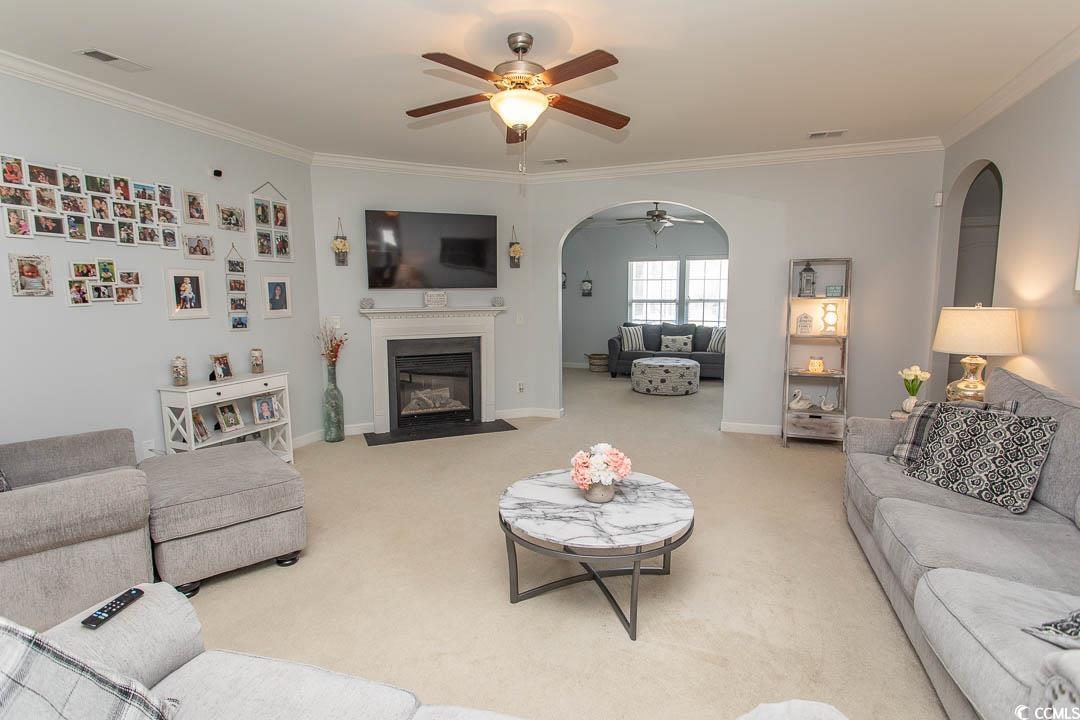 Stunning 3-bedroom 2.5 bath home with 2,531 sq. ft. of heated living space located in the highly desirable Clear Pond community of Carolina Forest. Built in 2008, this beautifully maintained ranch-style home offers a spacious open layout, abundant natural light, and a warm, inviting atmosphere from the moment you step inside. The Gourmet kitchen features custom cabinetry, Corian countertops, stainless steel appliances, a breakfast bar, and a large pantry - perfect for everyday living and entertaining. The expansive living area includes a cozy fireplace and solar-tube skylights, while the primary suite provides a relaxing retreat with dual vanities, a garden tub, separate shower, and his and her closets. Two additional bedrooms are privately separated from the master, ideal for guests, family, or office use. Enjoy peaceful views from the screened porch and a beautifully landscaped yard that offers both privacy and tranquility. Located in the sought-after Carolina Forest School district, Clear Pond amenities include two resort-style pools, a clubhouse, fitness center, and a playground all just minutes from shopping, dining, golf, and the beach. This is Carolina Forest living at its finest--elegant, and move-in ready. You don't want to miss this home!!!