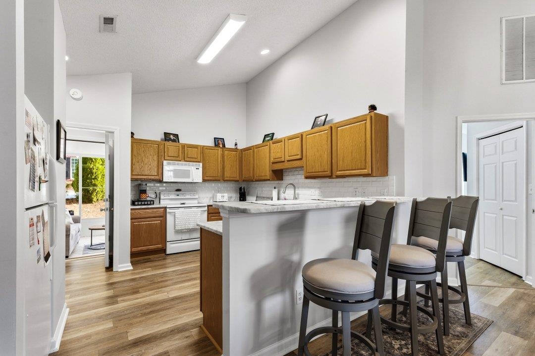 Welcome to this well-appointed 3-bedroom, 3-bath semi-detached home with a one-car garage, ideally located in Little River, SC, just off Highway 17 and minutes from the Intracoastal Waterway. Situated in Flood Zone X, this home offers peace of mind along with a low-maintenance coastal lifestyle. The home features an open floorplan designed for easy living and entertaining, complemented by updated LVP flooring and tall, cathedral ceilings that tie in seamlessly with the home’s many modern updates. The main level offers a comfortable and convenient layout with a spacious primary suite and a guest bedroom on the first floor, providing flexibility and accessibility. This home showcases an impressive list of recent upgrades and features, including a new roof in 2022, updated kitchen countertops, a new kitchen faucet, and a stylish backsplash. New GFCI outlets, new smoke/fire alarms, and a whole-house surge protector provide enhanced safety and functionality throughout. Comfort and efficiency upgrades include ceiling fans in the living room and guest bedrooms, new ceiling vents in all bathrooms, and a new HVAC compressor with regular servicing. The third bedroom on the second-floor features new carpet, and a new railing along the staircase adds both safety and visual appeal. The first-floor guest bathroom has been updated with a new vanity and toilet, offering convenience and a refreshed look for guests. A standout feature of the home is the enclosed patio, finished with stamped concrete flooring and surrounded by large windows with screens, allowing you to comfortably enjoy fresh air and changing weather year-round. The space also includes a ceiling fan and TV mount, making it ideal for relaxing or entertaining. Community amenities include and cover landscaping, mulching, irrigation, pool access, trash service, cable and internet, pressure washing, gutter cleaning, interior and exterior pest control, and fire ant treatments, providing truly effortless living. It is conveniently located near shopping, dining, golf, marinas, the Intracoastal Waterway, and all the Little River waterfront restaurants and activities. Great waterfront dining, the Little River Shrimp Festival, and Blue Crab Festival are just a few minutes away. For convenience, all the shopping in North Myrtle Beach is just a few miles in the other direction. This home is near hospitals, medical facilities, and major highway interchanges, making this location as convenient as it gets. Comfort, upgrades, and location come together beautifully in this Little River gem.