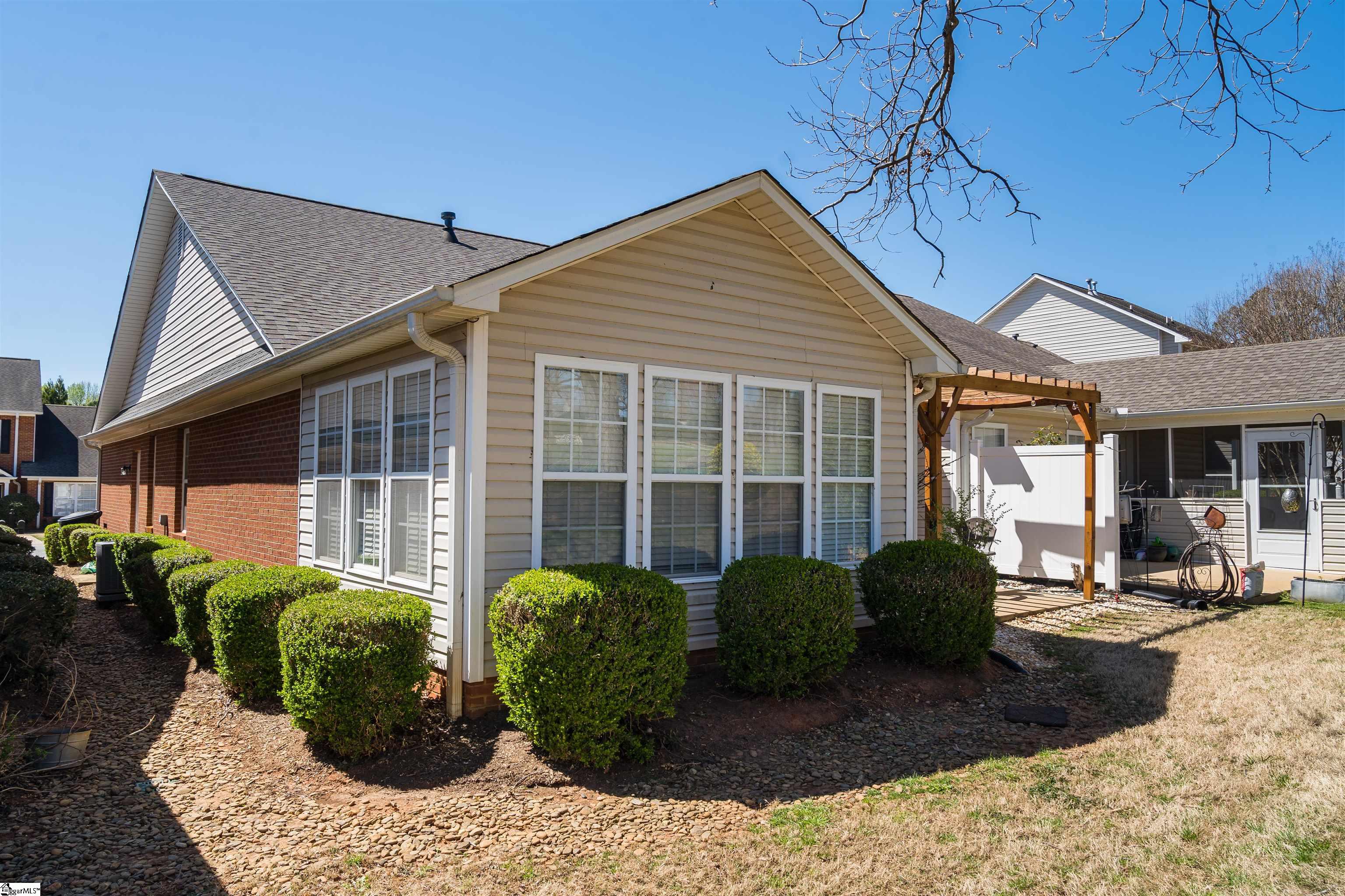 Welcome to 423 Rexford Drive, a well located, single level townhome in Moore, SC offering comfort, convenience, and thoughtful design. Situated in a small community just off Highway 290, this home enjoys a peaceful setting backing to an open field while remaining close to everyday essentials including grocery stores, pharmacies, medical offices, shopping, and a wide variety of dining options. The location provides easy access to both Greenville and Spartanburg, with GSP International Airport approximately 15 minutes away and quick connections to Interstates I-26 and I-85 within a short drive making commuting and travel simple and efficient. Inside, the home features an open floor plan designed for easy living. A welcoming foyer leads into a well-appointed kitchen with upgraded stainless steel appliances, breakfast bar, and a pantry. The kitchen overlooks the dining area and flows seamlessly into the spacious great room, highlighted by a vaulted ceiling and a two sided fireplace. On the opposite side of the fireplace is a bright sunroom filled with natural light and views of the backyard an ideal flex space that can serve as a home office, reading room, or additional living area. The primary suite offers an elevated ceiling, an oversized walk-in closet, and a private bath with tile flooring, a large vanity with generous counter space, and a walk-in shower. A split bedroom layout provides privacy, with a generously sized guest bedroom and a full guest bath. Additional features include a 10x20 one-car garage that works well for parking, storage, or a workshop. Major updates include a 30 year architectural shingle roof installed in 2025 and a new HVAC system installed in 2023 by Waldrop HVAC. With all living space on one level, no steps at entry points, and a location that balances quiet surroundings with outstanding accessibility, this home offers an excellent opportunity for low-maintenance living in a highly convenient area. At $495 per year with all landscape maintenance included this is one of the lowest cost HOA's you will ever see. Schedule your private tour today.