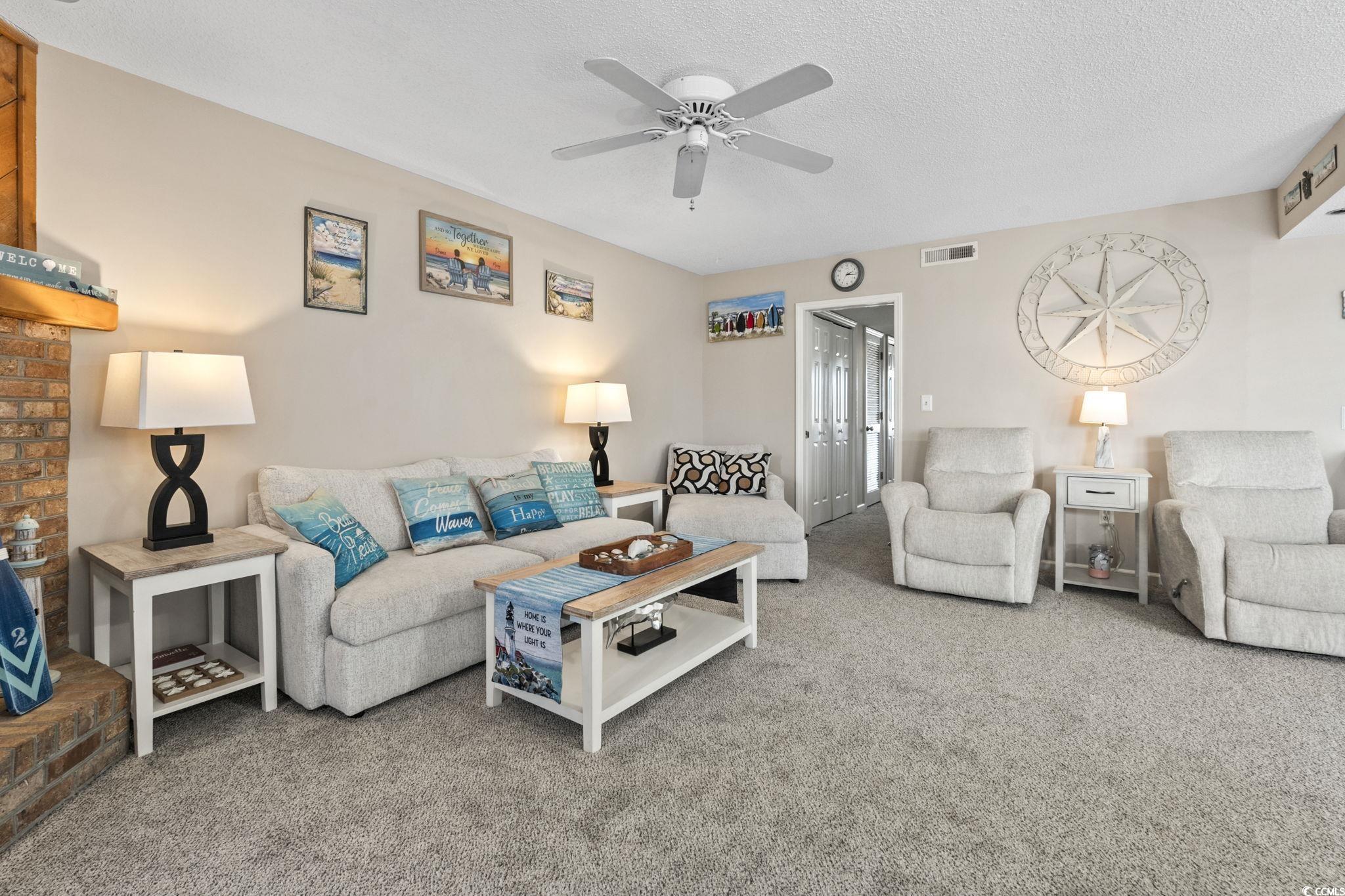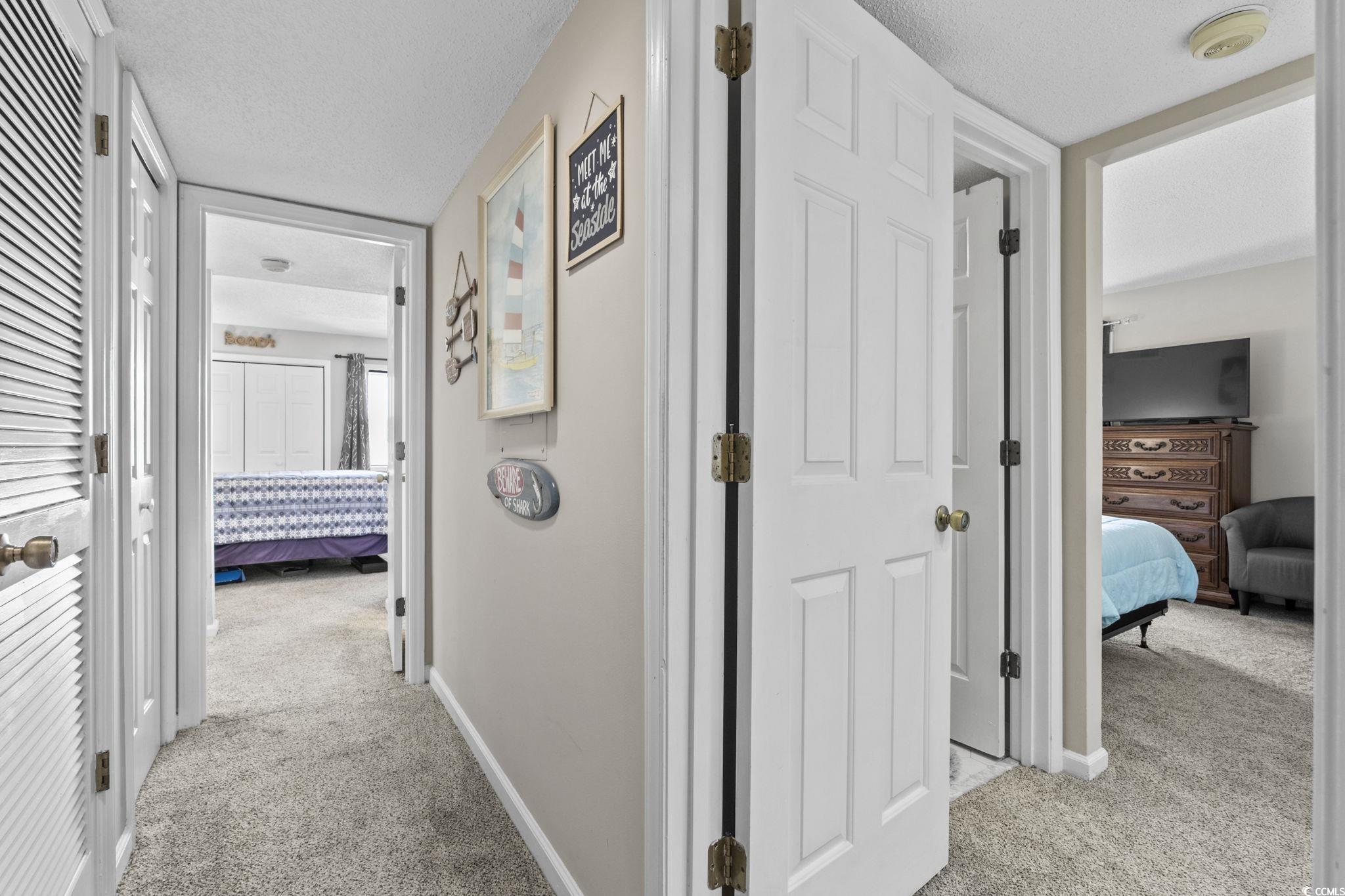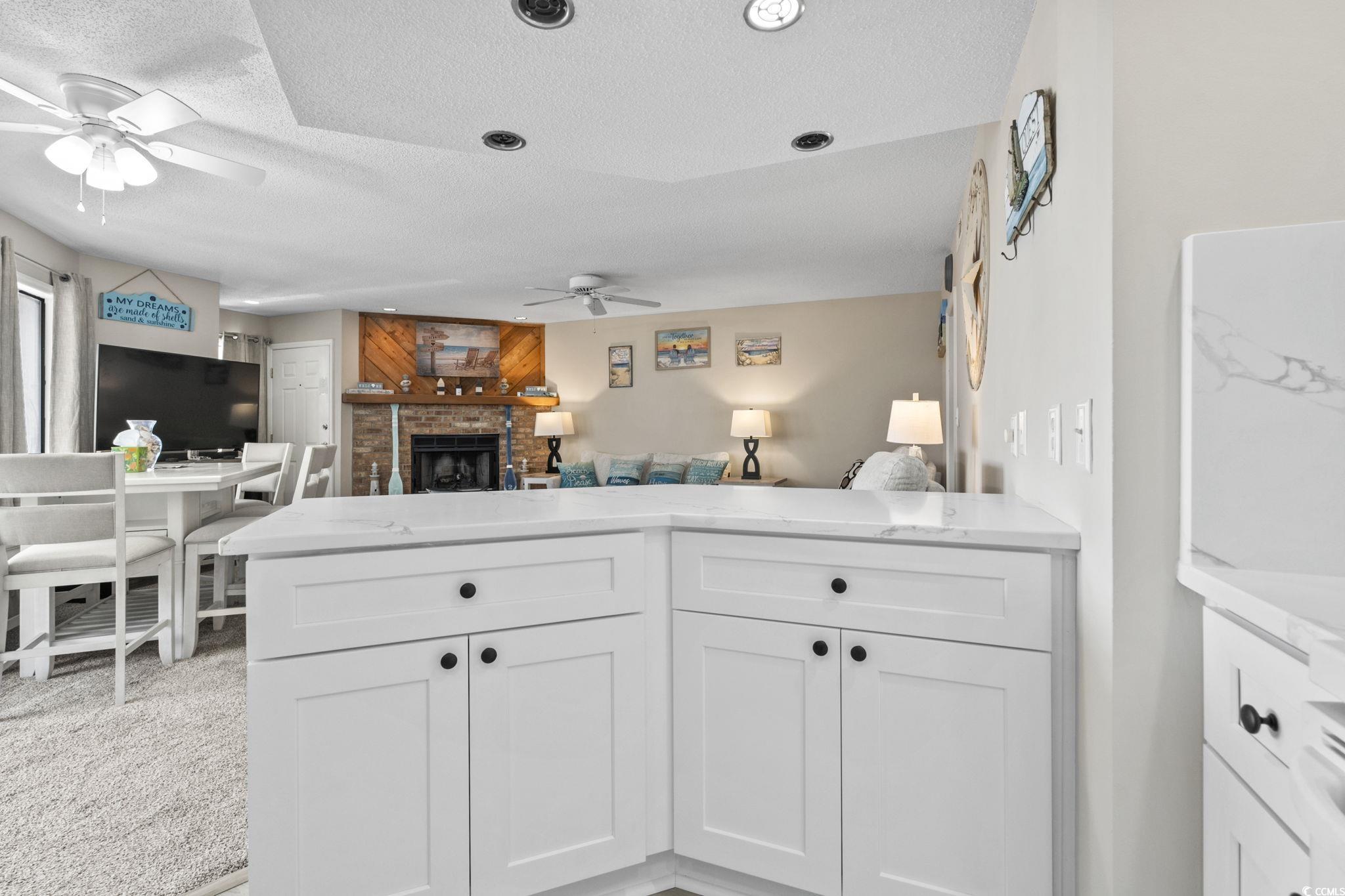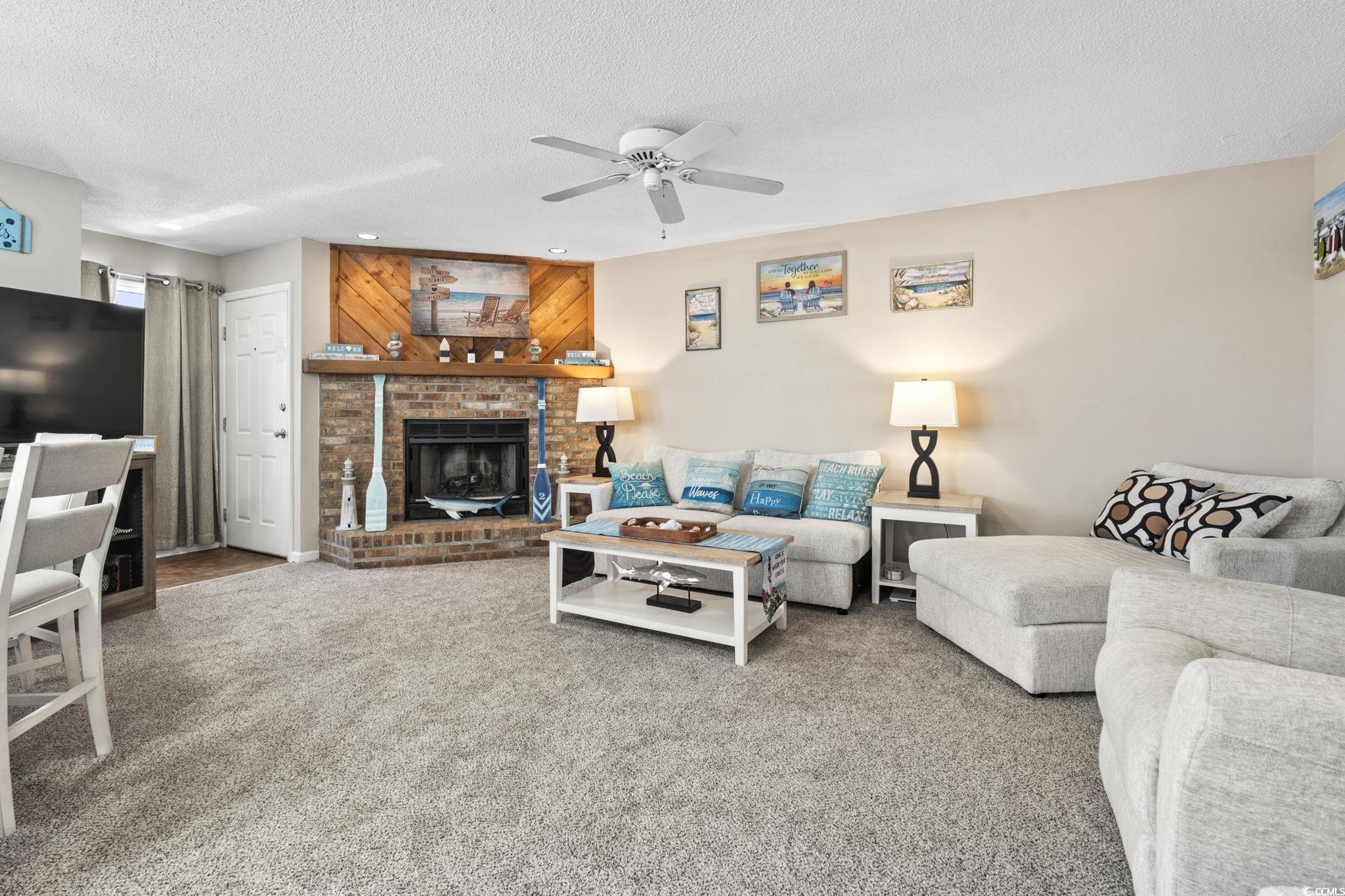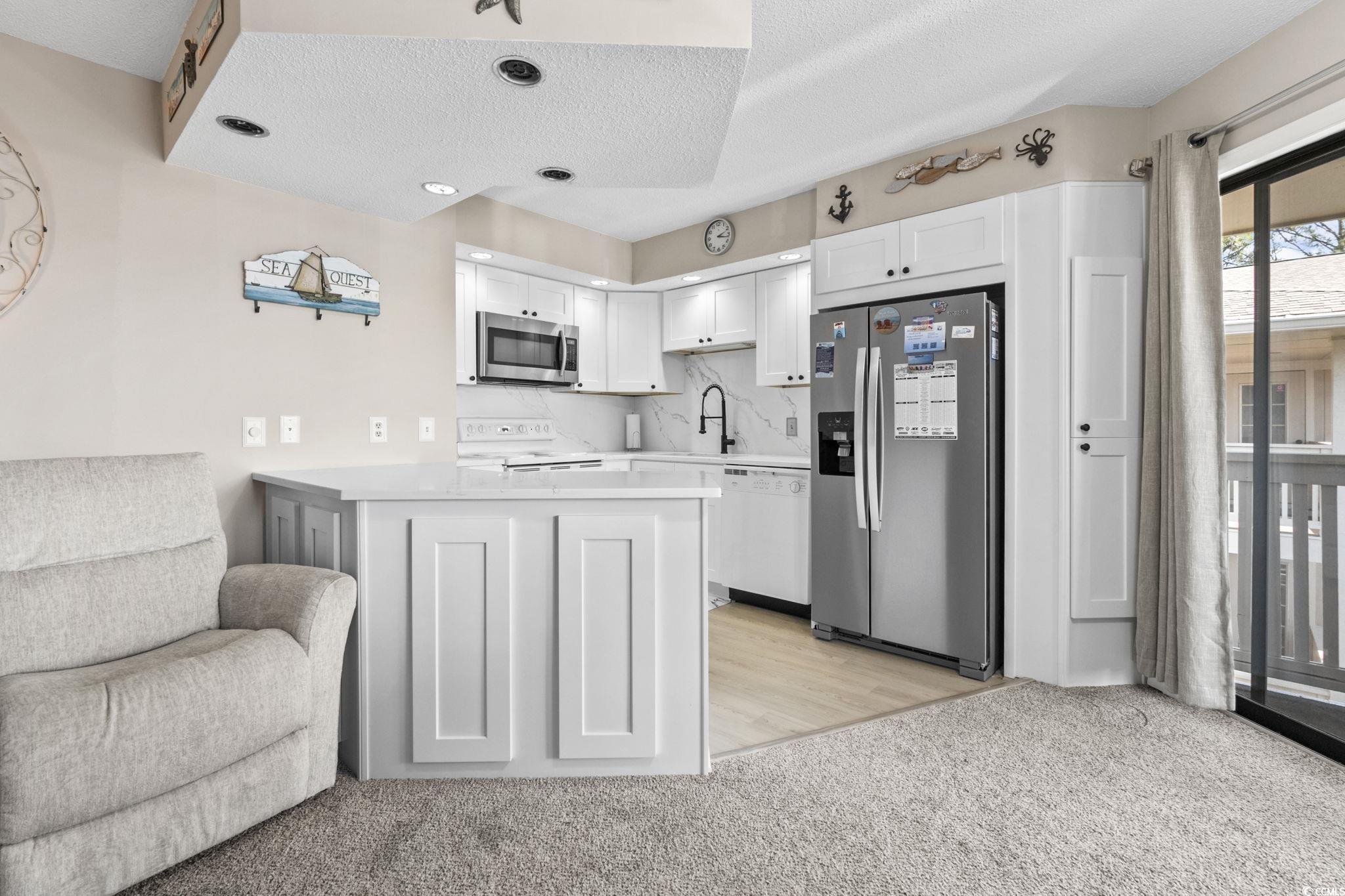 Welcome to this beautifully updated end-unit 2-bedroom, 2-bath condo offering the perfect blend of coastal charm and modern comfort. Flooded with natural light, this spacious residence features two private balconies. Step inside to an inviting open living area anchored by a cozy brick fireplace, ideal for relaxing after a day at the beach or entertaining friends. The kitchen was completely remodeled just three months ago and shines with quartz countertops, a matching full backsplash, updated cabinetry and hardware, a new deep basin sink with matte-black pull-down faucet, garbage disposal, and a brand-new stainless-steel refrigerator. Both bathrooms have also been refreshed, including a double-sink vanity in one suite, and the home includes a convenient stackable washer and dryer. Major mechanical upgrades offer total peace of mind, including a new HVAC system 2024 and new water heater installed in 2025, along with a smart thermostat for remote climate control. Fresh carpet, modern fixtures, and coastal tones throughout create a bright and inviting beach-house feel. The condo also includes two exterior storage closets, perfect for golf clubs, beach gear, and personal items, plus a transferrable home warranty for added confidence. Located just minutes from the Intracoastal Waterway, top golf courses, shopping, restaurants, medical facilities, and — most importantly — just 6 minutes to Cherry Grove Beach! This community offers resort-style living with a sparkling pool, hot tub, and sunny loungers right outside your door. Whether you’re searching for a primary residence, vacation escape, or investment getaway, this move-in-ready home checks every box for comfort, convenience, and coastal living.