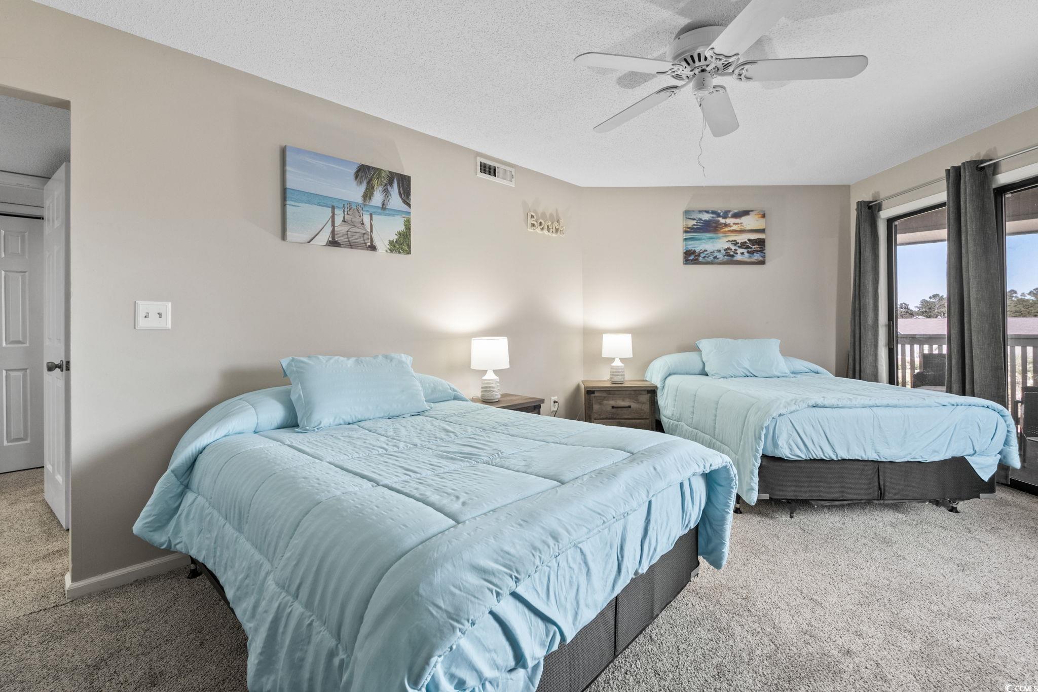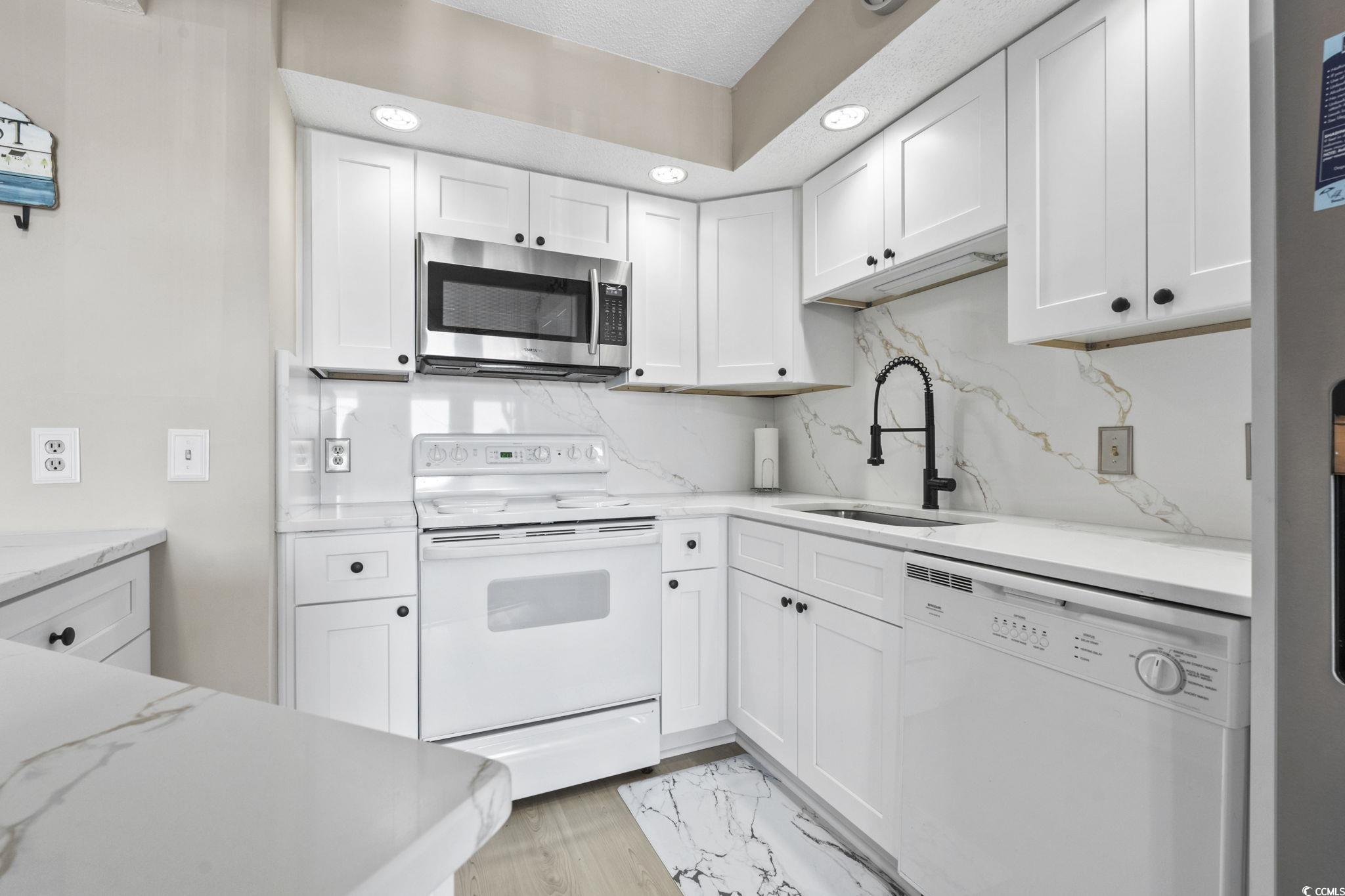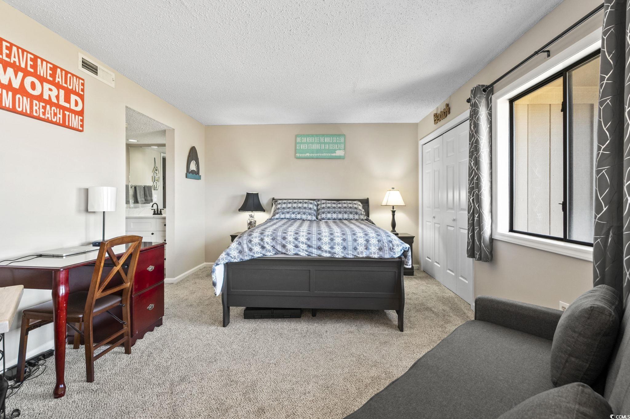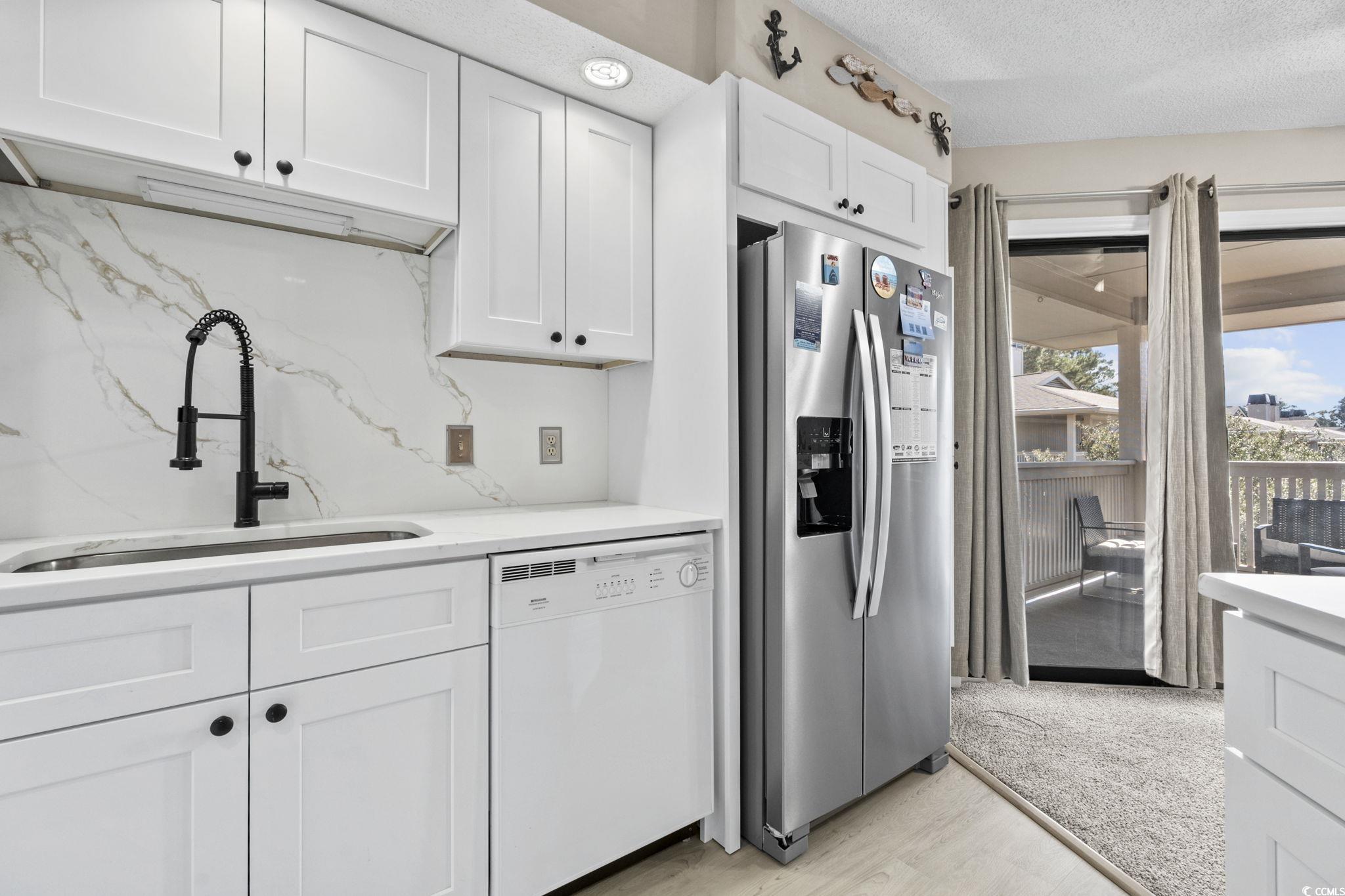 Welcome to this beautifully updated end-unit 2-bedroom, 2-bath condo offering the perfect blend of coastal charm and modern comfort. Flooded with natural light, this spacious residence features two private balconies. Step inside to an inviting open living area anchored by a cozy brick fireplace, ideal for relaxing after a day at the beach or entertaining friends. The kitchen was completely remodeled just three months ago and shines with quartz countertops, a matching full backsplash, updated cabinetry and hardware, a new deep basin sink with matte-black pull-down faucet, garbage disposal, and a brand-new stainless-steel refrigerator. Both bathrooms have also been refreshed, including a double-sink vanity in one suite, and the home includes a convenient stackable washer and dryer. Major mechanical upgrades offer total peace of mind, including a new HVAC system 2024 and new water heater installed in 2025, along with a smart thermostat for remote climate control. Fresh carpet, modern fixtures, and coastal tones throughout create a bright and inviting beach-house feel. The condo also includes two exterior storage closets, perfect for golf clubs, beach gear, and personal items, plus a transferrable home warranty for added confidence. Located just minutes from the Intracoastal Waterway, top golf courses, shopping, restaurants, medical facilities, and — most importantly — just 6 minutes to Cherry Grove Beach! This community offers resort-style living with a sparkling pool, hot tub, and sunny loungers right outside your door. Whether you’re searching for a primary residence, vacation escape, or investment getaway, this move-in-ready home checks every box for comfort, convenience, and coastal living.