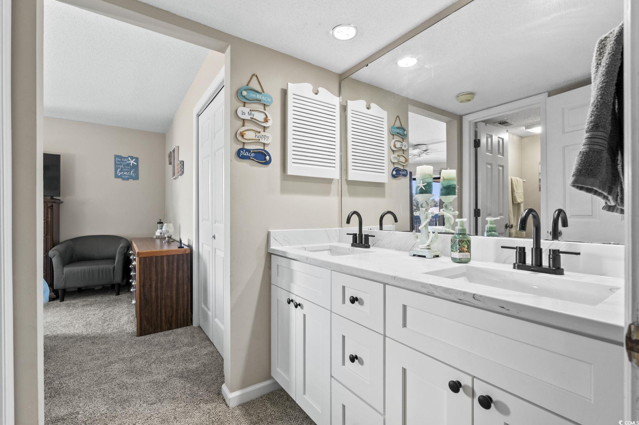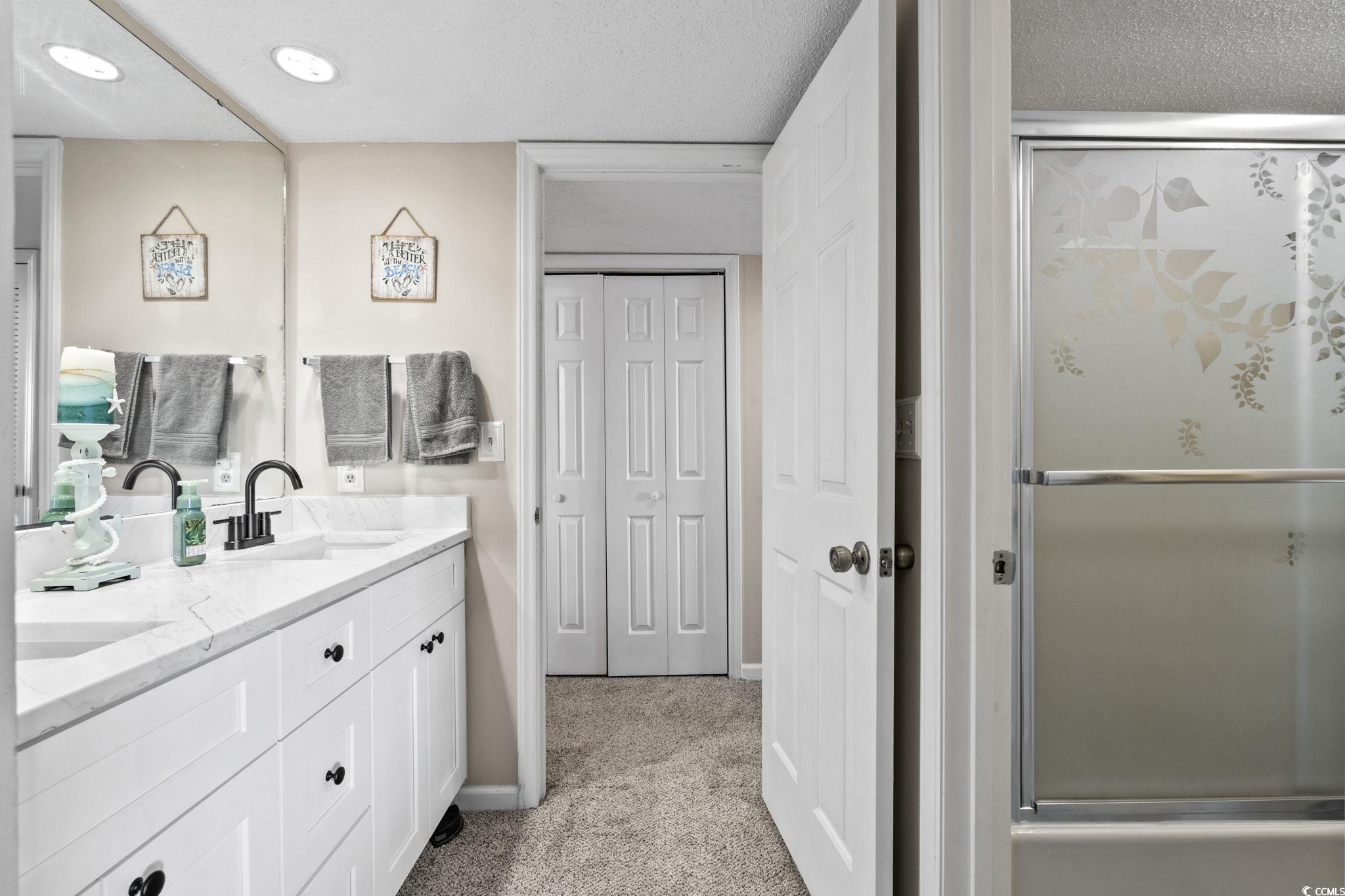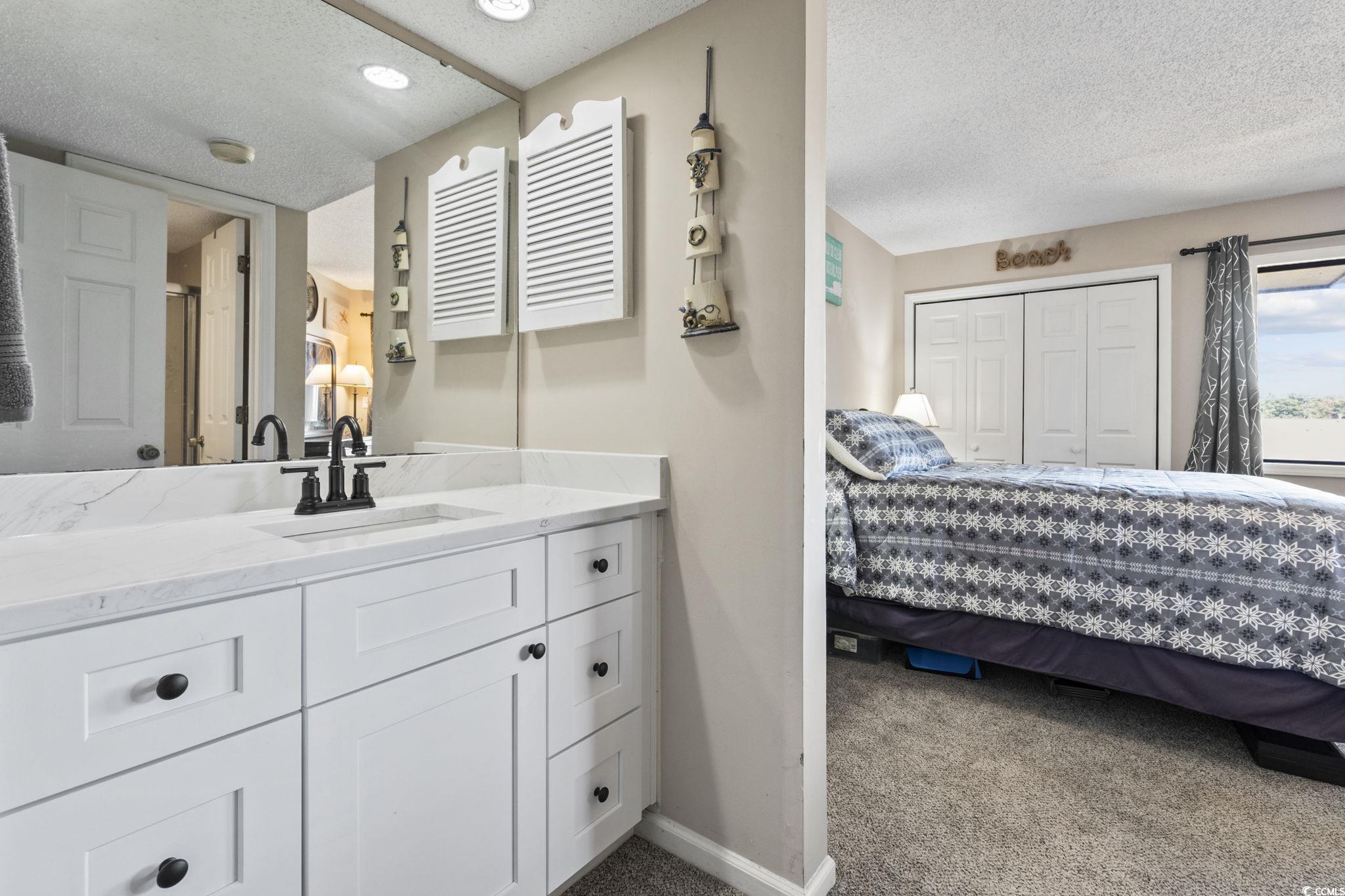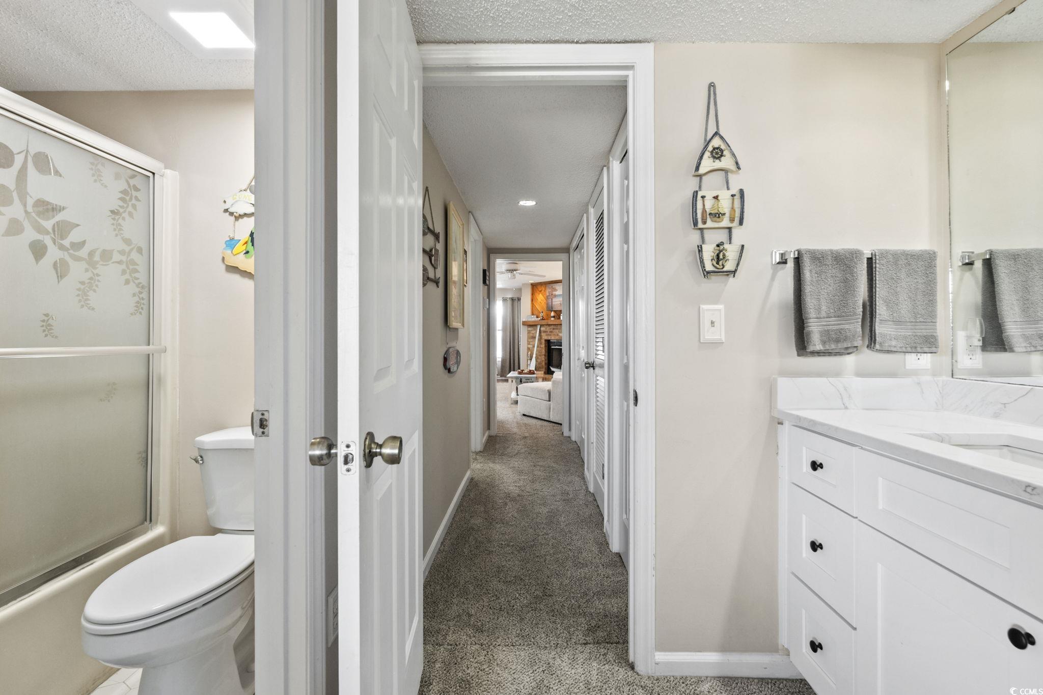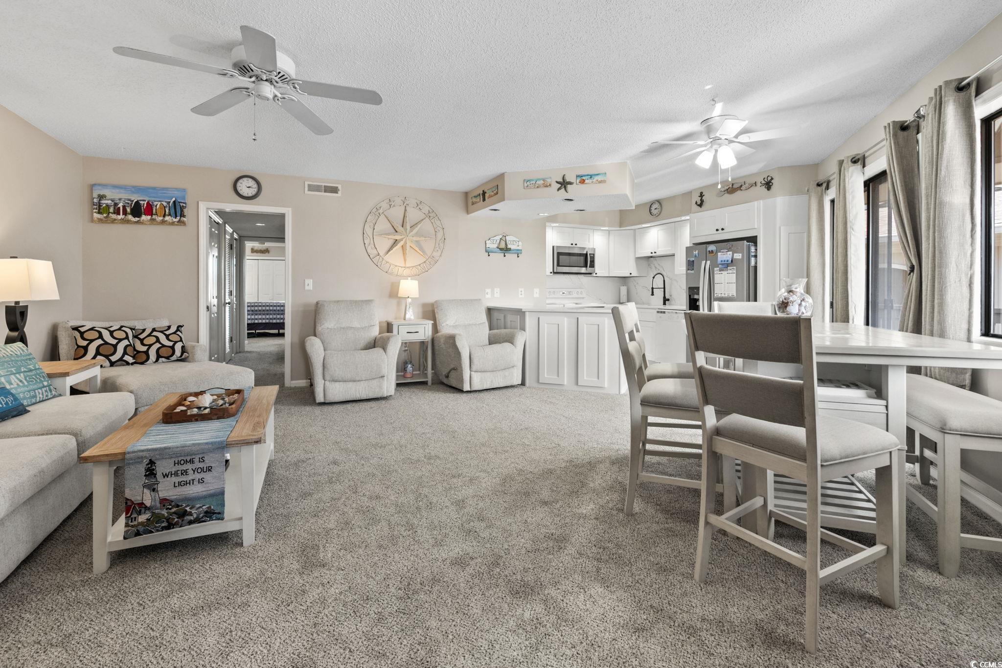 Welcome to this beautifully updated end-unit 2-bedroom, 2-bath condo offering the perfect blend of coastal charm and modern comfort. Flooded with natural light, this spacious residence features two private balconies. Step inside to an inviting open living area anchored by a cozy brick fireplace, ideal for relaxing after a day at the beach or entertaining friends. The kitchen was completely remodeled just three months ago and shines with quartz countertops, a matching full backsplash, updated cabinetry and hardware, a new deep basin sink with matte-black pull-down faucet, garbage disposal, and a brand-new stainless-steel refrigerator. Both bathrooms have also been refreshed, including a double-sink vanity in one suite, and the home includes a convenient stackable washer and dryer. Major mechanical upgrades offer total peace of mind, including a new HVAC system 2024 and new water heater installed in 2025, along with a smart thermostat for remote climate control. Fresh carpet, modern fixtures, and coastal tones throughout create a bright and inviting beach-house feel. The condo also includes two exterior storage closets, perfect for golf clubs, beach gear, and personal items, plus a transferrable home warranty for added confidence. Located just minutes from the Intracoastal Waterway, top golf courses, shopping, restaurants, medical facilities, and — most importantly — just 6 minutes to Cherry Grove Beach! This community offers resort-style living with a sparkling pool, hot tub, and sunny loungers right outside your door. Whether you’re searching for a primary residence, vacation escape, or investment getaway, this move-in-ready home checks every box for comfort, convenience, and coastal living.