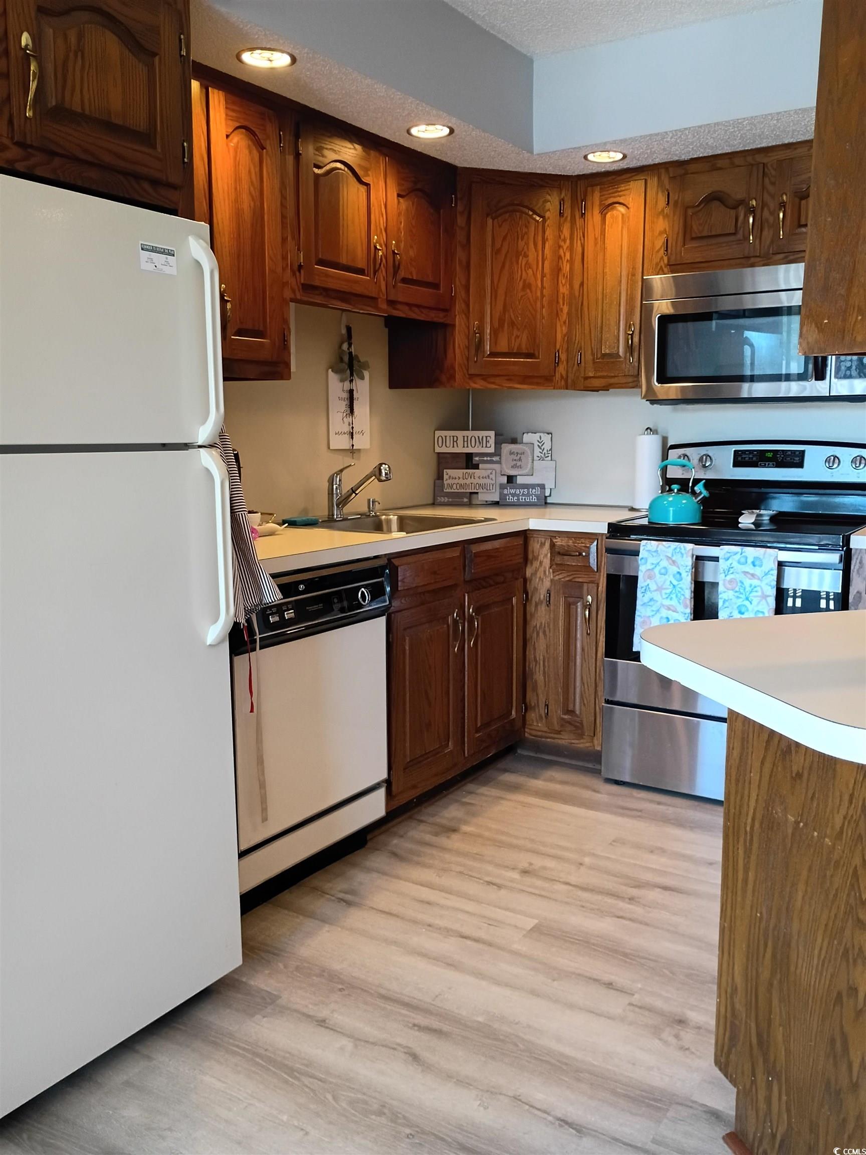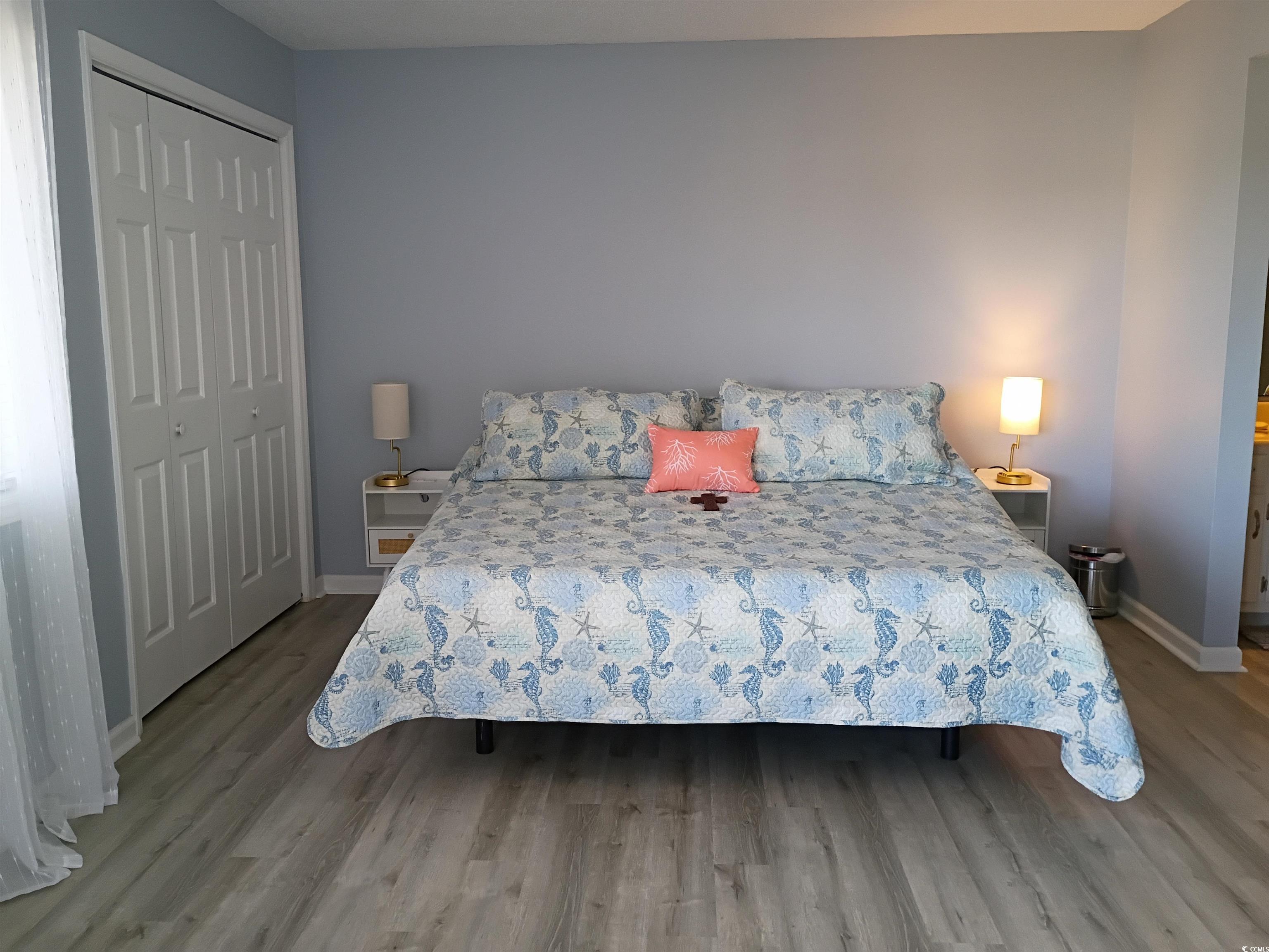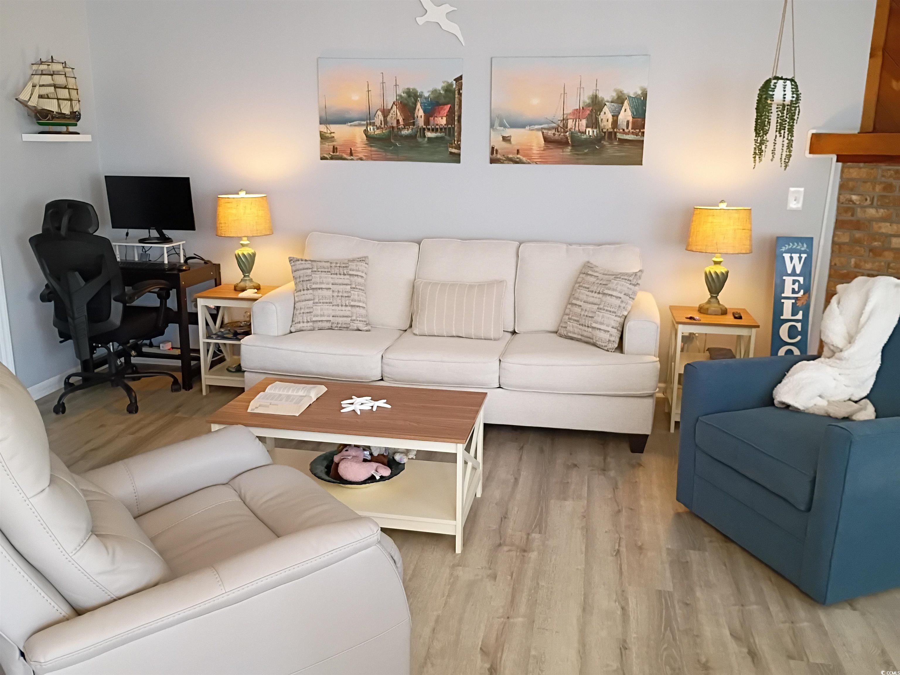 Welcome to this spacious 2 Bed 2 bath with modern updates and cozy fireplace. This is a third floor end unit with 2 porches one for sunrise and one for sunsets. This Condo has been recently painted and has new LVP floors throughout. The primary suite includes a full bath, organized closet system and is steps away from rear balcony with beautiful pond view. Condo is ideally located in the heart of Little River, half a mile from the intracoastal waterway, a few miles to Vereen Gardens with its beautiful marsh views and hiking paths and Calabash North Carolina. After a day a the beach, you can choose from many fine local restaurants or enjoy a cozy night by your fireplace. Smart home features include a SmartThings monitoring system, electronic keypads, and a remotely controlled thermostat for convenience and peace of mind. Unit is move in ready and waiting for you ! 2 attached storage units. #1 is 4 x 3. 1/2 #2 is 6 x 2 .1/2