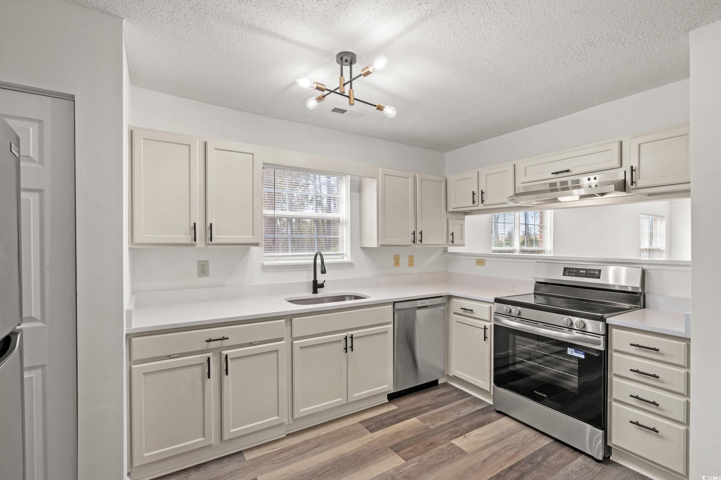 Step into comfort and convenience with this freshly updated first-floor, end unit condo, offering the perfect blend of modern style and coastal living. Featuring 2 bedrooms and 2 full bathrooms, this home has been thoughtfully refreshed with brand-new stainless steel appliances, new flooring throughout, fresh interior paint, and updated light fixtures that brighten every room. Enjoy easy, ground-level access and a layout designed for both relaxation and functionality. The open living area flows seamlessly to the kitchen, making it ideal for entertaining or unwinding after a day in the sun. Located just minutes from the beach, as well as top-rated medical facilities, shopping, golfing, and incredible fishing spots, this condo puts the best of coastal living right at your doorstep. HVAC and water heater replaced in April 2022. Whether you're looking for a full-time residence, vacation getaway, or investment opportunity, this move-in-ready home checks all the boxes.
