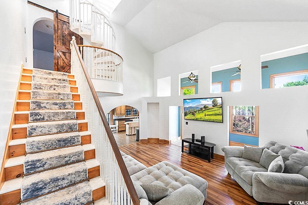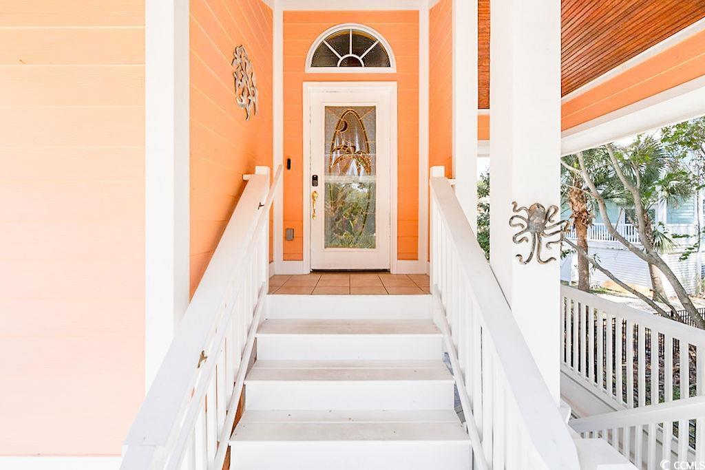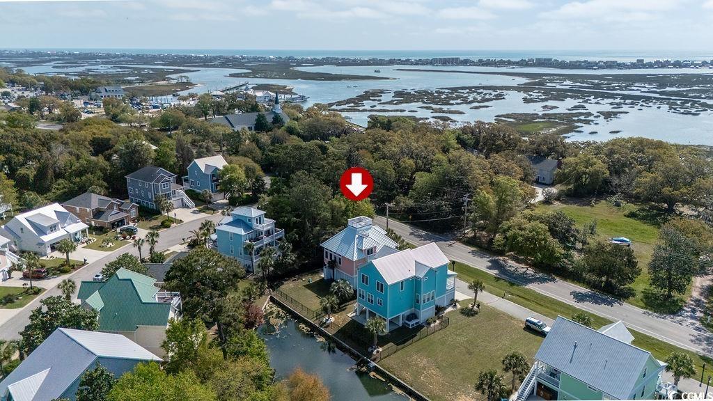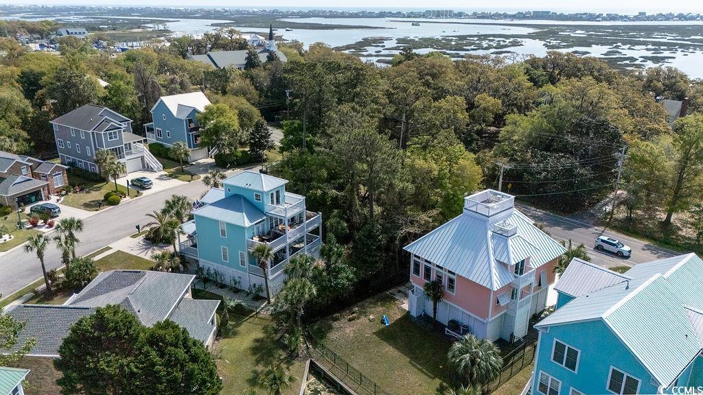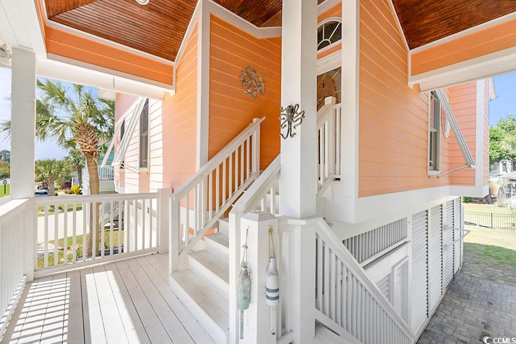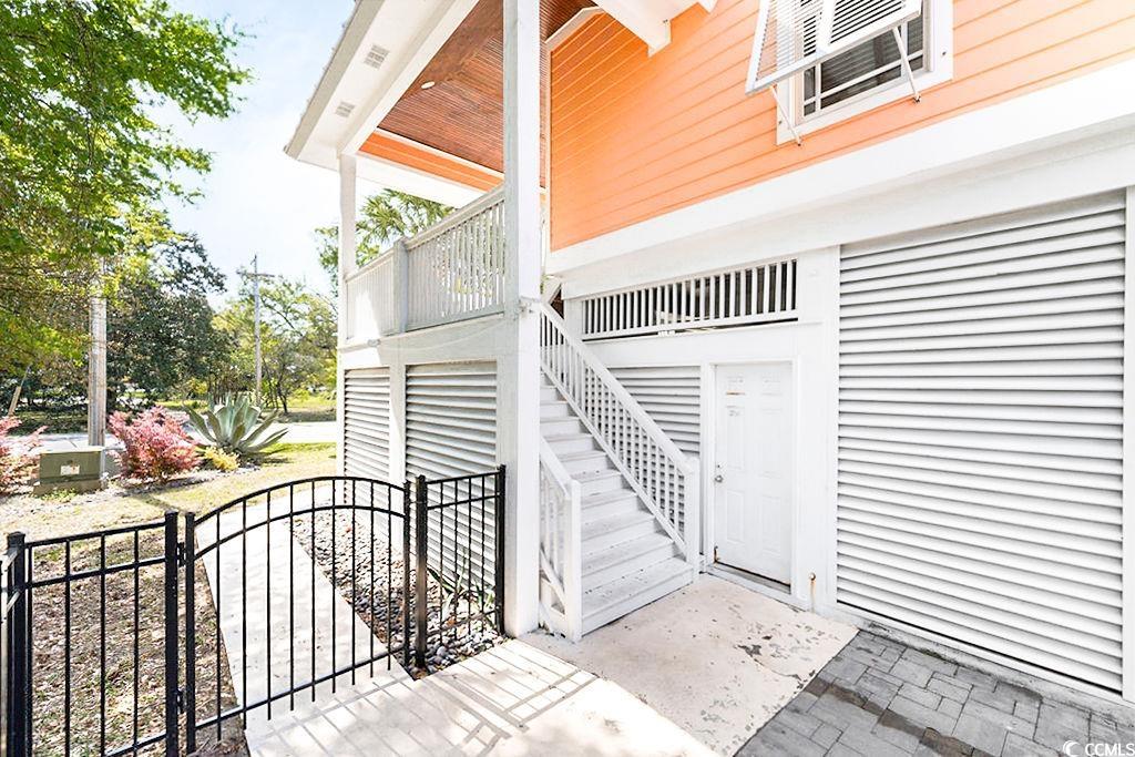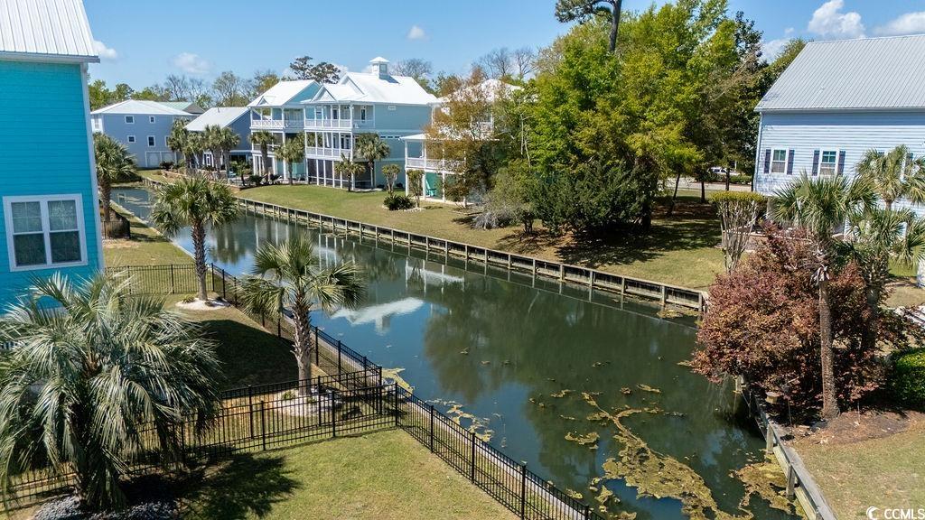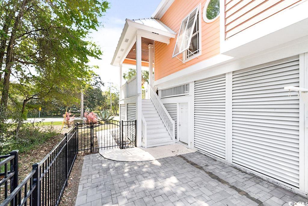 Experience coastal living in this beautiful, raised home, perfectly located within a short walk to the Marsh Walk and public boat landing into Murrells Inlet. This vacation home features 3 bedrooms and 2 bathrooms, show casing an open floor plan with vaulted ceilings that invite an abundance of natural light and character. The primary suite, situated on the second floor offers a private retreat, while a spiral staircase leads you to the roof top balcony, providing breathtaking views of Murrells Inlet and star gazing at night. On the ground floor, you will find a 3 garage doors and additional storage rooms for your golf cart and wave runner. Enjoy the fenced-in back yard with scenic water views adding to the charm of this coastal property. Nestled in the desirable Creekside Cottage neighborhood, this home includes access to the community pool and is just a short walk or golf cart ride to the vibrant Marsh Walk, where you'll have easy access to a variety of dining, and entertainment options in the heart of Murrells Inlet. Additionally, the boat landing to Murrells Inlet and the Atlantic Ocean is within easy reach. Whether you envision lazy afternoons by the water, exploring the vibrant local scene or fishing along the creeks, this property offers a perfect back drop for your dream coastal lifestyle.