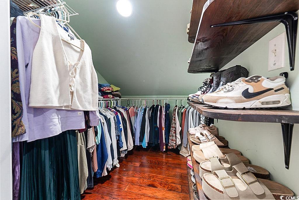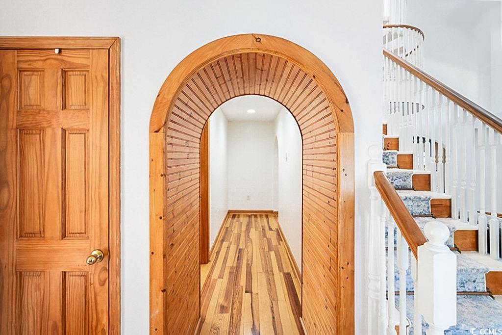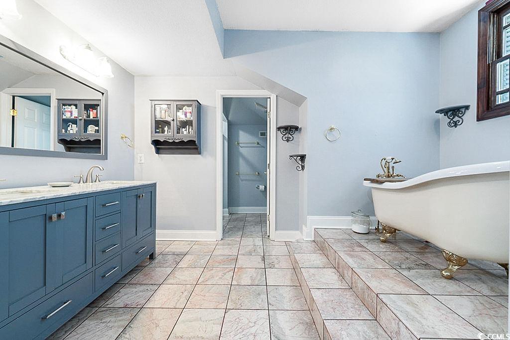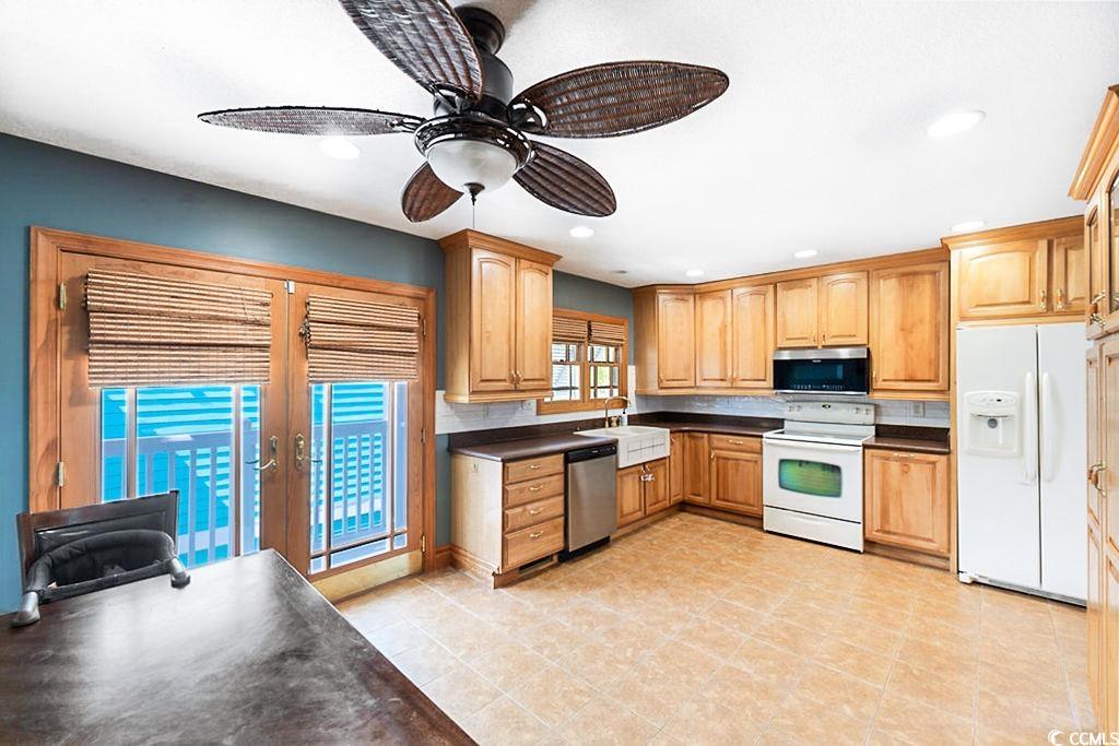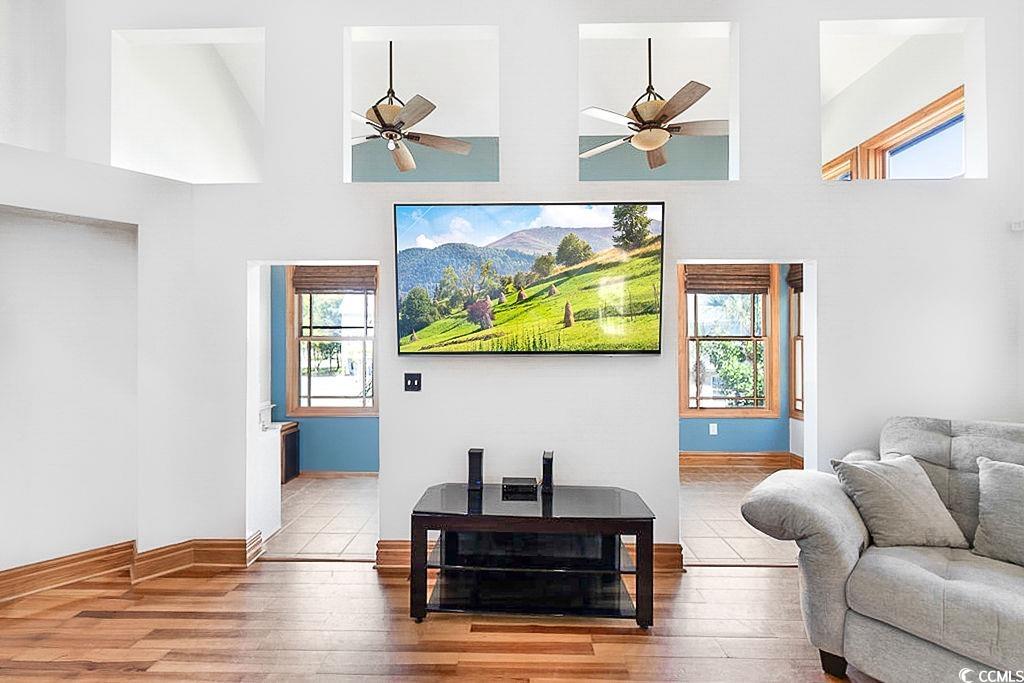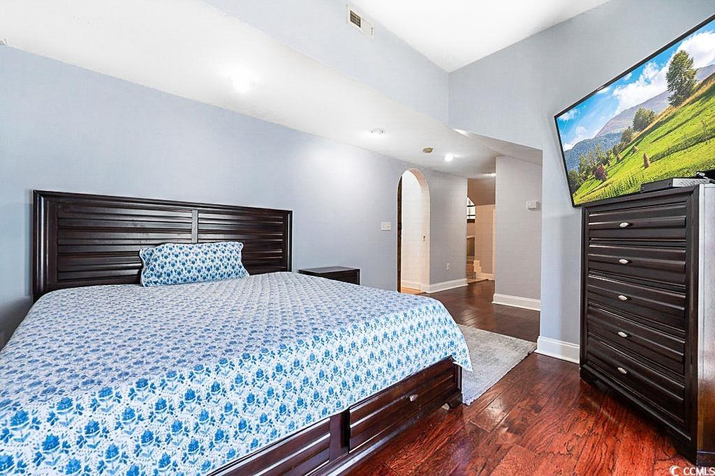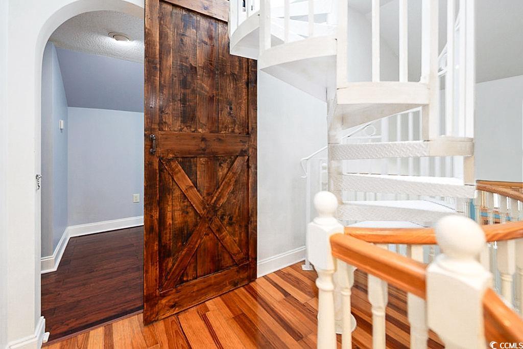 Experience coastal living in this beautiful, raised home, perfectly located within a short walk to the Marsh Walk and public boat landing into Murrells Inlet. This vacation home features 3 bedrooms and 2 bathrooms, show casing an open floor plan with vaulted ceilings that invite an abundance of natural light and character. The primary suite, situated on the second floor offers a private retreat, while a spiral staircase leads you to the roof top balcony, providing breathtaking views of Murrells Inlet and star gazing at night. On the ground floor, you will find a 3 garage doors and additional storage rooms for your golf cart and wave runner. Enjoy the fenced-in back yard with scenic water views adding to the charm of this coastal property. Nestled in the desirable Creekside Cottage neighborhood, this home includes access to the community pool and is just a short walk or golf cart ride to the vibrant Marsh Walk, where you'll have easy access to a variety of dining, and entertainment options in the heart of Murrells Inlet. Additionally, the boat landing to Murrells Inlet and the Atlantic Ocean is within easy reach. Whether you envision lazy afternoons by the water, exploring the vibrant local scene or fishing along the creeks, this property offers a perfect back drop for your dream coastal lifestyle.