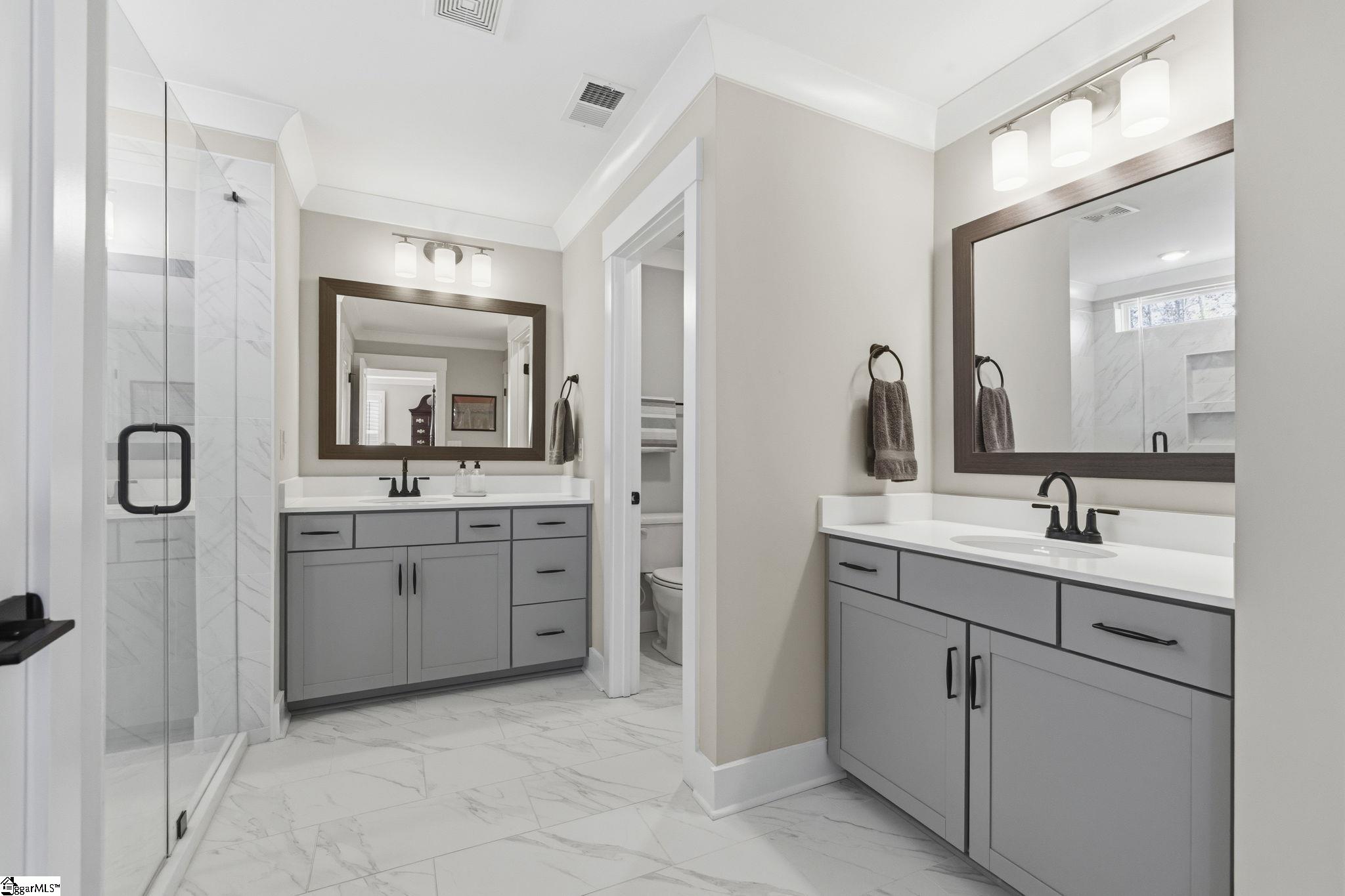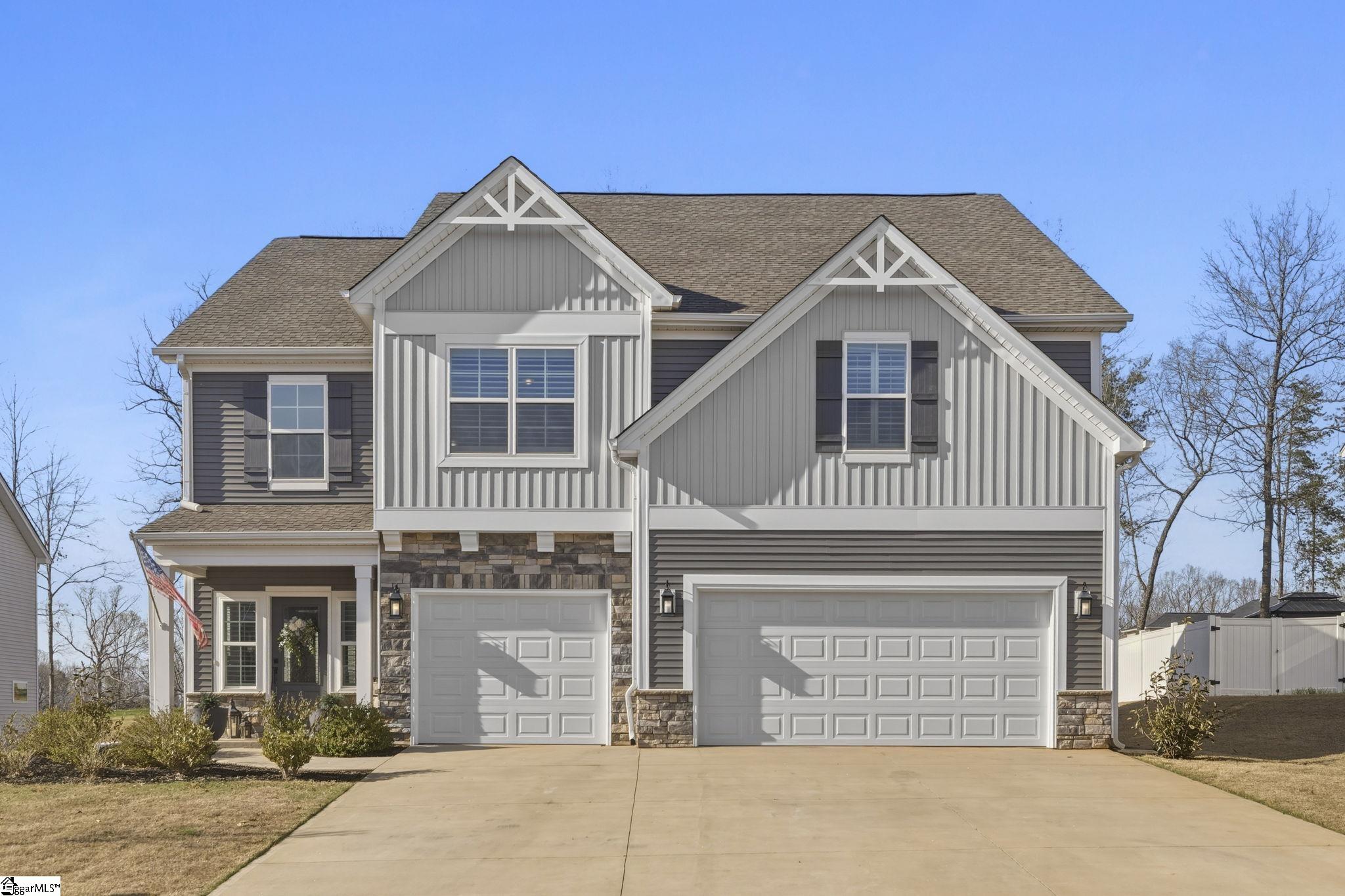 Beautifully maintained and just like new, this immaculate 5-bedroom, 3.5-bath home on half an acre is located on a cul-de-sac in Phase II of Providence Farm and offers convenient access to I-26 and I-85, making travel to Asheville, Hendersonville, Greenville, and downtown Spartanburg easy. Step inside to a grand two-story foyer, an open floor plan, 9 foot ceilings downstairs, sun-filled rooms, and thoughtful upgrades throughout. The main level features a formal dining room with coffered ceilings, a spacious family room with a gas log fireplace, and a gourmet kitchen designed for both everyday living and entertaining. The kitchen includes bar seating, a prep island, butlers pantry, GE Gourmet Profile appliances with built-in convection microwave and oven, quartz countertops, upgraded soft-close cabinetry with roll-out drawers, under-cabinet lighting, exterior-vented cooktop, farmhouse sink, gas range, and a beautiful backsplash. Luxury vinyl plank flooring runs throughout the home with no carpet, complemented by plantation shutters on every window and upgraded crown molding and trim. A private home office on the main level could also serve as a 5th bedroom with walk in closet and is conveniently located near a half bath and a mud nook with bench and cubbies for added storage. Upstairs, the spacious primary suite serves as a private retreat featuring tray ceilings, sound insulation for added privacy, a luxurious bathroom with frameless walk-in shower, double vanity with quartz countertops, comfort-height commodes and vanities, and an oversized walk-in closet. The upper level also includes a large loft area, three additional generously sized bedrooms, two full bathrooms, and a dedicated laundry room. Additional highlights include a three-car attached garage, a tankless gas water heater, gas system updated to support portable generator, and ample storage space throughout home, garage and in attic. Step outside to the expansive backyard and enjoy your outdoor retreat featuring a screened-in porch, patio, and cozy fire pit, perfect for relaxing or entertaining. Conveniently located near top-rated schools, shopping, major highways, Lake Bowen and the Blue Ridge Mountains, this exceptional home offers modern elegance, thoughtful design, and everyday functionality as well as outdoor living in one of the Upstate's most sought-after communities. Schedule your private tour today!