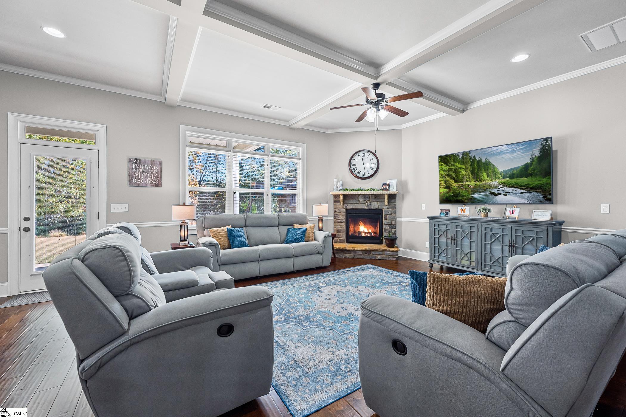 Meticulously built ranch-style home with a loft, this 4 bedroom, 3.5 bath residence is perfectly positioned near Simpsonville and Five Forks in a quiet cul-de-sac. This stunning property blends quality craftsmanship with thoughtful design, offering a perfect balance of elegance and functionality. The main level showcases soaring 10-foot ceilings and an open-concept layout with a spacious living area ideal for entertaining, along with a beautifully appointed kitchen featuring high-end finishes. The primary suite is conveniently located on the main floor, creating a private retreat complete with a luxurious en-suite bath. Upstairs, the versatile loft area offers additional living space, perfect for guests, a home office, or recreation. The home also boasts a rare three-car garage, providing ample space for vehicles, storage, or hobbies. The garage is generator-ready with a 220V outlet already installed, offering added peace of mind and preparedness. Step outside to your private backyard that backs up to mature woods, offering peace and privacy. The large lot provides generous room for outdoor living and entertaining. Enjoy the tranquil cul-de-sac setting while being just minutes from Five Forks and downtown Simpsonville—offering easy access to shopping, dining, and award-winning schools. Schedule your private tour today to experience this exceptional home for yourself!