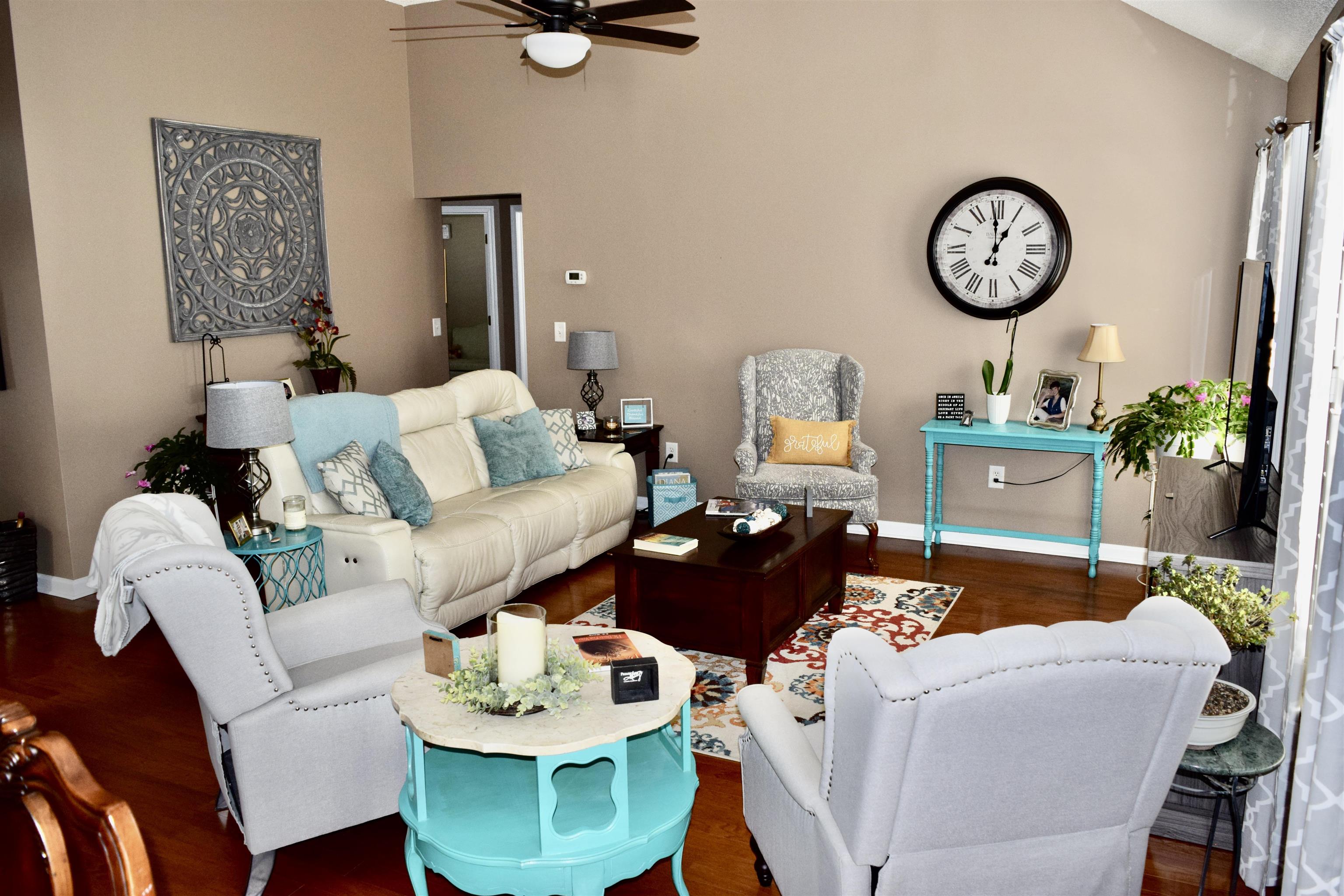 Welcome to this immaculate, meticulously maintained 3-bedroom, 2-bath home located in the highly sought-after Peninsula at Palmetto Point community. Beautifully landscaped and full of thoughtful upgrades, this home offers comfort, elegance, and exceptional outdoor living. Step inside to find stunning hardwood floors and classic plantation shutters that add warmth and timeless charm throughout. The spacious kitchen is a chef’s dream, featuring stainless steel appliances, a double oven, and beautiful solid surface countertops perfect for both everyday living and entertaining. The living room and front bedroom boast vaulted ceilings, creating an open and airy feel, while the owner’s suite showcases an elegant tray ceiling, a large walk-in closet, and a luxurious en-suite bath complete with double sinks, a garden tub, and a separate shower. Outdoor living is just as impressive. Relax and unwind in the large screened-in porch with an attached patio, all overlooking a peaceful tree line and serene pond with a fountain your own private retreat. Additional highlights include an oversized garage with storage above, a convenient side-door entrance, and an extended driveway offering plenty of parking space. This move-in-ready home truly has it all style, space, and a beautiful setting. Don’t miss the opportunity to make it yours!