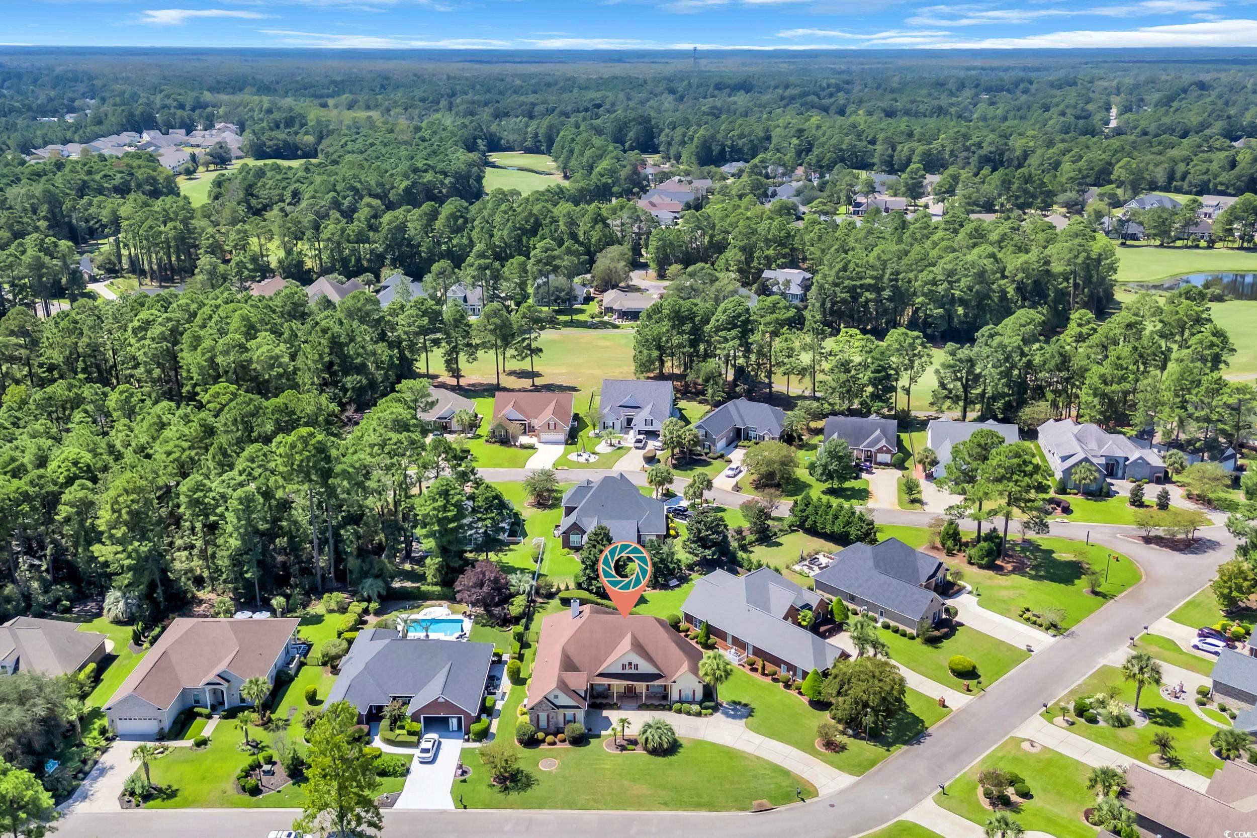 Lovely New England Ranch with 4 bedrooms, 3 1/2 baths plus an office, tucked inside the prestigious Parkland at Legends Resort, just 6 miles to the beach! This custom home blends timeless charm with thoughtful upgrades at every turn. Step into a dramatic foyer with 20-foot ceilings, arched doorways, crown molding and diagonally laid 18x18 tile that sets the tone for the open living spaces. The living room shines with a wood-burning fireplace, coffered ceiling and built-ins. The chef’s kitchen boasts custom soft-close cabinetry, tile backsplash, Corian countertops with ogee edge, a JennAir downdraft cooktop and for added health benefits - an under-sink kitchen water filtration system. The adjacent dining area with double tray ceiling is filled with natural light and overlooks the back lawn. The formal dining room is exquisite with its tray ceiling, ornamental columns and arched doorways. The main level features an office/flex room plus three spacious bedrooms, including a serene owner’s suite with a generous walk-in closet and spa-like bath offering a jetted tub and tile shower with body jets and multiple shower heads. Also located on the main level is a large laundry room with cabinetry. Upstairs, the fourth bedroom doubles perfectly as a media room already wired for surround sound. This home is as practical as it is beautiful—whole-home Kohler generator (2019), new HVAC (2022) with Quantum Germicidal UVC Air Scrubber, central vacuum, attic fans, and a 50-year shingle roof (2018 with transferrable 25 year warranty). LVP and tile flooring flow throughout the main level, with carpet only in the upstairs suite. Enjoy the outdoors year-round on the screened porch with retractable shades and SunSetter awnings, or step onto the extended stamped concrete patio overlooking a fenced yard with privacy shrubs, lush landscaping and irrigation from a dedicated well. Located in the sought-after Legends community, you’ll enjoy resort-style amenities, golf, and a lifestyle that balances comfort and sophistication.