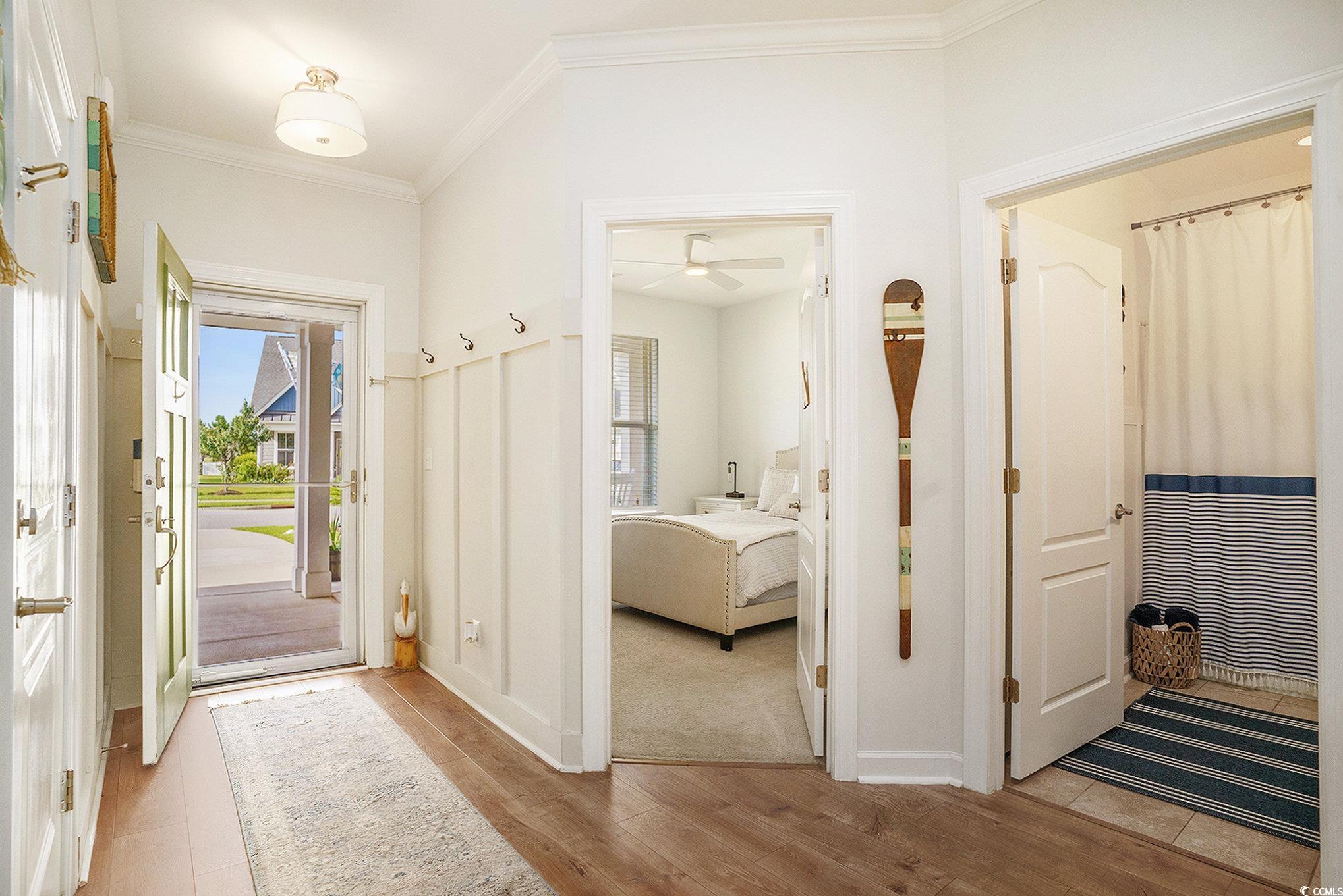 Come Home to "The Good Life": Your Coastal Oasis Awaits in Bridgewater, Little River, SC Imagine a life where every day feels like a vacation, where luxury meets convenience, and community thrives. Welcome to Bridgewater, a premier Chesapeake Homes community nestled in the charming town of Little River, South Carolina. Here, you don't just find a house; you discover "The Good Life" you've been dreaming of. Step Inside Your Dream Townhome This beautifully designed townhome offers nearly 2,400 square feet of stylish and functional living space. As you approach, a welcoming front porch, adorned with a custom stone feature, invites you in. This popular "Surfside" floor plan is meticulously crafted for effortless living, boasting a first-floor primary suite, a convenient guest bedroom, and a dedicated laundry room – ensuring comfort and accessibility are always at hand. The heart of the home is an expansive, open-concept living, dining, and kitchen area, perfect for both intimate family moments and lively entertaining. Vaulted ceilings create an airy atmosphere, complemented by elegant wood flooring throughout. The chef's kitchen is a true showstopper, featuring a large center island with chic pendant lighting, gleaming granite countertops, top-of-the-line stainless steel appliances, a tasteful tile backsplash, and a spacious corner pantry – everything a culinary enthusiast could desire. Ascend to the second floor, where you'll find a generous third bedroom, a full bathroom, and a truly enormous bonus room – offering endless possibilities for a home office, media room, gym, or play area. The first-floor primary suite is a private sanctuary, featuring a graceful tray ceiling and ceiling fan, an en-suite bathroom with double sinks, a modern walk-in shower, and a convenient linen closet. Step outside from the living area to discover your private back porch, overlooking a fully fenced, large yard – an ideal space for children to play freely and pets to roam safely. Thoughtful details enhance the home's appeal, including a large storage closet tucked neatly under the stairs, ceiling fans in all bedrooms for ultimate comfort, and durable tile flooring in all bathrooms and the laundry room. Outside, low-maintenance landscaping with charming stone accents ensures your beautiful home always looks its best. An Amenity-Rich Lifestyle Beyond Compare While the townhome itself is a testament to exquisite design, the true magic of Bridgewater lies in its incredible community amenities, elevating your living experience to an entirely new level of luxury. Step outdoors and be captivated by the resort-style pool, complete with ample lounge chairs and private cabanas, inviting you to relax under the Carolina sun. Beyond the sparkling waters, Bridgewater offers some of the most amazing amenities in the area, including dedicated dog parks for your furry companions, competitive pickleball courts, and an outdoor cooking pavilion – perfect for al fresco dining and entertaining. The expansive clubhouse serves as the vibrant social hub, hosting weekly neighborhood gatherings such, as lively happy hours and engaging line dancing sessions – fostering a genuine sense of community. For your well-being, the clubhouse also features a state-of-the-art fitness center, making it easy to stay active without leaving home. Adding a unique touch of serenity and recreation, the community boasts a vast 26-acre lake, providing the perfect setting for kayaking, paddle boarding, and various other non-motorized water activities. Bridgewater's prime location in Little River offers the ultimate blend of resort-style living with unparalleled convenience. Enjoy quick access to Highway 31, making commutes a breeze. For your peace of mind, professional medical offices and a hospital are conveniently located just across the street. And when it comes to leisure, you're literally just a few (about 10) minutes away from Cherry Beach, voted one of the best beaches in the USA!