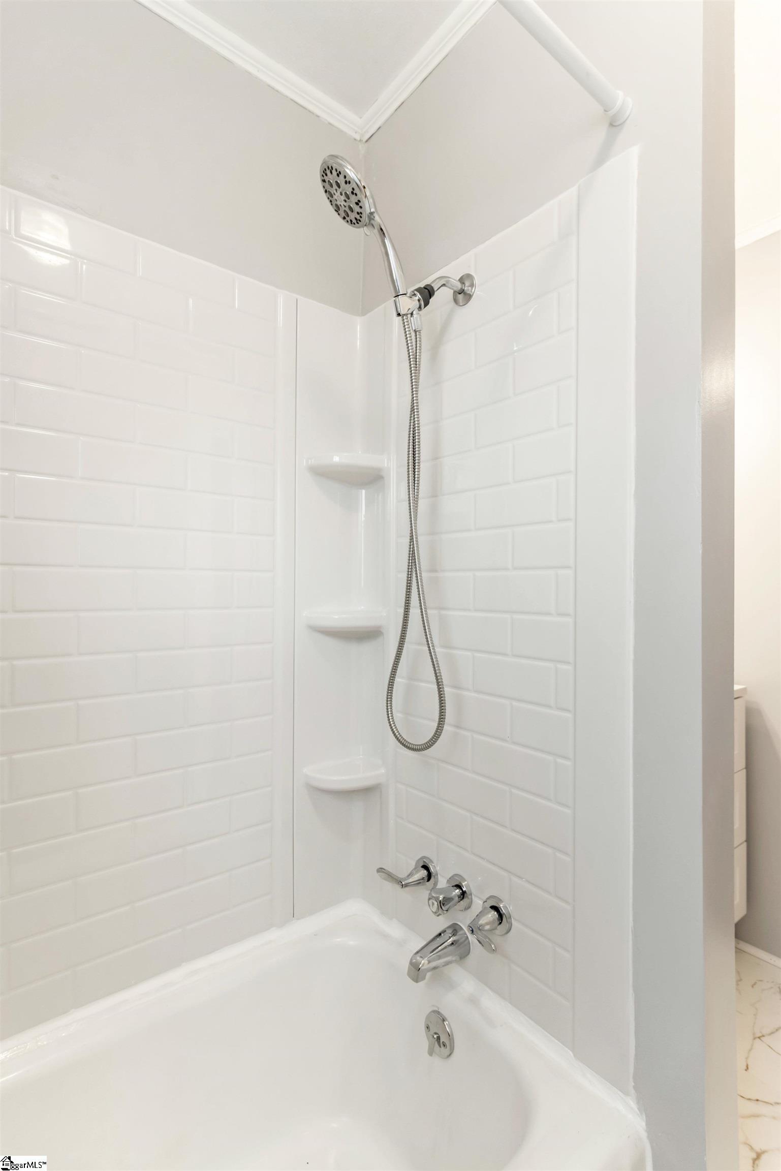 Beautifully maintained Southern brick ranch in an award-winning school district, just one block from Woodruff High School and nestled in a well-established neighborhood. Enjoy a classic rocking-chair front porch and timeless charm throughout. Inside, you’ll find original hardwood floors, a spacious living room with gas log fireplace and custom wood surround, two generous secondary bedrooms, and a primary suite with attached half bath. A bright, versatile flex room in the center of the home is perfect for formal dining, entertaining, or a second living area. The kitchen features abundant solid wood cabinetry and an eat-in dining space. Off the carport, a heated and cooled laundry room offers a sink and extra storage. Outside, a detached two-story, two-car garage provides workshop space and ample storage, with an upper level ideal for a hobby room or future expansion. The private backyard is a peaceful retreat with mature trees, a small creek, and a charming bridge to the rear of the lot. Recent upgrades include a new HVAC System, Main Bathroom remodeled and Hardwood floors refinised. Move-in ready, full of character, and conveniently located — schedule your showing today!