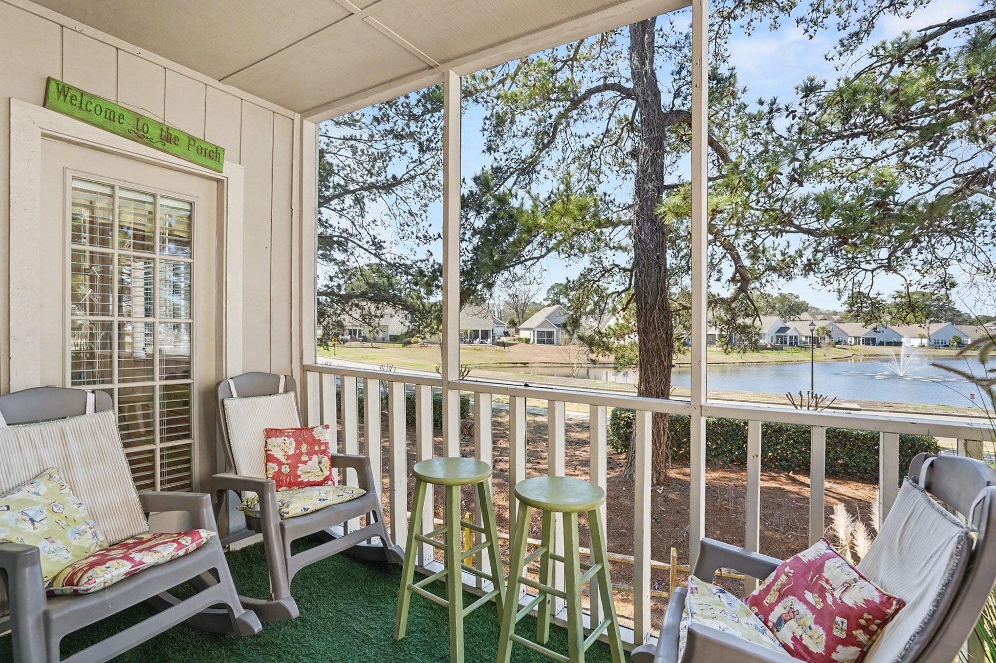 Turn-key and fully furnished 2-bedroom, 1-bath end-unit condo located in the heart of Little River. This well-maintained property has been used exclusively as a second home and has never been rented, offering a rare opportunity for buyers seeking a pristine coastal retreat. Whether you are looking for a primary residence, vacation getaway, or investment property, this condo offers flexibility to suit your needs. Enjoy relaxing views of the pond and fountain from this charming end unit, which also overlooks the community pool. The condo offers plenty of character and is move-in ready, while still allowing the next owner the opportunity to add their own personal touches. Conveniently located just off U.S. Highway 17 in Little River, you are approximately 10 minutes from the beach and only 6 minutes from the waterfront area of Little River, known for its shops, dining, and entertainment. Community amenities include a pool, hot tub, and tennis court, making it easy to enjoy the coastal lifestyle. All measurements and square footage are approximate and not guaranteed. Buyer is responsible for verification. Buyers should be aware that there may be surveillance devices present in the home