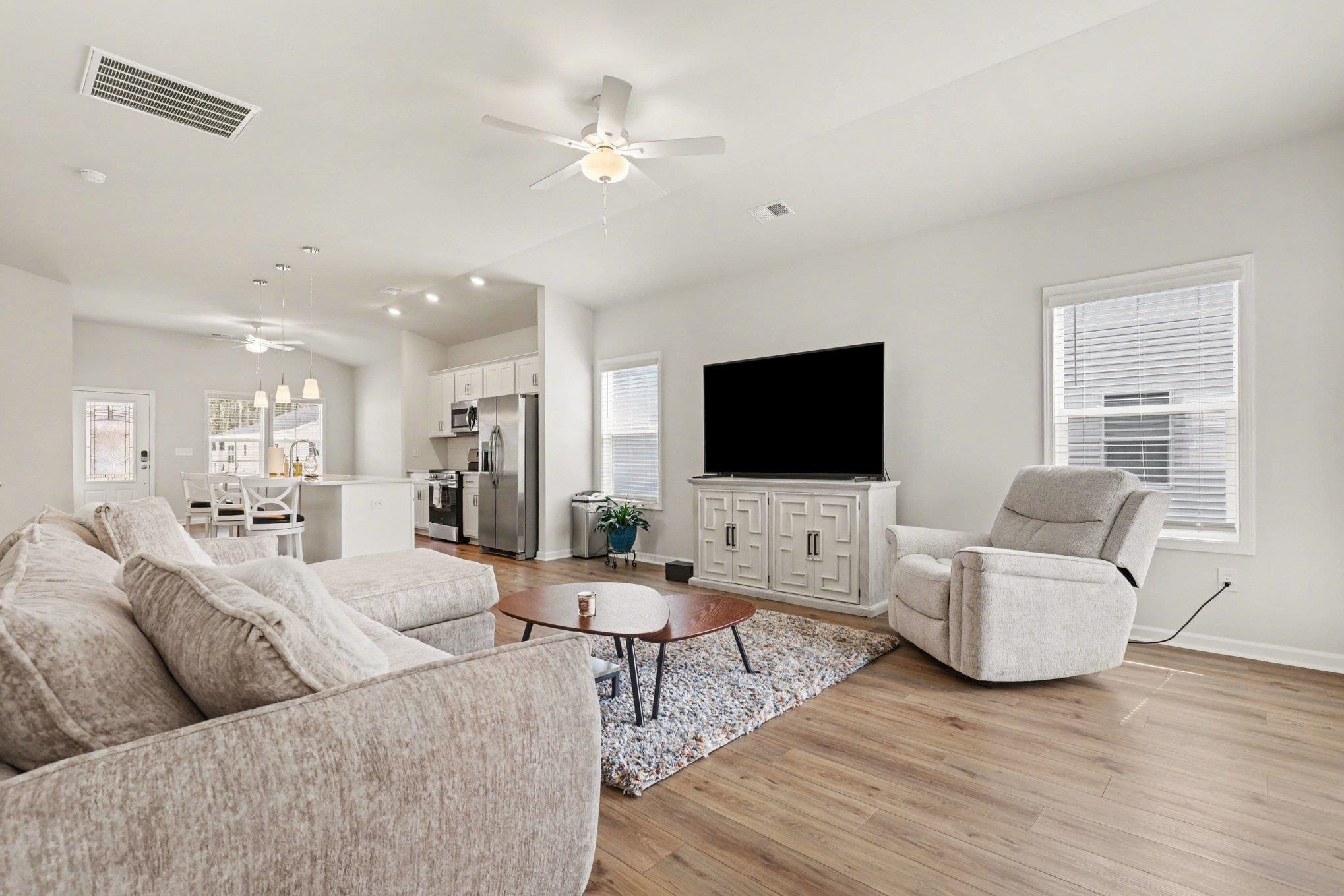 Welcome to your new home in the Lyden Village community of Myrtle Beach. This home is basically brand new, built in 2025 and having only been used a handful of times as a vacation home. A single level, 3 bedroom, 2 bath home welcomes you into a completely open concept main living area with vaulted ceilings that enhance the open space. With LVP flooring throughout there's no need to worry about carpet. The kitchen is fully equipped with an electric range, large quartz island, pendant lighting, can lights, and stainless appliances. The great room and primary bedroom both have beautiful pond views. Relax in your primary bedroom with a vaulted ceiling, ceiling fan, large walk-in closet, en-suite bath with a double quartz vanity, and walk-in shower. The adjacent two guest bedrooms have spacious closets and share a "Jack and Jill" full bathroom that separates the double sink quartz vanity from the toilet/shower room. The laundry room includes both the washer and dryer, and is conveniently located just off the two car garage. This quaint community is ideally located just off of 544 and is close to restaurants, shopping, CCU, Conway Medical Center, numerous golf courses, and of course the beautiful Myrtle Beach coastline. Don't miss your chance to experience everything this pristine home has to offer and schedule your private showing today!