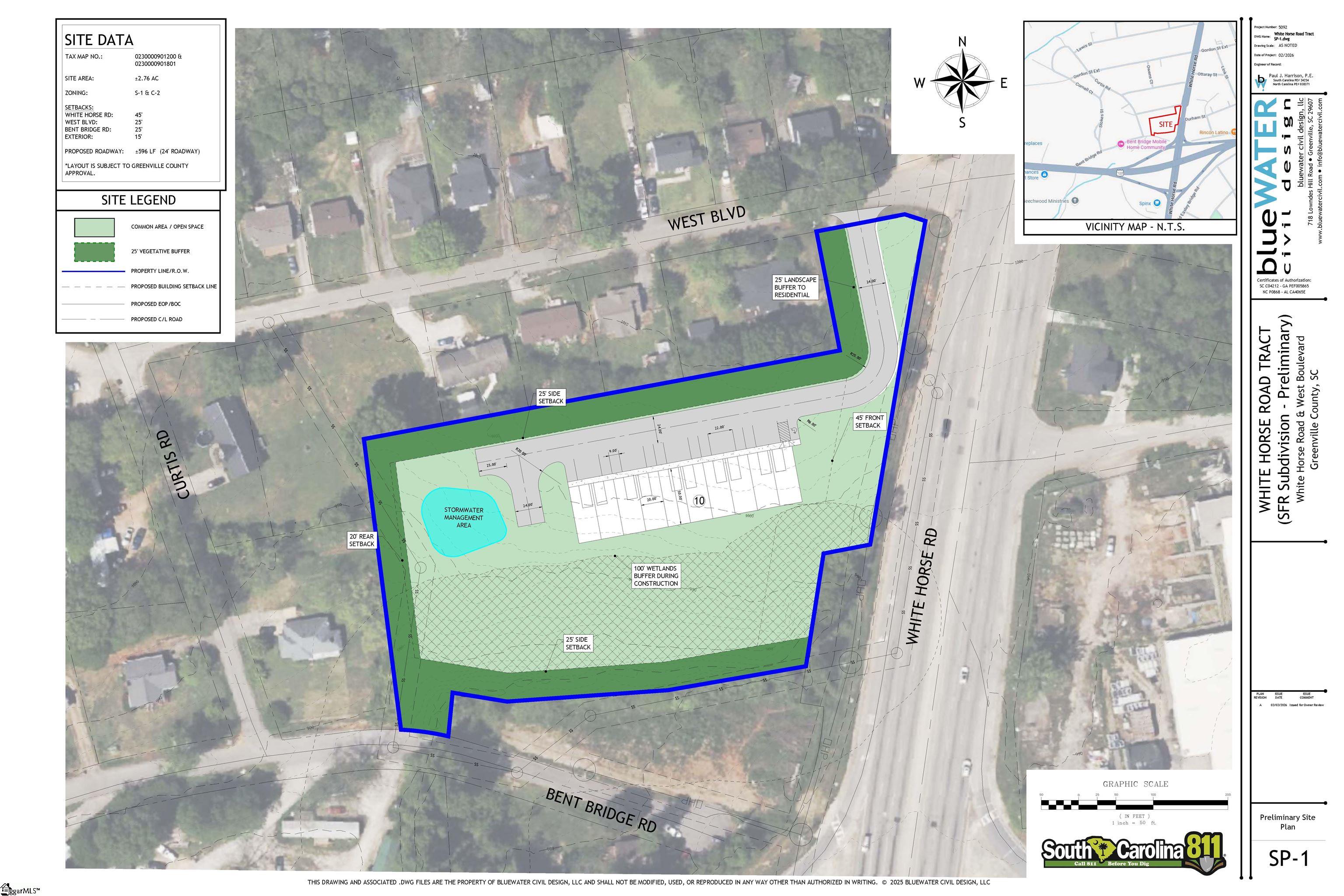 Prime Commercial Location – 2.69 Acres Available! Exceptional development opportunity at the high-visibility intersection of Highway 123 and Highway 25 (White Horse Road) in Greenville County. This site features two commercial parcels with flexible S-1 and C-2 zoning, offering a wide range of potential uses for service based business, retail, or commercial operations. With utilities available, mixed level and sloped topography, and convenient access via West Boulevard, the property is development-ready. Access available from West Boulevard and frontage on Bent Bridge Road. Desirable location—less than 5 miles to I-85 and Downtown Greenville, under 10 miles to Downtown Travelers Rest, and surrounded by the growing Easley and Powdersville markets—combined with strong 2024 traffic counts of 27,500 along Highway 123, makes this property the perfect opportunity for businesses seeking visibility, accessibility, and long-term growth potential. Includes TMS#0230000901200, 0230000901801.