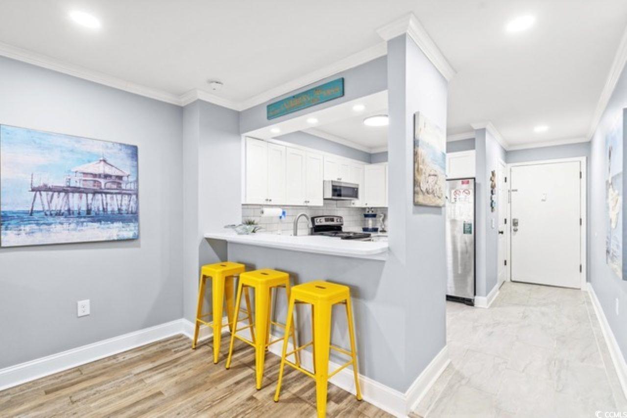 Price improvement! Experience coastal living at its finest in this stunning top-floor, direct oceanfront 2 bedroom, 2 bath condo located in the desirable Windy Hill section of North Myrtle Beach. Perfect as a primary residence, second home, or investment property, this fully remodeled in 2024, offers new cabinets, stainless steel appliances, quartz countertops, plumbing and lighting fixtures, updated wiring, fresh paint, and beautifully upgraded vinyl plank and tile flooring. Both bathrooms feature modern, remodeled showers, new plumbing fixtures, sinks, tile flooring and ceiling fans. The condo comes fully furnished with a washer and dryer included. Enjoy breathtaking, unobstructed ocean views from the primary bedroom and private balcony. You can step right into the sand—just 0 miles to the beach. Situated in a boutique 21-unit building with a pool and sun bathing deck. Conveniently located just 1.3 miles from Barefoot Landing, the Alabama Theater, House of Blues, and shopping at Tanger Outlets, this is a rare opportunity to own a move-in-ready oceanfront retreat in one of the Grand Strand’s most sought-after areas.