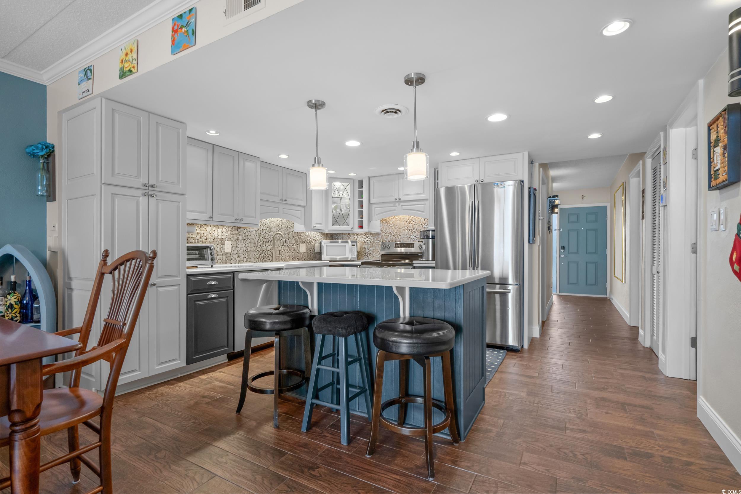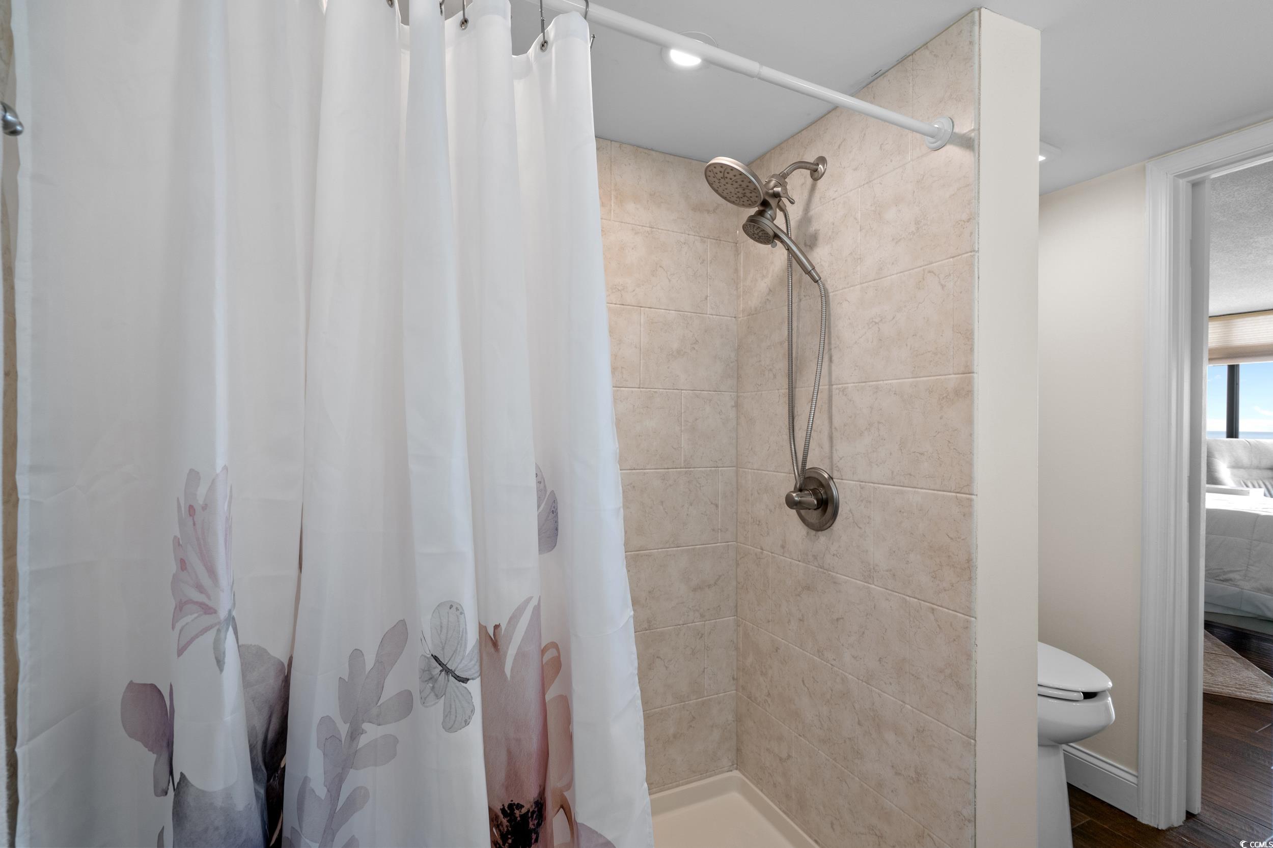 Experience coastal living at its finest in this expansive 3-bedroom, 2-bath oceanfront condo located in the highly sought-after Ocean Towers; renowned for offering some of the largest floor plans on the beach. This beautifully updated residence blends modern finishes with timeless coastal charm, making it the perfect primary home, vacation getaway, or investment property. This spacious, fully updated unit features wood-look tile flooring throughout, a completely renovated kitchen with quartz countertops, updated cabinetry, and all-new stainless steel appliances. The living area offers direct ocean views and access to a private balcony overlooking the shoreline. The primary bedroom includes a custom rock accent wall, while the two guest bedrooms boast shiplap accent walls for a stylish coastal touch. Both bathrooms have been fully remodeled with tiled walk-in showers, quartz countertops, and modern fixtures. Additional upgrades include all-new plumbing, plus a new HVAC system and hot water heater installed in 2024. Ocean Towers is currently undergoing a full building renovation, adding significant long-term value. Amenities include a parking deck, oceanfront pool, elevator, and direct beach access. Wake up to breathtaking sunrises, relax on your private balcony overlooking the ocean, and enjoy the best of beachfront living in one of the Grand Strand's most iconic buildings. With spacious interiors and high-end upgrades throughout, this condo delivers both luxury and comfort in a truly unbeatable location.