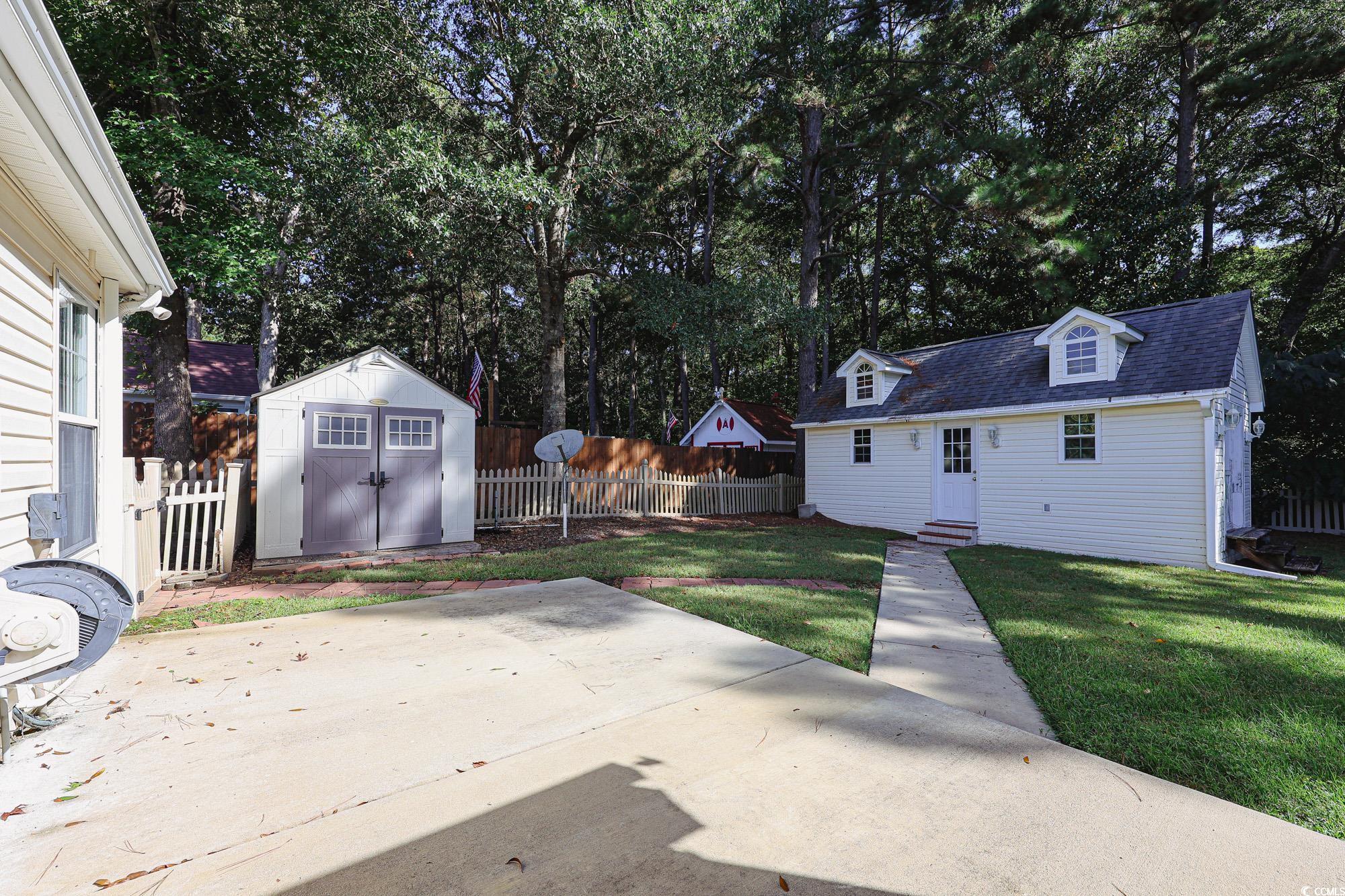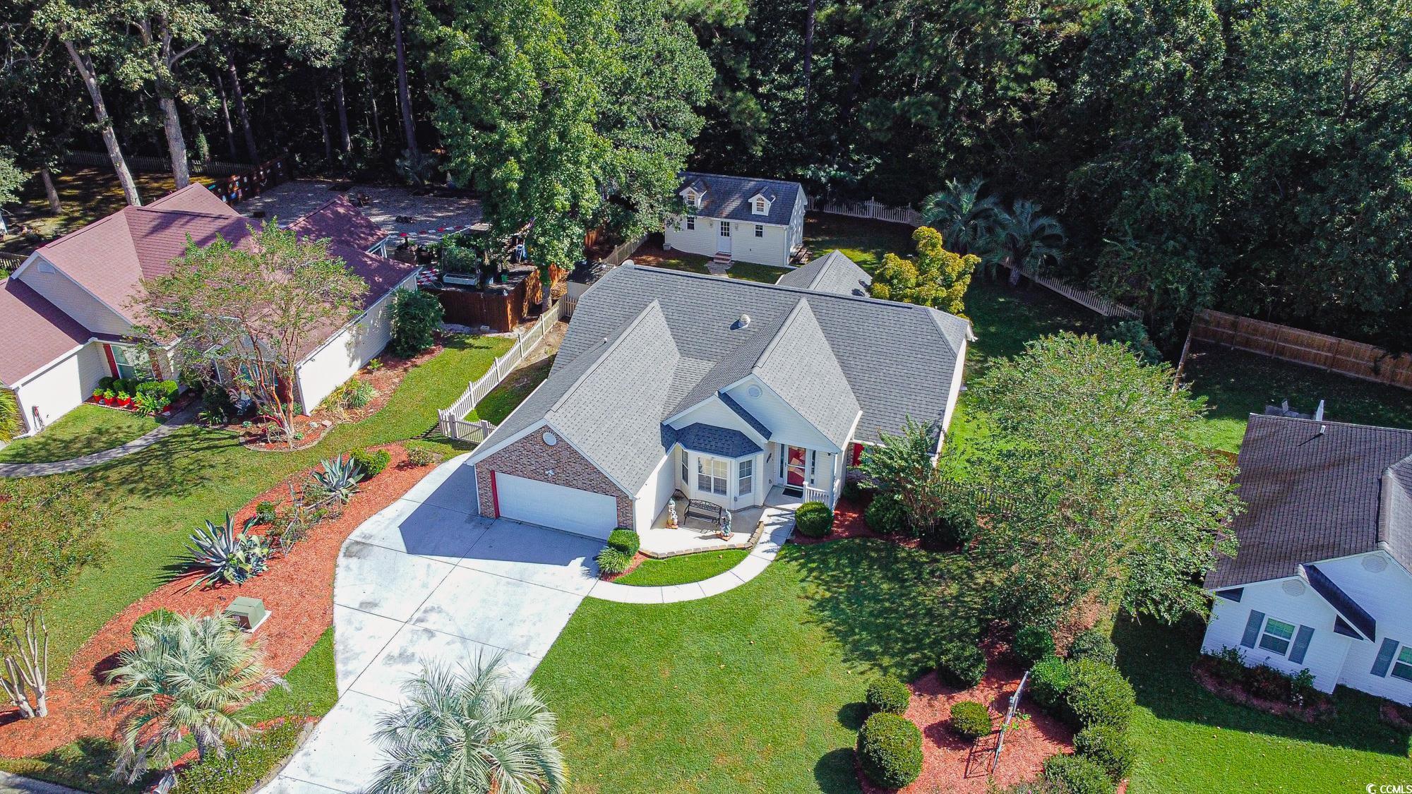 Welcome to 432 Brandymill Blvd, a bright and spacious single-level 3-bedroom, 2-bath home in the sought-after Brandymill community. The thoughtfully designed split-bedroom layout balances privacy with open living. The formal dining room features a bay window that fills the space with natural light, while the kitchen offers warm wood cabinetry, granite countertops, and vaulted ceilings that open to the main living area. The living room flows into a heated and cooled sunroom—perfect for morning coffee or evening relaxation—overlooking a private fenced backyard with a detached workshop (with mini-split A/C) and an additional utility shed. The primary suite is a true retreat, featuring a walk-in closet and an en-suite bath with dual vanities, a walk-in shower, and a soaking tub. Two additional bedrooms are located on the opposite side of the home with access to a full hall bath. Set on a beautifully landscaped lot with mature trees, this home offers comfort, functionality, and convenience. Located in the award-winning Socastee school district with low HOA, it’s just minutes from schools, golf courses, shopping, dining, and the beach.