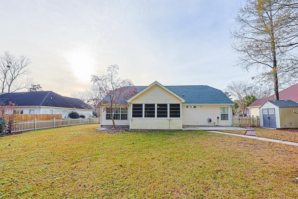 Welcome home to 432 Brandymill Blvd, a light-filled, single-level residence offering 3 bedrooms and 2 bathrooms in the desirable Brandymill community. Designed with a split-bedroom floor plan, this home provides both privacy and open, comfortable living, all while backing up to a very private, no-neighbor setting. A formal dining area with a charming bay window welcomes an abundance of natural light, while the kitchen features rich wood cabinetry, granite countertops, vaulted ceilings, and a refrigerator replaced approximately four months ago. The kitchen flows seamlessly into the main living space, making it ideal for everyday living and entertaining. The living room extends into a heated and cooled sunroom surrounded by screened windows, creating the perfect space to enjoy morning coffee or relax in the evenings while overlooking the private, fenced backyard. Outdoor highlights include a detached 12’ x 20’ building equipped with HVAC, flooring, and multiple screened windows, offering excellent flexibility for a workshop, studio, hobby space, or additional usable area. An additional utility shed provides even more storage. The spacious yard is sectioned with an extra gate, allowing pets to be kept out of designated areas as needed. As an added bonus, professional landscaping and yard maintenance have been prepaid for approximately 10 months. The primary suite serves as a relaxing retreat with a walk-in closet and an en-suite bathroom featuring dual vanities, a walk-in shower, and a soaking tub. Two additional bedrooms are thoughtfully positioned on the opposite side of the home and share a full hall bath, ensuring privacy for family or guests. Situated on a beautifully landscaped lot with mature trees, this home offers comfort, functionality, and convenience. Located in the award-winning Socastee school district with a low HOA, you’ll enjoy close proximity to schools, golf courses, shopping, dining, and the beach.