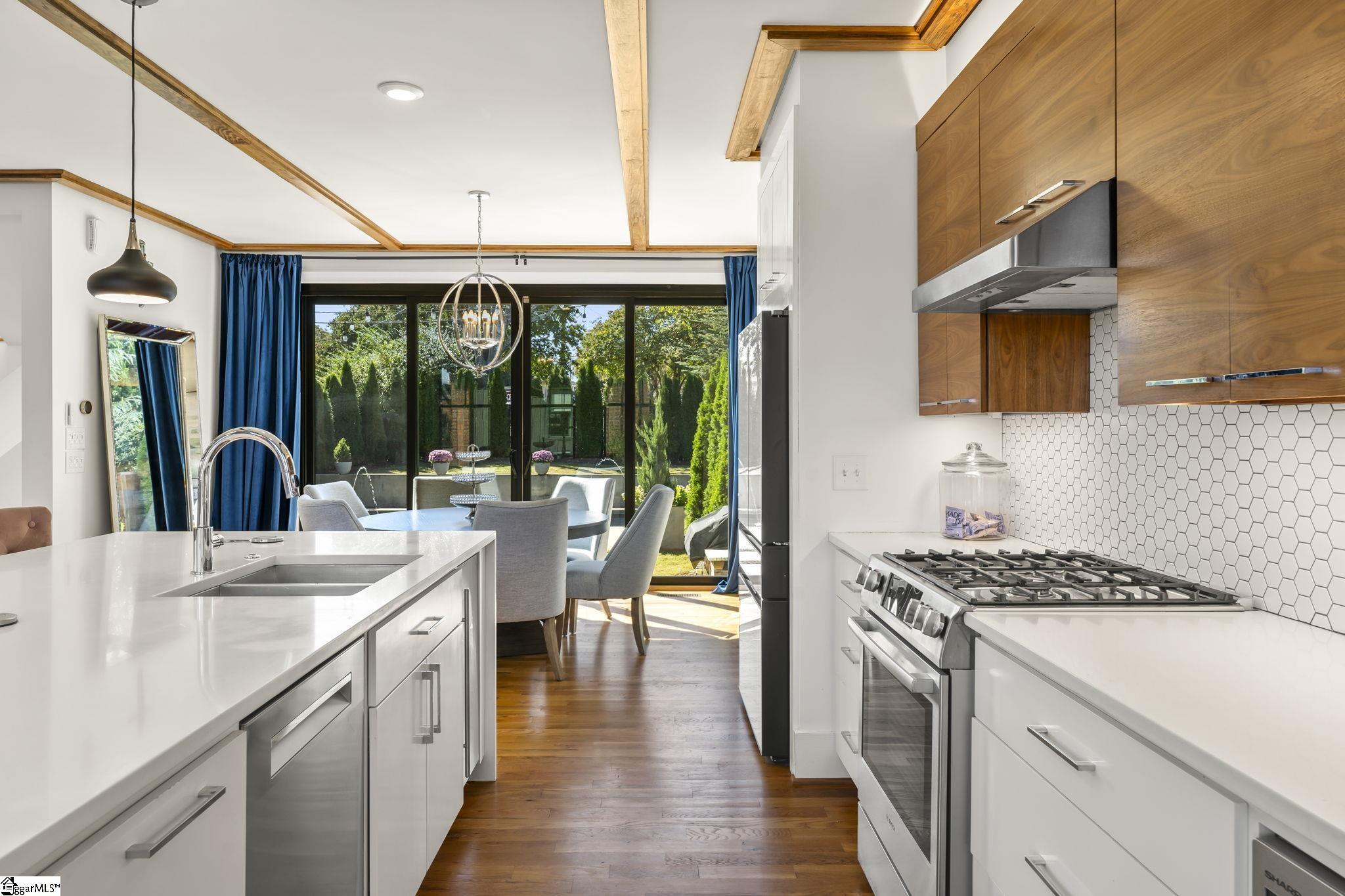 One of a kind Luxury Townhome in Downtown Greenville with PRIVATE Salt Water POOL! This 3 bedroom 3.5 bath townhome is perfectly positioned along the Swamp Rabbit Trail, Unity Park and just steps away from Main Street. Discover the ultimate blend of style, privacy, and walkability to Greenville’s best restaurants, shops, and green spaces. The main level features an open concept with expansive living and dining areas, floor-to-ceiling windows, and a gourmet chef’s kitchen with premium appliances. This is an end unit which allows a spectacular amount of light flowing in from 3 sides. Enjoy stunning panoramic views of a private pool and beautifully gardened yard with an outdoor cooking area, a rare find in downtown Greenville, and your front yard has a spectacular skyline view. The spacious primary suite enjoys breathtaking views of downtown Greenville. All 3 bedrooms are en-suite and the loft offers a beautiful pool view home office, or an additional sleeping area for guests. Large two car garage with a Chargepoint electric car charger installed and two additional parking spots on the driveway.