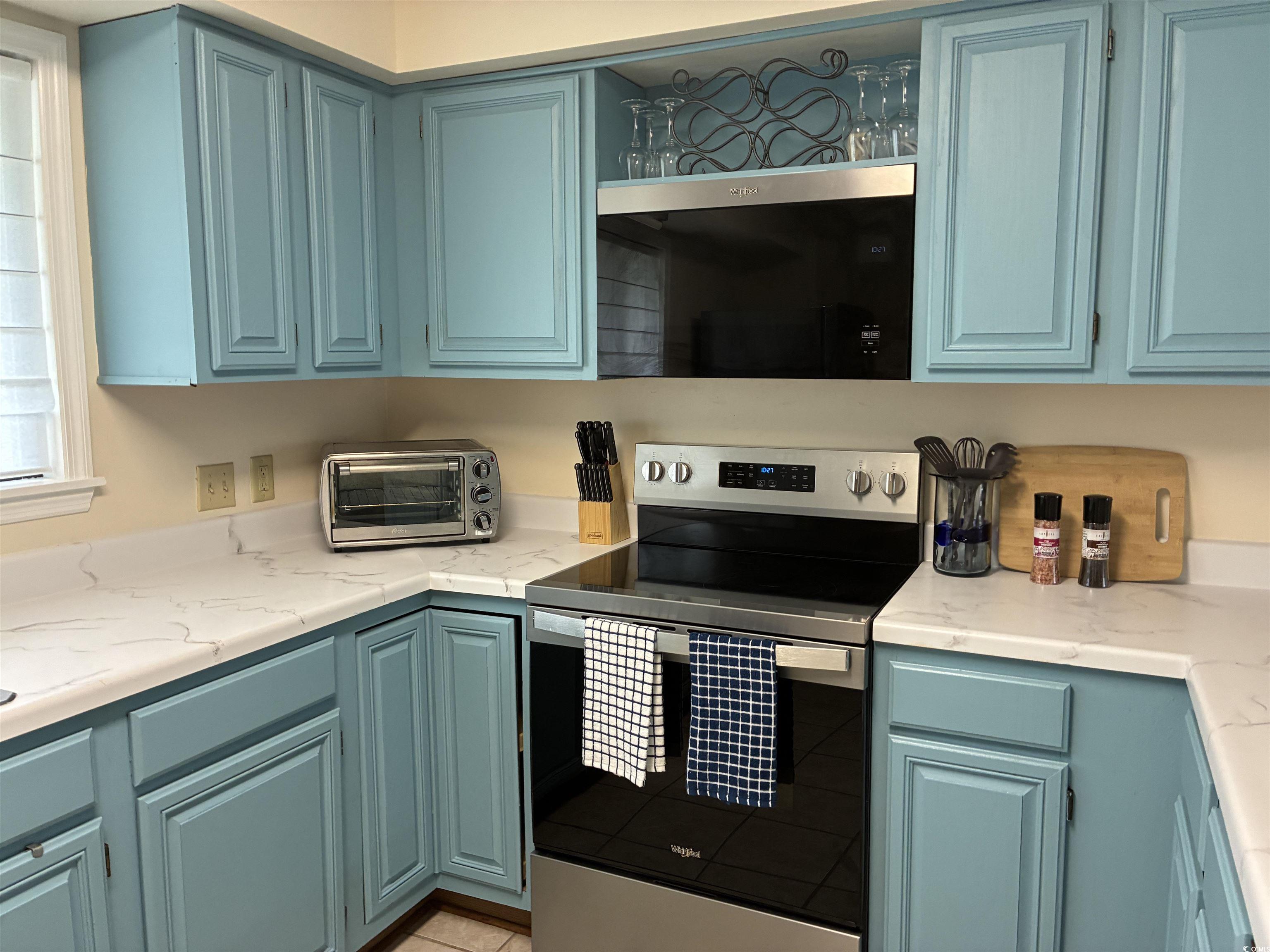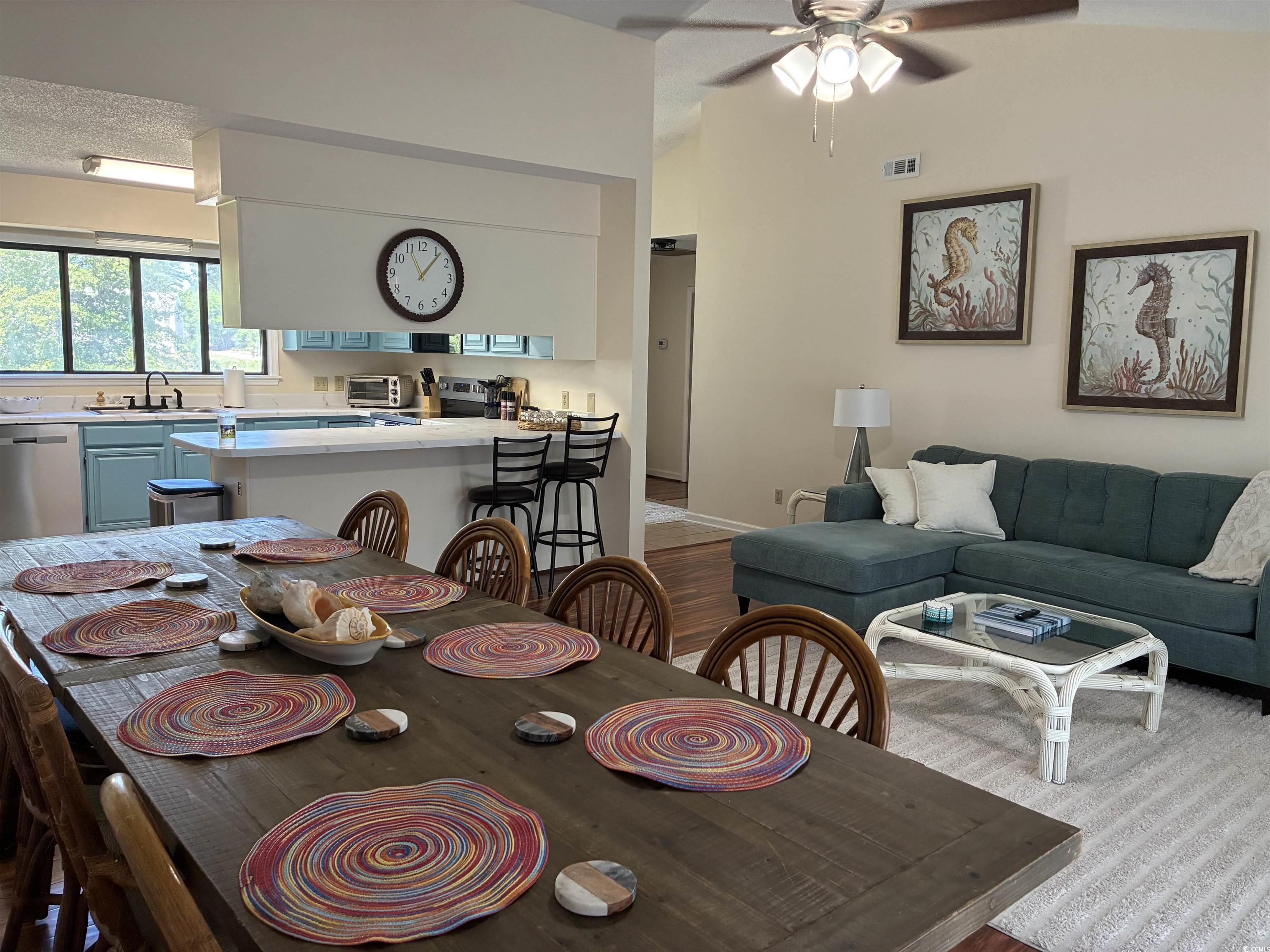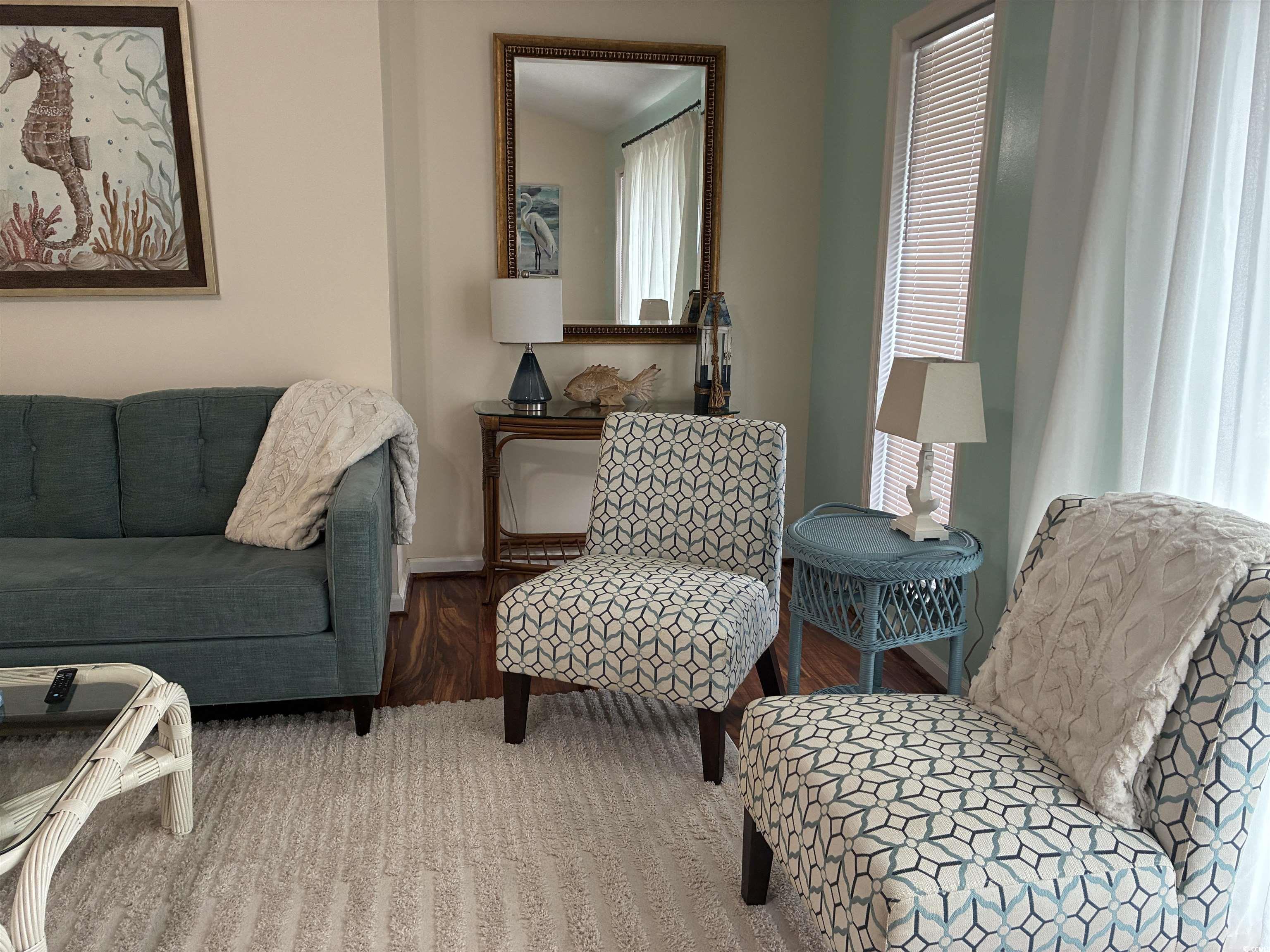 Great location-Intracoastal Waterway, boating, golf, waterfront restaurants, shopping, beaches nearby! NO HOA FEES/YOU OWN THE LAND! Recently remodeled and furnished in May 2025 with all new stainless fingerprint-less appliances & 50 gallon water heater, brand new Pergo flooring, new tasteful window/door treatments & whole house interior freshly painted ceiling to floor boards, a fully enclosed exterior storage room in addition to the full attic, both bedrooms have two large closets as well.