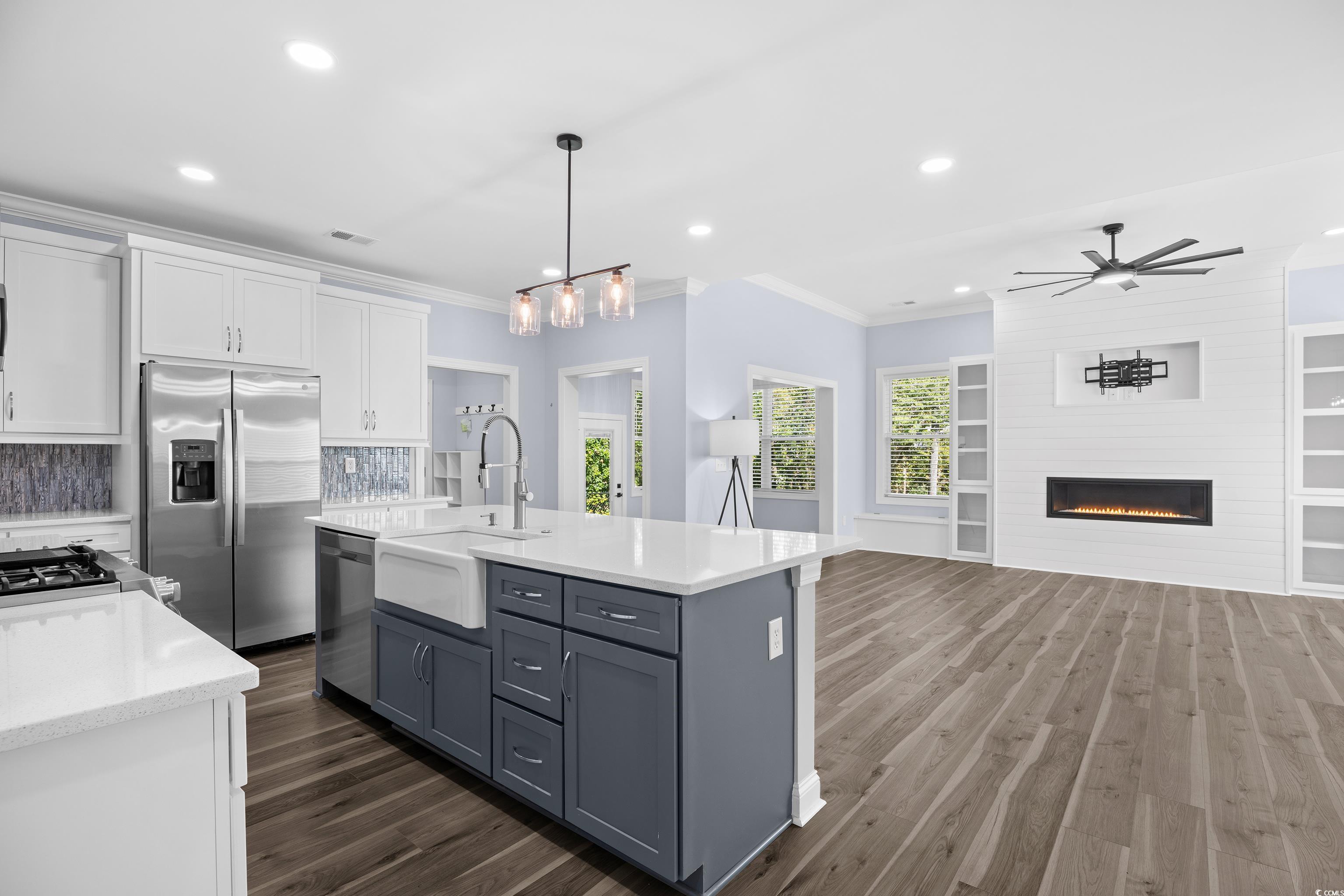Almost new home in Little River, on a large lot with wooded left and back property lines, is ready for a new owner. Walk into an open foyer leading to the living/dining/kitchen area. Check out the crown molding, and LVP flooring throughout the home – seamless and beautiful! Kitchen features a 42” cabinets with light rail, farm sink, quartz counters, tile backsplash, breakfast counter, LP Gas top range with electric oven, and is loaded with drawers and cabinets for your storage needs and a pantry too. The dining area is open and overlooks the living room with a gas fireplace, decorative cabinets and 2 window seats. Beautiful covered porch with wood slat wall is accessed thru a special sitting area off living room. This space can be used as an office, playroom, or any space you desire. Porch has an extended deck for grilling, and an area of the yard is fenced. Beyond this area there is a covered parking area for your boat, RV, or other. A mud room with drop zone and storage are off the oversized 2 car garage. Back at the front of the home you will find two bedrooms, a full bath and laundry room with sink, linen, cabinets, and washer and dryer are included with the sale. And the Master Bedroom with 2 closets, a shower with handheld and 2 body sprays, a full soaking tub, 2 sinks and vanity along with a water closet complete the living areas. Home is adorned with special features like sea glass panels in front door, 36” shaker style doors, plantation shutters across the front of the home, recessed lighting and more. Partially fenced yard, and a large storage shelter is in the back yard. Great for your boat and more. This home is a special find in Little River near the waterway and close to shopping, dining, and entertainment for your enjoyment. Property is located in Flood Zone X, see attached photo from FEMA map. Make your appointment to tour today!