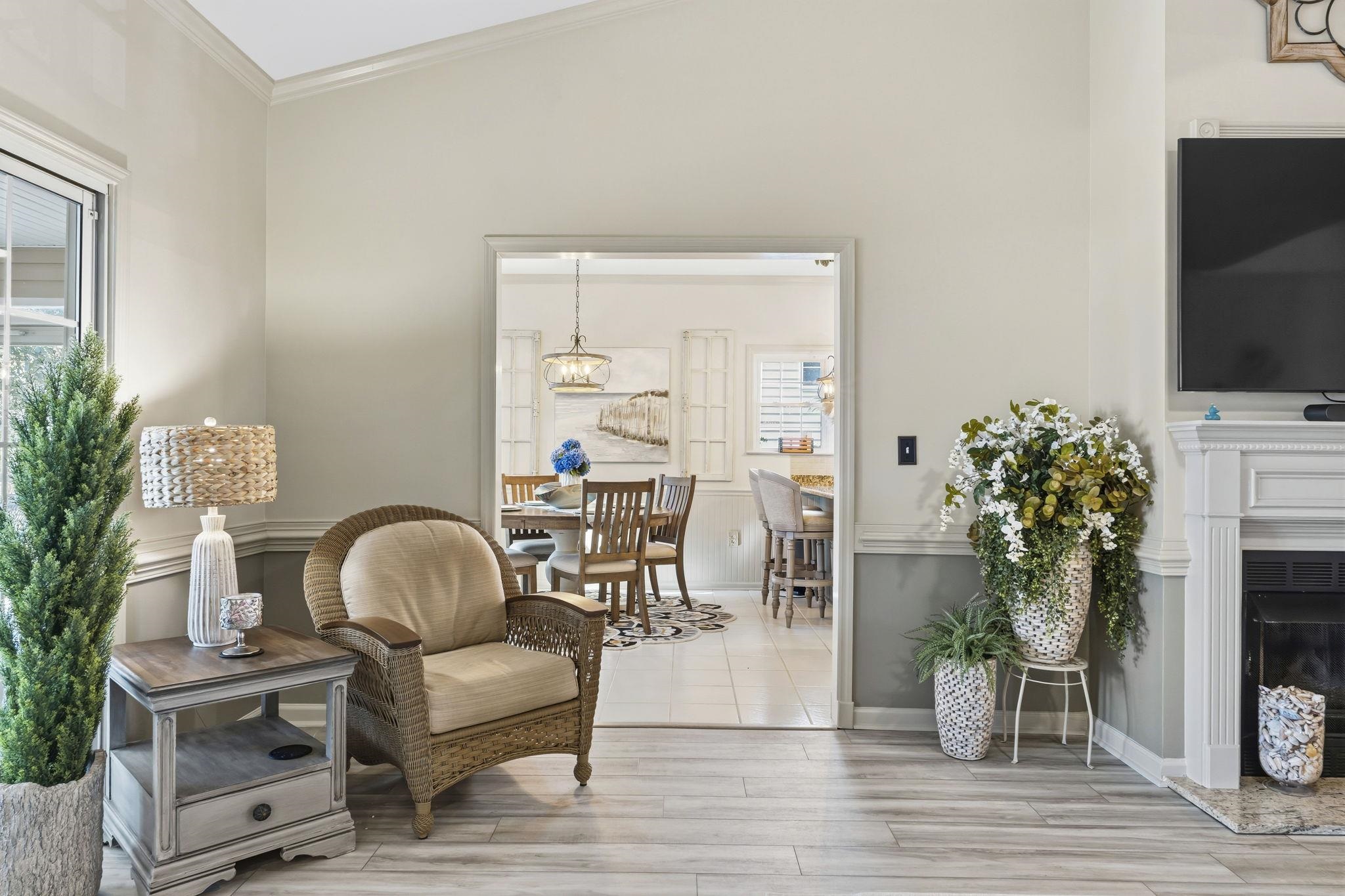Welcome to 4336 Deer Run, a beautifully maintained 3-bedroom, 2-bath home located in the desirable Oaks at Eastport Golf Community in Little River. Perfectly positioned along the 16th hole of the golf course, this home offers peaceful backyard views with a partial water view, creating a serene and private setting to enjoy outdoor living. From the moment you arrive, the home’s charming curb appeal and arched front entryway welcome you into a bright and open floor plan. The spacious living room features soaring vaulted ceilings, luxury vinyl plank flooring installed in 2025, and a cozy gas fireplace, making it the perfect space for relaxing or entertaining. The kitchen is designed with both style and function in mind, featuring granite countertops, stainless steel appliances (2020), a large pantry, breakfast bar, and ample cabinet space for everyday living. One of the highlights of the home is the beautiful Carolina room with floor-to-ceiling windows, filling the space with natural light while showcasing views of the backyard, golf course, and water beyond. The primary suite offers a private retreat with a tray ceiling, large walk-in closet, and an updated master bathroom featuring a modern stand-up shower, dual vanities, and a garden tub. Step outside to enjoy the beautifully landscaped backyard complete with a custom stone patio and pergola seating area, perfect for relaxing evenings while taking in the golf course views. This home also features a finished attic space with ample storage, providing excellent additional storage options. The two-car garage has been upgraded with epoxy floors and its own AC unit, allowing the space to stay comfortable year-round—perfect for hobbies, projects, or a workshop. Major updates include HVAC (2022), water heater (2022), roof replaced in 2016/2017, new gas lines for the fireplace (2024), and updated fixtures throughout the home. Located in a quiet golf course community just minutes from North Myrtle Beach, the Intracoastal Waterway, restaurants, shopping, and entertainment, this home offers the perfect balance of comfort, convenience, and coastal lifestyle. Don’t miss the opportunity to own this beautiful golf course home in one of Little River’s most sought-after communities. Washer and Dyer does not convey.