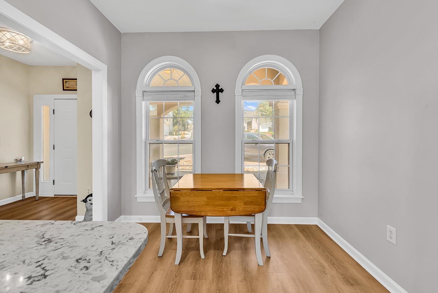 Welcome to gated coastal living in The Heights at Windy Hill. This beautifully maintained 3-bedroom, 3.5-bath home is tucked inside one of the area’s most desirable gated communities, east of Hwy 17, just a short stroll or golf-cart ride to the beach. Designed for both comfort and entertaining, the home features soaring ceilings, abundant natural light, and a spacious family room with a gas-log fireplace overlooking your private backyard oasis. The chlorine pool, expansive paver deck, and 6-foot privacy wall create the perfect setting for relaxing or hosting guests, all complemented by a low-maintenance, easy-care yard. An attached 2-car garage and negotiable golf cart add convenience to everyday coastal living. The main-level primary suite offers ease and privacy, complete with 2 walk-in closets, an enlarged walk-in shower, and a dual vanity. Upstairs, there are two generously sized bedrooms, each with private balcony access, providing ideal space for family or visitors. Recent improvements include fresh paint in some rooms, new flooring, and kitchen updates, giving the home a clean, updated feel while maintaining its coastal charm. The eat-in kitchen features vaulted ceilings, ample cabinetry, and a bright breakfast nook. Residents enjoy gated security, beautifully maintained common areas, and a convenient back gate with direct access to beachside golf cart parking. Located just minutes from shopping, dining, and entertainment. Golf Cart ride to Barefoot Landing. This home offers the rare combination of privacy, updates, and true coastal convenience. Whether as a primary residence or coastal retreat, this is your opportunity to own a move-in-ready home in one of Windy Hill’s premier gated communities.