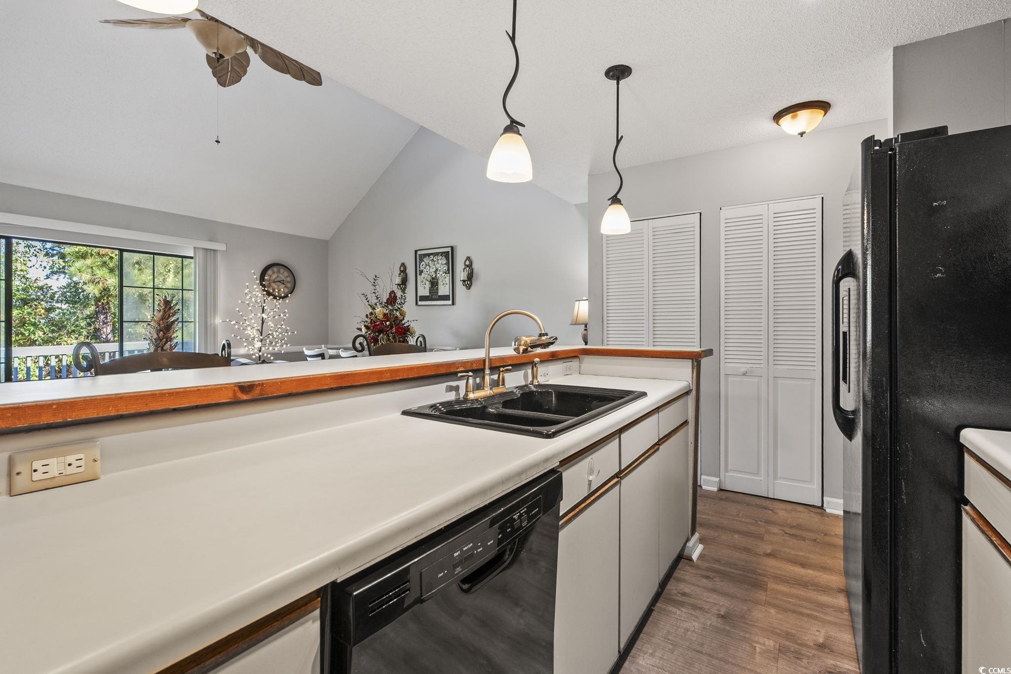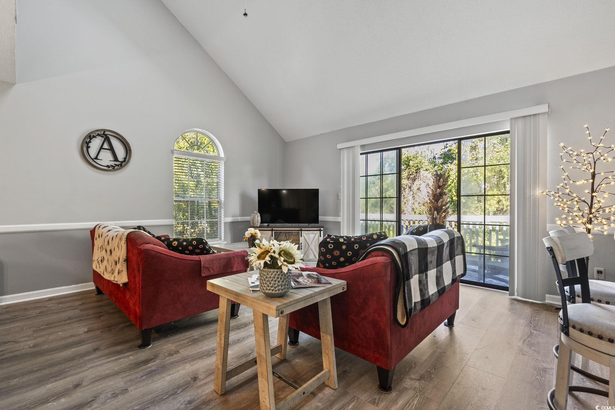 Welcome to The Spa at Little River! A beautiful and peaceful community surrounded by nature! This top-floor 2-bedroom, 2-bath condo offers vaulted ceilings, serene sounds, and a private balcony overlooking a lovely wooded area. Perfect for relaxing and enjoying the view of the trees from the deck out back. The home features new plank flooring in the kitchen and living room 2025, skylights that fill the space with natural light, and plenty of closet space throughout. The roof was replaced in October 2025, and the water heater was replaced in 2025. With two spacious levels, including a bright loft area, this condo provides comfort, charm, and room to breathe. Conveniently located near restaurants, shops, and all that Little River and North Myrtle Beach have to offer. Come experience the tranquility and charm of The Spa at Little River!