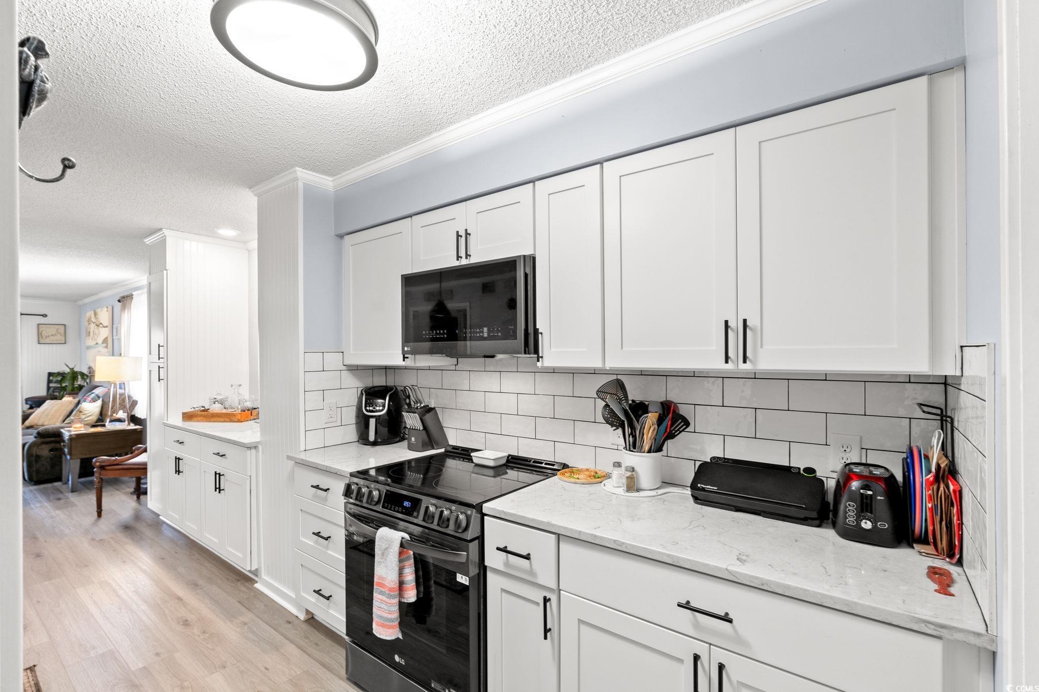 Welcome to your new waterway retreat in the heart of Little River! This charming 2-bedroom, 2-bath condo is ideal for those seeking both comfort and convenience. This recently renovated, top floor condo boasts an incredible upgraded modern kitchen with lots of counter and cabinet space. It also features fresh paint, new floors, newer stainless-steel appliances, etc. As a HUGE bonus the condo can be sold fully furnished (ask agent for details) at no additional cost! Bright natural light fills this open-concept condo, making it a must-see. Relax on the spacious full length screened-in patio and soak up the beautiful South Carolina weather. Perfectly situated next to Cricket Cove Marina and just a short stroll from the Intracoastal Waterway, you’ll have easy access to the fully renovated pool and pool area, peaceful courtyards, boating and water activities. Nearby, you’ll find great shopping, excellent fishing spots, and beloved local restaurants, all just minutes from the beach. Both buildings have been upgraded with a new roof (2023), drainage, plumbing, security, crawlspace encapsulation with dehumidifiers, etc., ensuring a worry-free lifestyle. Don’t miss this chance to own a beautifully updated condo in a peaceful setting.