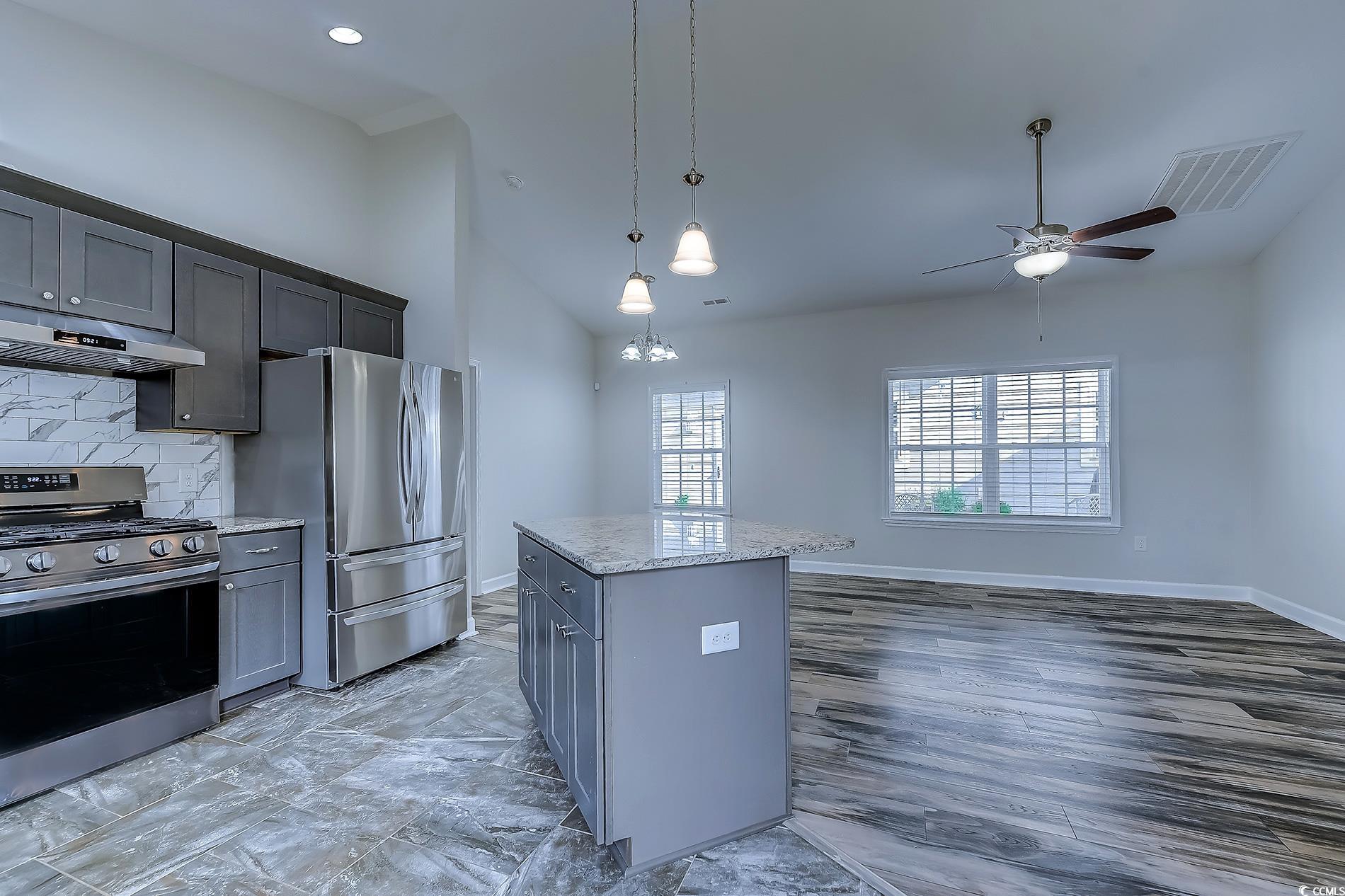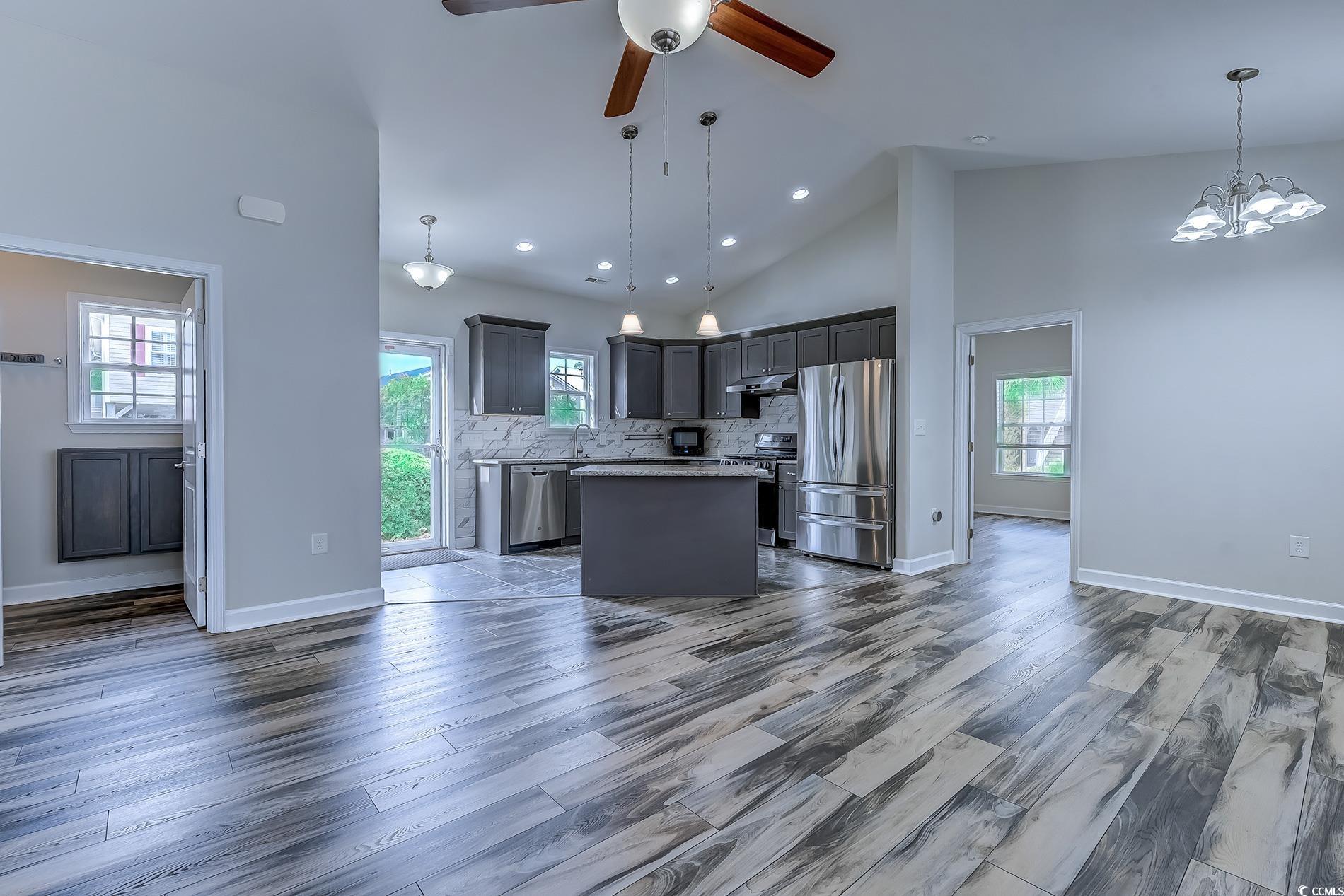 This highly desirable corner-lot home, built in 2019, is located in Little River, off Hwy 90 near Hwy 17. With quick, easy access to the beach, shopping, and restaurants in both NMB and Little River. Tucked away in Grande Harbour and annexed by North Myrtle Beach, the location is ideal for everything the Grand Strand offers, with the added benefit of free beach parking. The Grande Harbour community is a natural gas community with features including 50-year metal roofs, Hardy Plank siding, on-demand hot water, and heat. All recently serviced and maintained since new, with a newly painted exterior in 2024. This home has an upgraded SS gas range, a restaurant-grade exterior-vented hood, and an upgraded SS refrigerator. Custom cabinetry, unique tile, and LVP flooring throughout. With large windows for plenty of natural lighting, an open floor plan, vaulted ceilings, pocket doors, and a beautiful, functional kitchen, which is the heart of the living space. There are two oversized spacious bedrooms, each with an en suite bathroom and ample closet space. The exterior includes an attached storage room and a patio for evening entertainment, and it is close to the Community pool. The home is a perfect location for a second home at the beach or a full-time resident living at the beach. Low HOA includes internet, pool, landscaping maintenance, and streetlights.