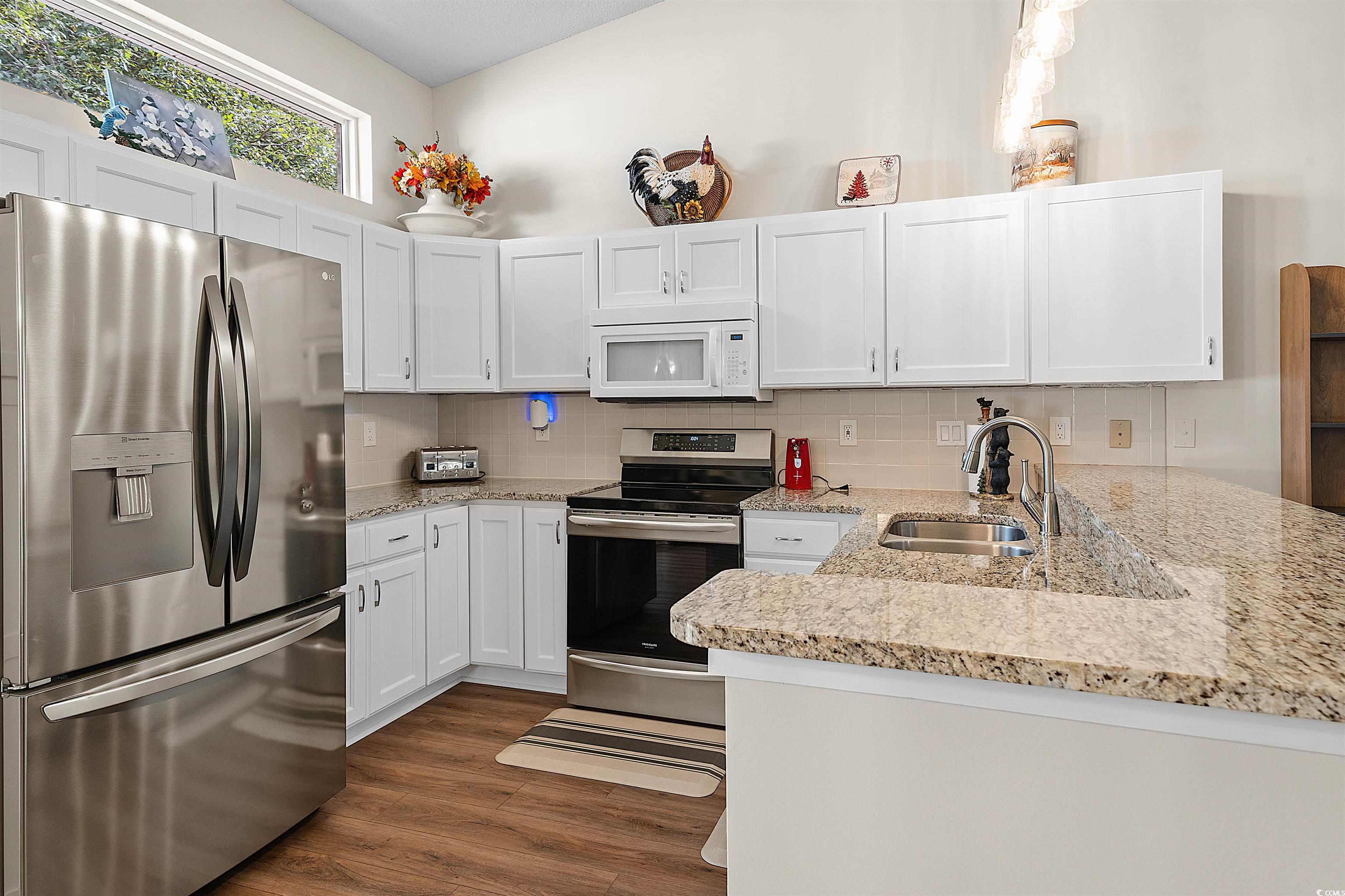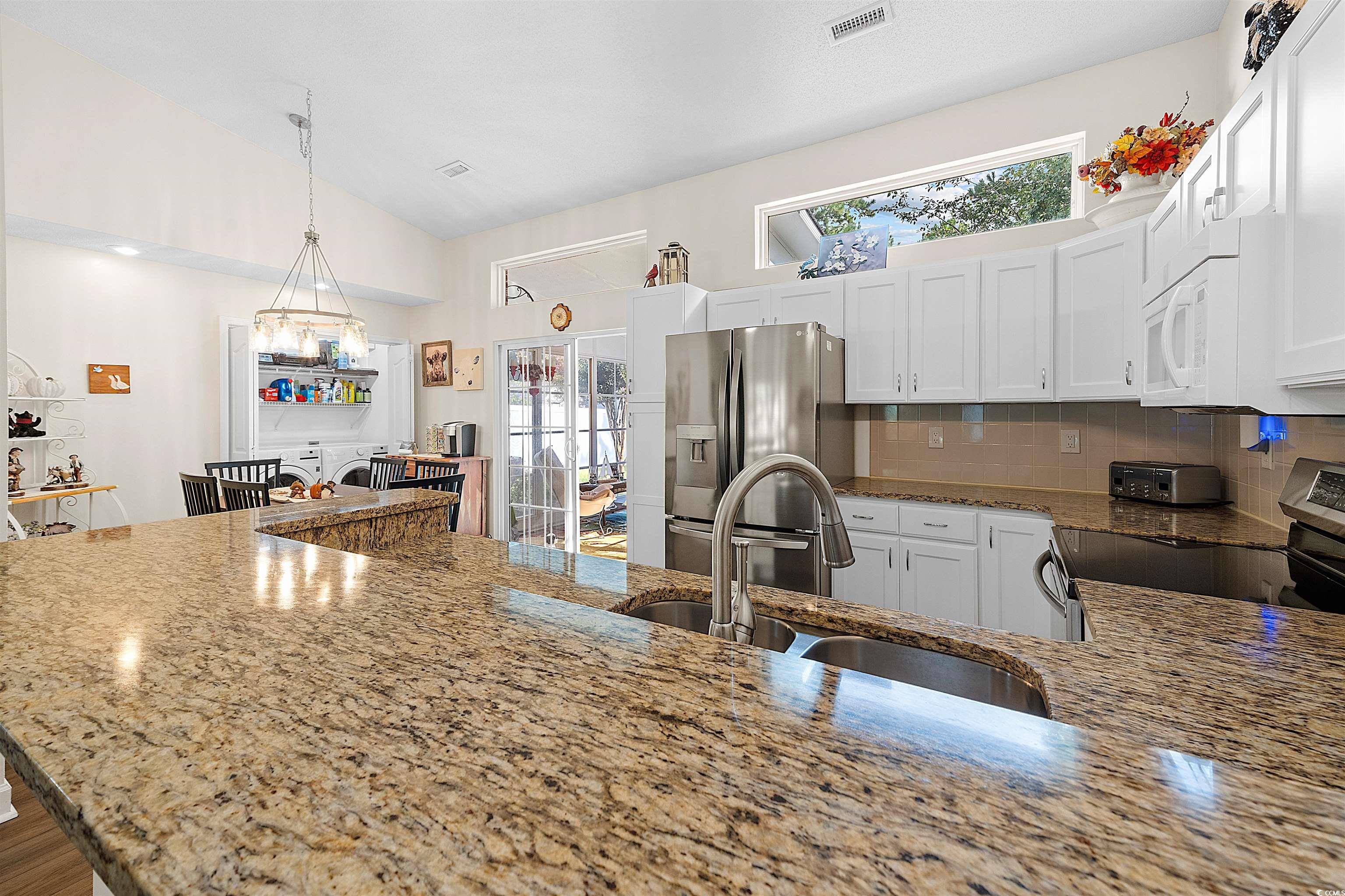 Completely renovated over the past four years, this beautiful all-brick 3 bedroom, 2 bathroom home is located in a desirable non-HOA community within the Forestbrook area. The home features an open living space with vaulted ceilings, a cozy fireplace, luxury vinyl plank flooring, and a modern kitchen with granite countertops and new stainless steel appliances. A brand-new sunroom with EZE-Breeze windows overlooks the fenced backyard, creating the perfect space to enjoy year-round. Major updates feature a new roof, HVAC, garage door, privacy fence, emergency generator, ceiling fans, light fixtures, and much more. Other highlights are a spacious 2-car garage, landscaped yard, and a central location close to shopping, dining, golf, the beach, and everything Myrtle Beach has to offer. This immaculately maintained home offers a perfect blend of modern upgrades and timeless charm, ready for its next owner.
