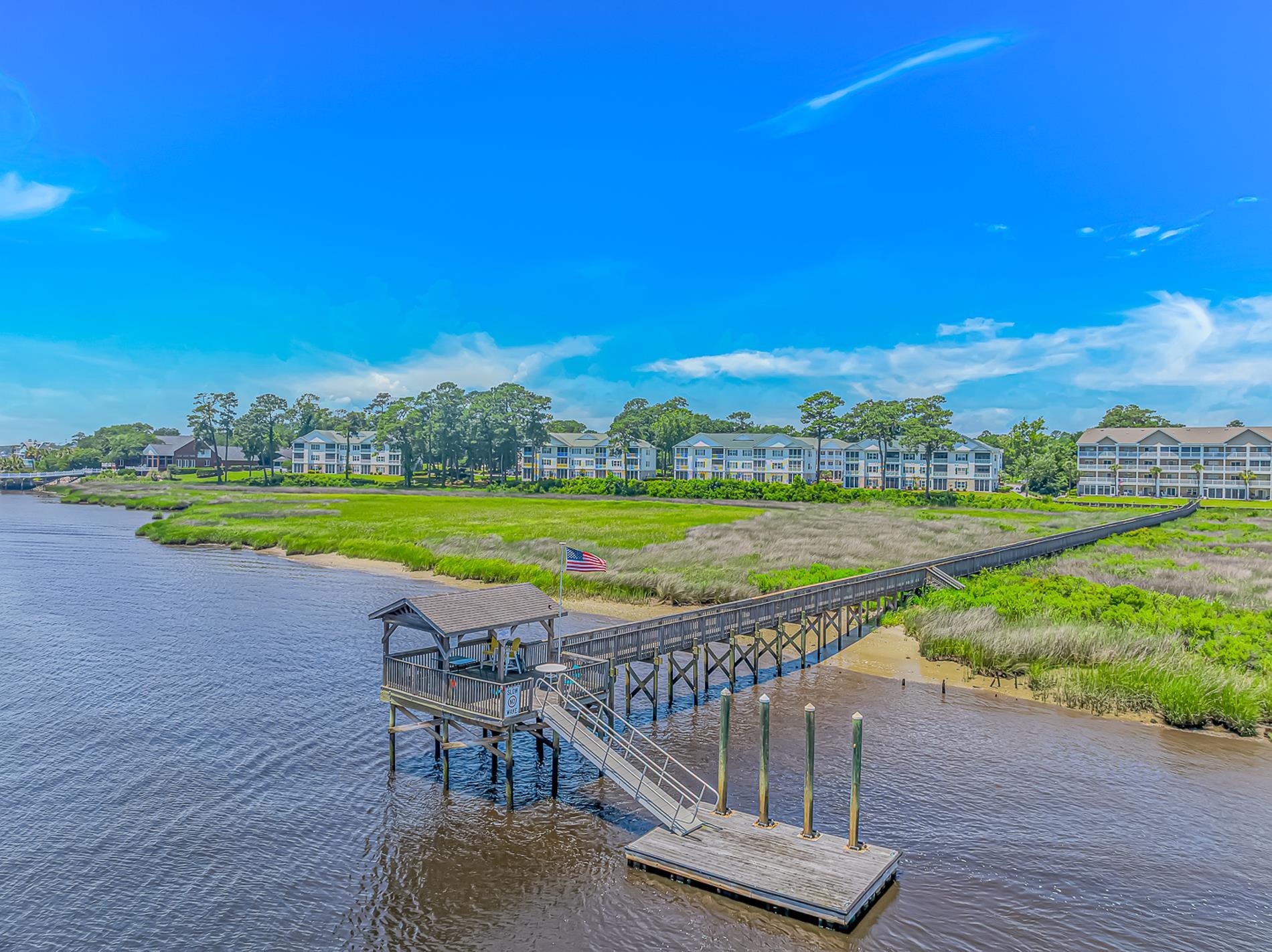Welcome home to this top floor, corner unit directly on the intracoastal waterway in the heart of Little River. Experience the ultimate in relaxed waterfront living with picturesque ICW views and a highly sought after location. This property features a community dock complete with a charming covered gazebo perfect for morning coffee, sunset cocktails, or simply soaking in the waterfront ambiance. This is a top floor unit in an elevator building. Large 26X12 primary suite features two spacious closets with a generously sized primary bath with walk in shower and linen closet. The kitchen has a breakfast bar and pantry and is open to the dining and living areas for fun entertaining while your guests watch the boats float by. The large 10X26 balcony is screened with 3 season windows and allows year round enjoyment of the waterfront. Freshly painted throughout and easy care ceramic tile flooring with laminate in the bedrooms, no carpet here! You'll appreciate the extra storage available in the large laundry room complete with stacked washer and dryer. This unit comes fully furnished with sleep sofas in the living room and waterfront bedroom, and is ready for you to bring your flip flops and sunscreen. There's also a community pool if you want to take a dip to wash off that summer heat. This location really has it all whether you're looking for recreation, relaxation, or convenience. With just a 15 minute drive you can have your toes in the sand on the beach or be at the famous seafood restaurants of Calabash, dine on the waterfront, enjoy the unique shops, or hit the golf course. Schedule your private showing today!