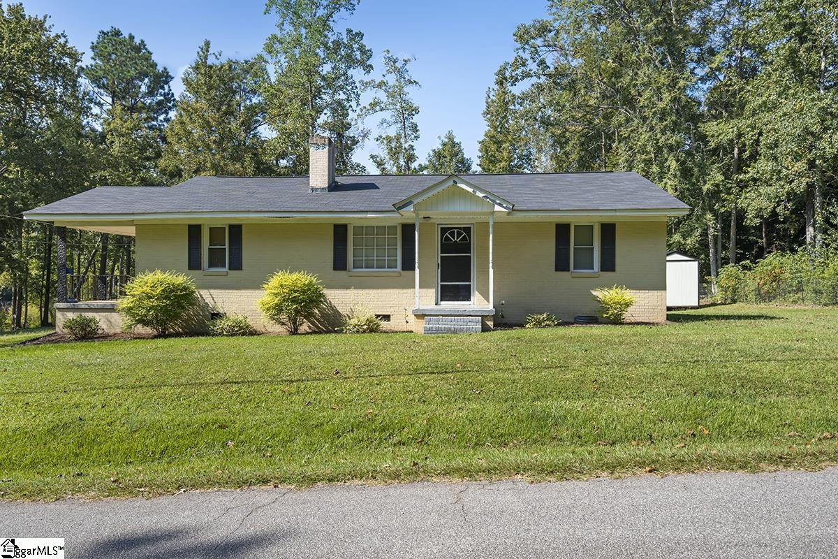 Lets Guide you home! This move in ready 3 bedroom 1 bath brick home located outside Laurens city limits overlooks a beautiful pond and your sure to love to large back yard! Step inside and you'll see it features a large living room with a stylish barn door that separates the living area from rest of home adding rustic charm and functionality. Beautiful hardwood floors also continue in hallway and bedrooms. Tiled kitchen floor- with ample cabinet space (appliances included!) the dining area features vinyl flooring, woodburning fireplace, and built in shelving. The open kitchen/dining area makes for a great space for hosting gatherings. The spacious bathroom offers tiled flooring, and double sink vanity providing convenience. Recent improvements include new HVAC 2022, new plumbing under the house, new water heater, new septic pit. With a pond view, quite location, just minutes from Downtown Laurens this home blends comfort, charm and practicality. Connect today to schedule your showing