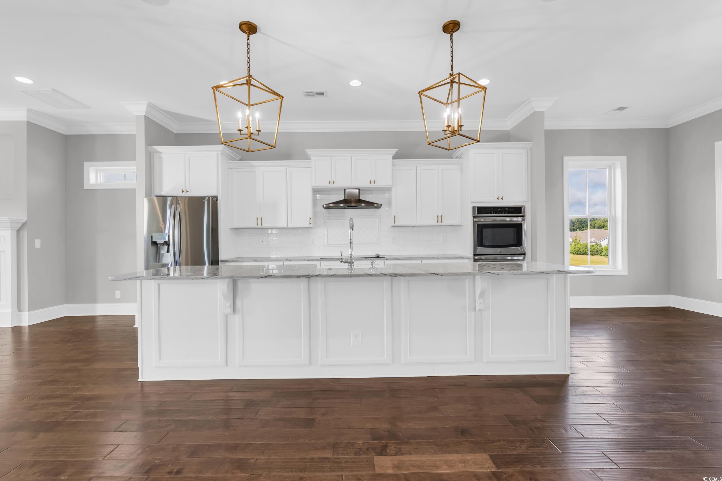 Welcome to 438 Saint Julian Ln., a stunning three-story home located in the highly sought-after gated community of The Battery on the Waterway in Carolina Forest. Perfectly positioned on the second row from the Intracoastal Waterway, this elegant property offers a lifestyle of comfort, space, and scenic beauty. This spacious residence features 4 bedrooms, 3 full bathrooms, 1 half bath, and a large bonus room—ideal for a home office, media room, or playroom. The home is also pre-wired and ready for elevator installation, offering future convenience and accessibility across all three levels. Stepping into the recently repainted interior, you’ll find quality finishes and thoughtful details throughout. The luxurious master suite includes tray ceilings, a spa-like en-suite bath with a soaking tub and walk-in tiled shower, and a private Romeo and Juliet balcony—perfect for enjoying tranquil views of the nearby waterway. The home features a surround sound system throughout.. The heart of the home is the chef’s kitchen, equipped for serious cooking and entertaining. It opens up to a rear porch that overlooks a serene lake, providing an ideal setting for morning coffee or evening relaxation, and cooking out on your new grill. This custom home also features a Back-load garage for enhanced curb appeal, Rear-facing porch with peaceful lake views, elegant curb appeal with coastal charm, Gated community with privacy and access to the waterway and walking trails. Don’t miss this opportunity to own a piece of coastal luxury in one of Myrtle Beach’s most prestigious communities. Whether you’re looking for a primary residence or a second home close to the water, 438 Saint Julian Ln. offers it all.