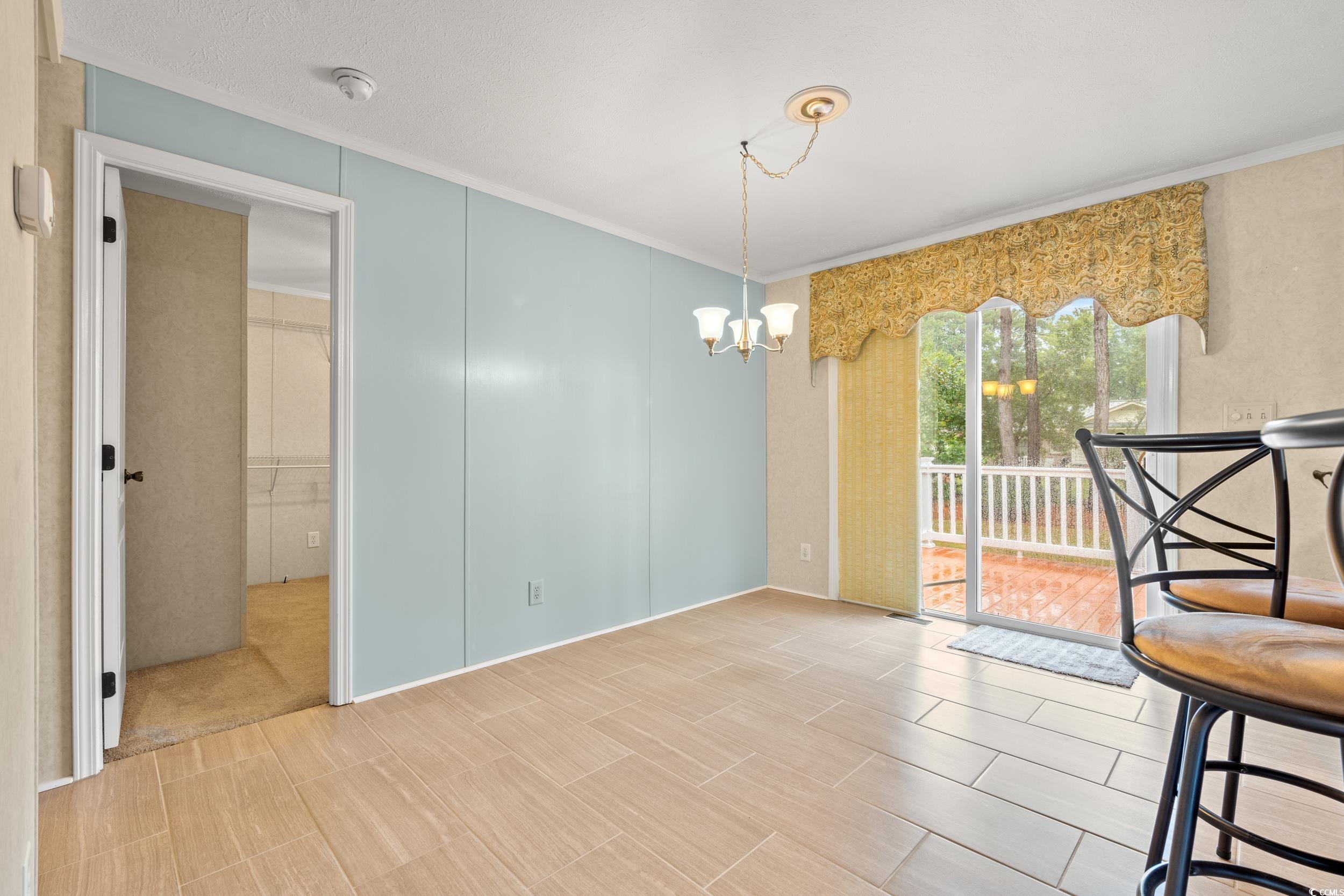 Located less than 4 miles from the beautiful beaches of Cherry Grove is 4385 Erie Drive in Country Lakes, a gated 55+ community. This meticulously maintained home consists of 3 bedrooms, 2 full baths, along with a spacious living area & a large kitchen with an abundance of cabinets and countertop space. A sliding glass door leads from the dining room onto your private deck overlooking a well manicured backyard. Just off the kitchen is the laundry room that also leads outdoors into the carport. New updates throughout including new flooring, lighting, and gutters with leaf guard. Country Lakes provides a vibrant coastal lifestyle for its residents. Enjoy swimming in the community pool, a workout in the fitness center or planned activities in the clubhouse. Residents delight in bocce ball, billiards, ceramics and craft clubs, horseshoes, card games, and many other social events! Schedule your private showing today at 4385 Erie Drive.