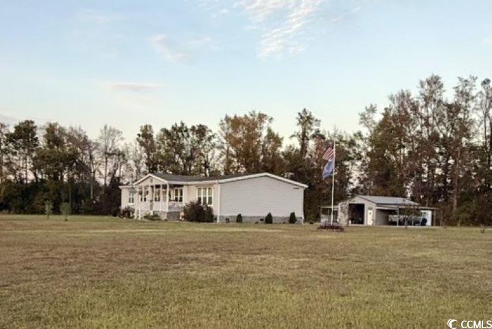 Discover peaceful country living in this spacious 4-bedroom, 2-bath mobile home nestled on nearly 7 beautiful acres in the highly sought-after Aynor area. This well-maintained property offers the perfect blend of privacy, comfort, and outdoor enjoyment. Step inside to an inviting layout featuring a large living area, a functional kitchen with plenty of cabinet space, and comfortable bedrooms. The primary suite includes its own private bath for added convenience. Relax outdoors on the covered front porch, perfect for rocking chairs and morning coffee, or unwind on the screened back porch overlooking your expansive property. The land boasts a picturesque pond, offering a serene backdrop and opportunities for fishing or simply enjoying nature. A detached carport/shed provides great storage for vehicles, tools, or equipment--ideal for those who love hobbies, gardening, or outdoor projects. Located just minutes from downtown Aynor and within the award-winning Aynor school district, this property offers the peaceful rural lifestyle you've been looking for while keeping everyday conveniences close by. Whether you're seeking a homestead, a private getaway, or room to grow, this property has it all.