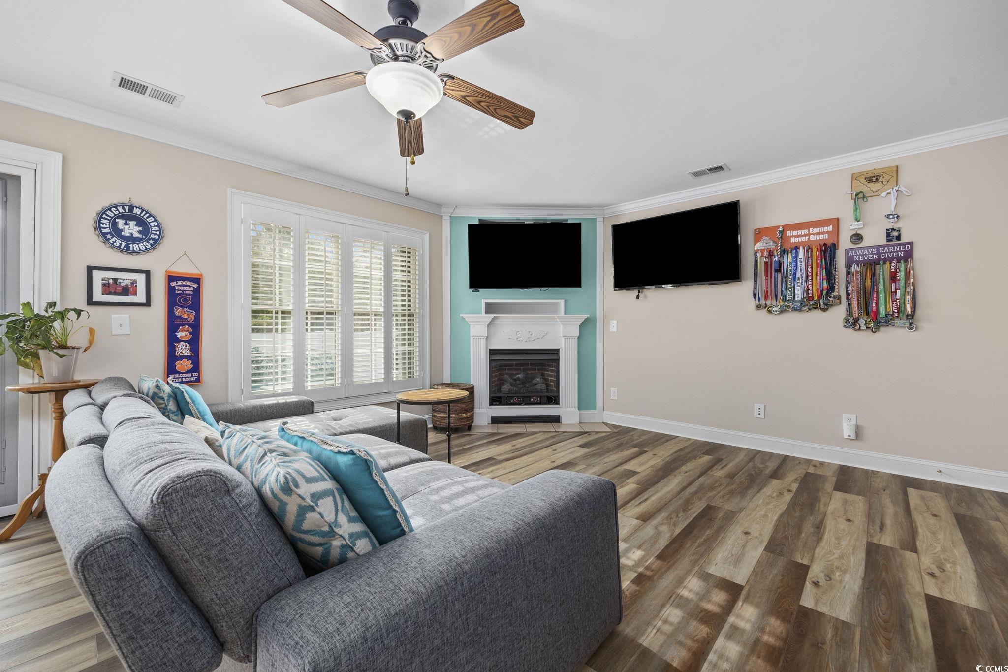 Beautifully appointed and surrounded by gorgeous oak and pecan trees, this 4 bedroom, 3.5 bath home is located in The Orchard, a charming community in the heart of Murrells Inlet Proper. The ground level features an interior Foyer that leads to an impressive two-bedroom in-law/guest quarters, complete with a full bath, butler’s kitchen, cozy living room with a gas fireplace, laundry closet with connections (no washer & dryer) and a private outdoor patio perfect for extended family or visitors. Take the interior stairs from foyer to the main living level. Cathedral ceilings enhance the open-concept great room which flows seamlessly into the kitchen with breakfast bar and the spacious dining area. The charming Southern-style front porch offers the perfect spot to relax and unwind. Additionally on the main level... a half bath, laundry closet with full size side-by-side washer & dryer and an oversized primary suite including dual ensuites, linen closet, dual walk-in closets, two ceiling fans and private sitting area with access to the Juliet balcony. The third floor provides yet another flexible space, perfect for use as a guest room or office, with two walk-in closets... one of which could be converted into an additional bathroom if desired. Let's not forget about the huge, attached 2 car garage space... perfect for 2.5 cars and additional storage! Home has Hurricane Shutters. Outside, enjoy a fenced backyard with patio space. And for boating enthusiasts, the public boat ramp is just blocks away. 2 HVAC's replaced in 2023 and 2016. Water Heater installed 2023. **NOTE: Sellers own the lot next door (buildable) only available to a potential house buyer. Have your agent ask about the lot price/ to discuss. Property is located in flood zone X- the best! **All information is deemed to be reliable but is not guaranteed. Square footage is approximate and the responsibility of the buyer to verify.