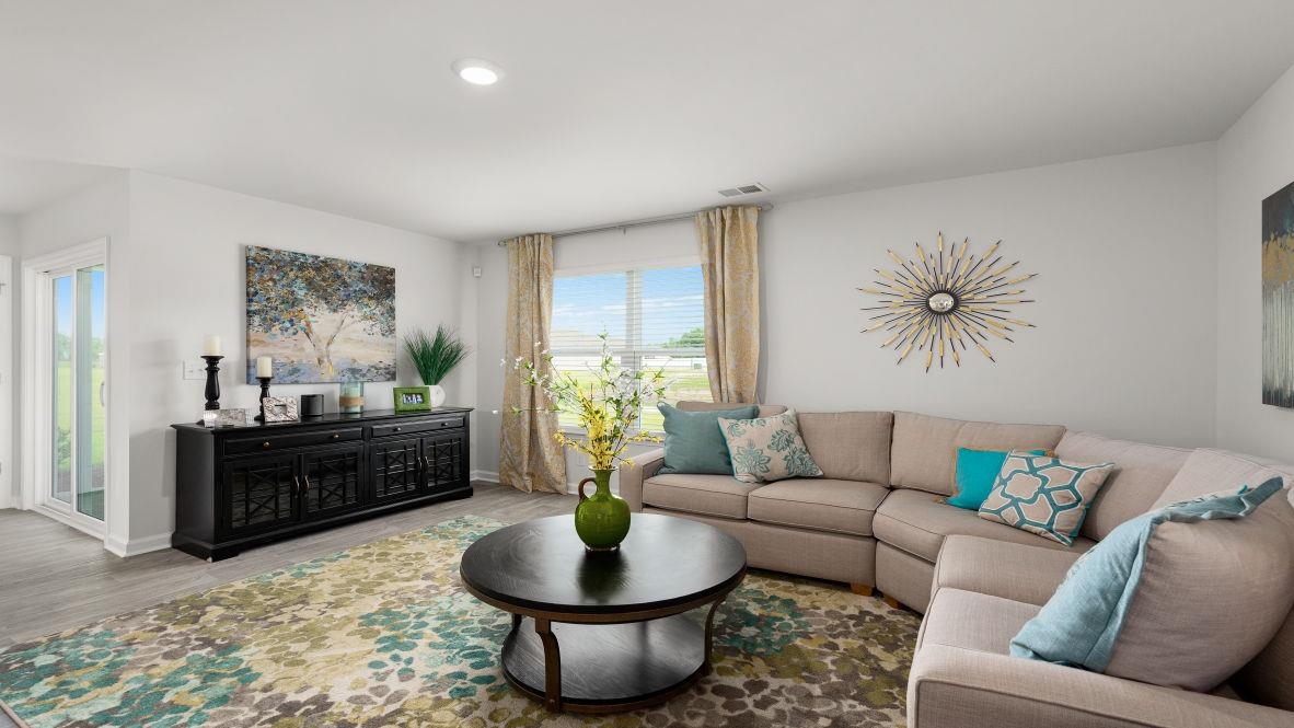 Experience the Kerry floor plan offering an open layout and single level living. The kitchen boasts a large island with breakfast bar and opens to the casual dining area and spacious living room. Granite countertops, 36" cabinetry and stainless steel Whirlpool appliances including a refrigerator finish off the kitchen with beautiful and durable finishes. The primary bedroom suite is located at the back of the home with a generous size bathroom with a 5' shower, double vanity, and walk-in closet. Two secondary bedrooms are at the front of the home providing separation from the primary suite. Enjoy your morning coffee on the covered back porch. 2" faux wood blinds on all standard windows. This is America's Smart Home! Each of our homes comes with an industry leading smart home technology package that will allow you to control the thermostat, front door light and lock, and video doorbell from your smartphone. *Photos are of a similar Kerry home. (Home and community information, including pricing, included features, terms, availability and amenities, are subject to change prior to sale at any time without notice or obligation. Square footages are approximate. Pictures, photographs, colors, features, and sizes are for illustration purposes only and will vary from the homes as built. Equal housing opportunity builder.)