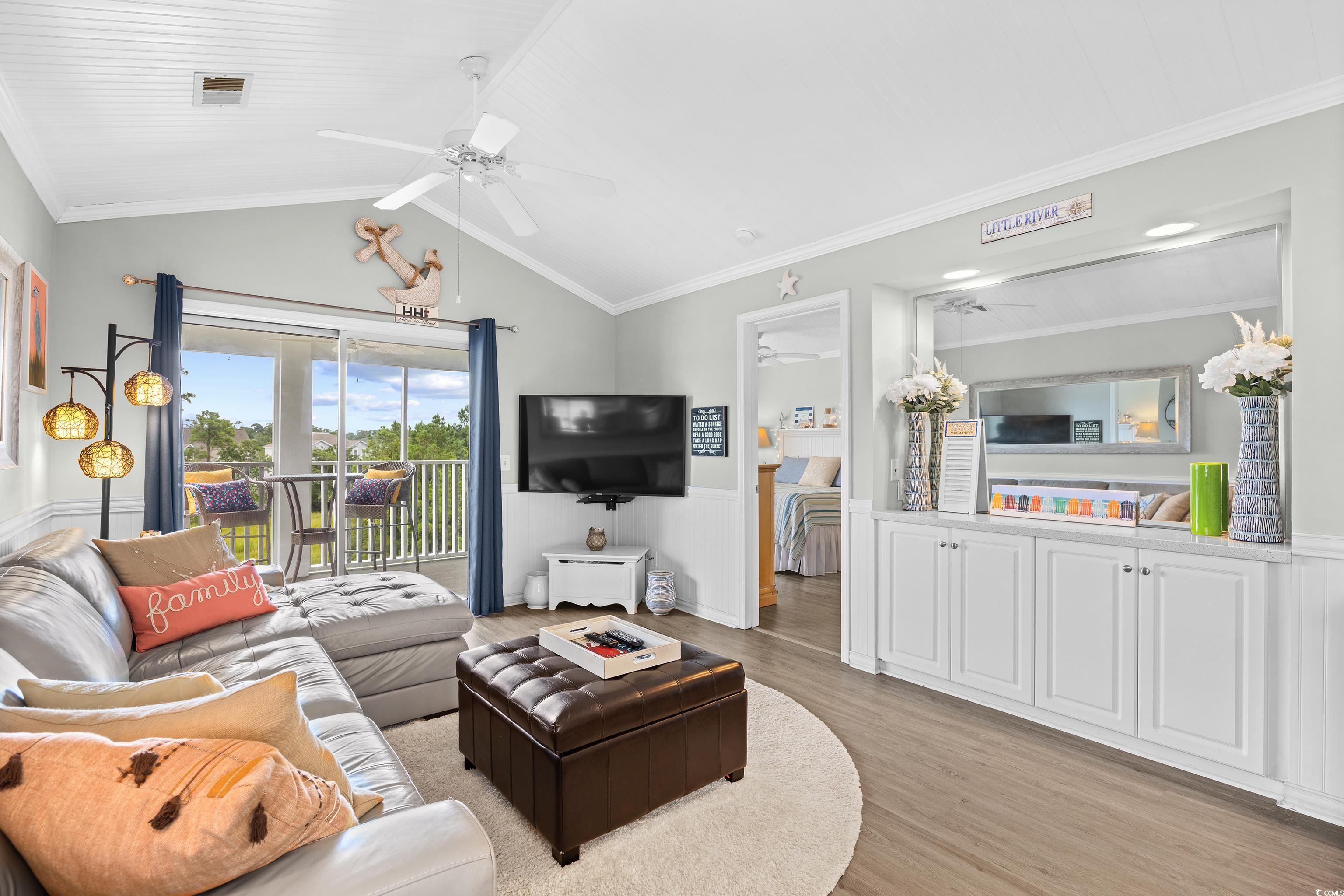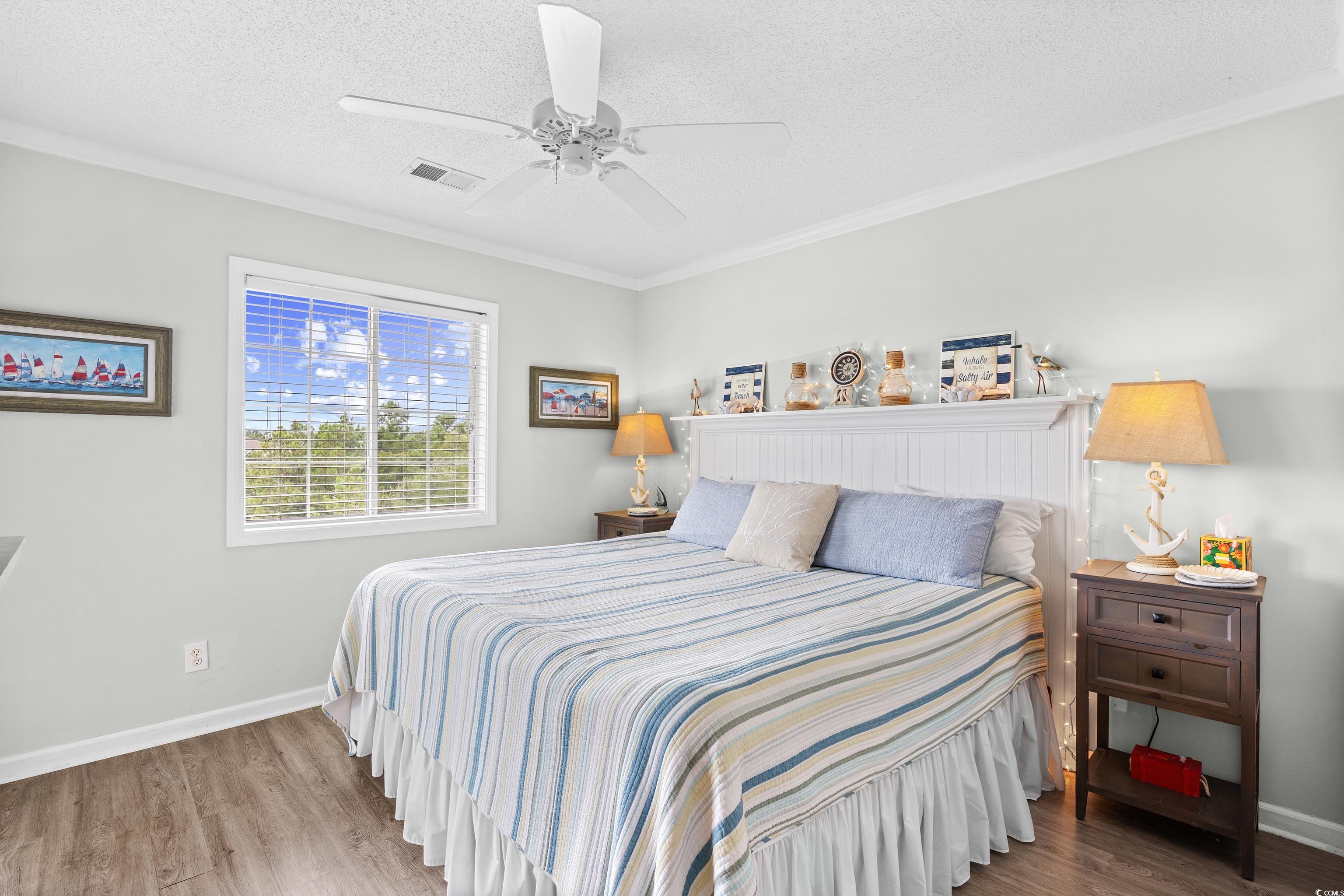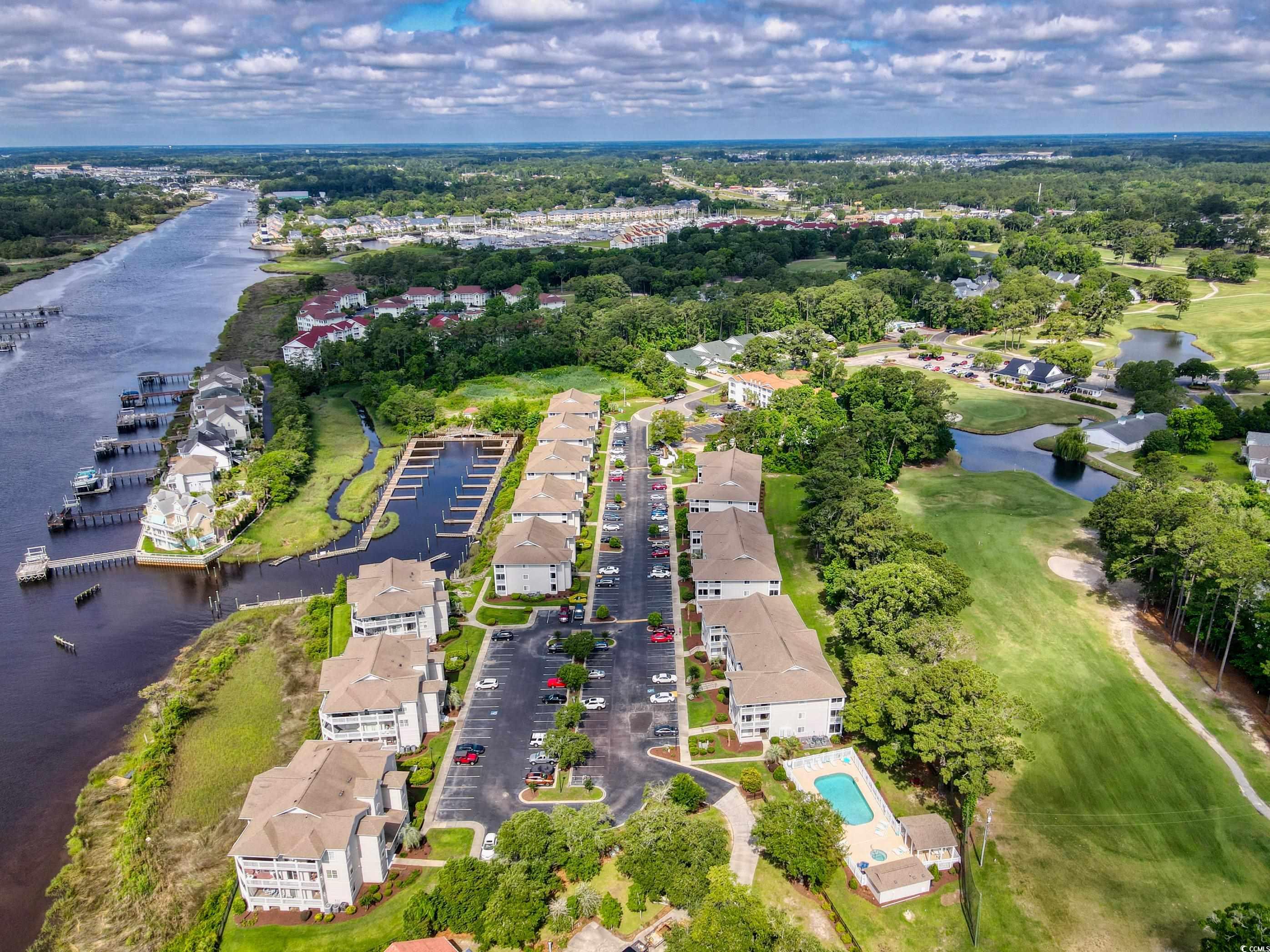 This is the one! Beautiful views of the ICW from this third-floor condo located in the Eastport Neighborhood off Hwy 17. Walk in the front door to updated LVP flooring through the living areas and bedrooms. New tile in bathrooms! Quartz counters in the kitchen, bar area and both bathrooms. Look up at the Beadboard Vaulted Ceiling in the living/dining room!! And beadboard wainscot throughout adds the elevated decor. New ceiling fans throughout including the screened porch. The kitchen has GE appliances which are only a few years old, some of the furniture is newer - the king bed in the master is new, and the queen in the 2nd bedroom is a few years old. Condominium is sold furnished and all appliances including washer/dryer convey. Enjoy the views of the Waterway, golf course location, and community pool. Close to North Myrtle Beach - Cherry Grove Beaches and shopping, dining and entertainment.