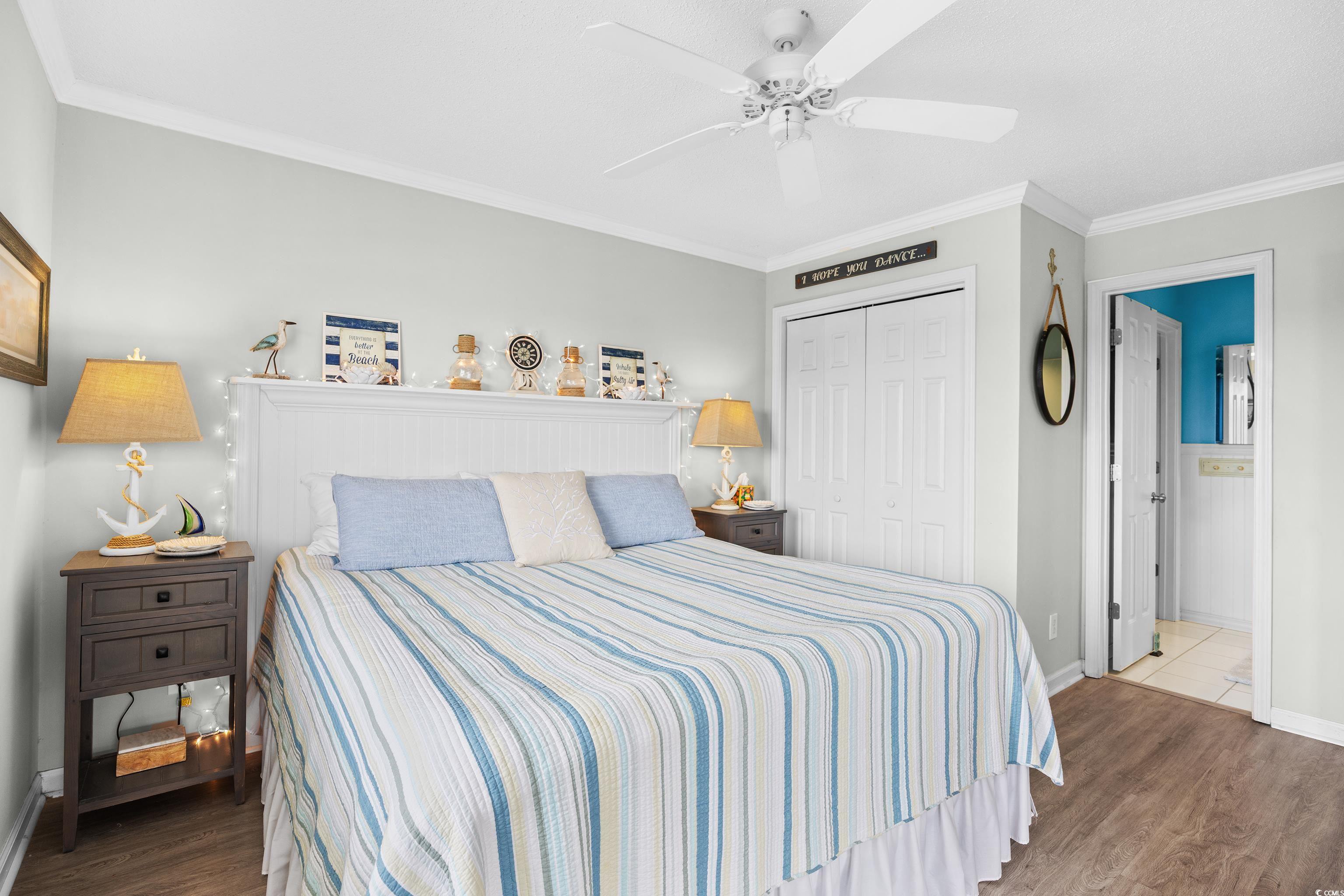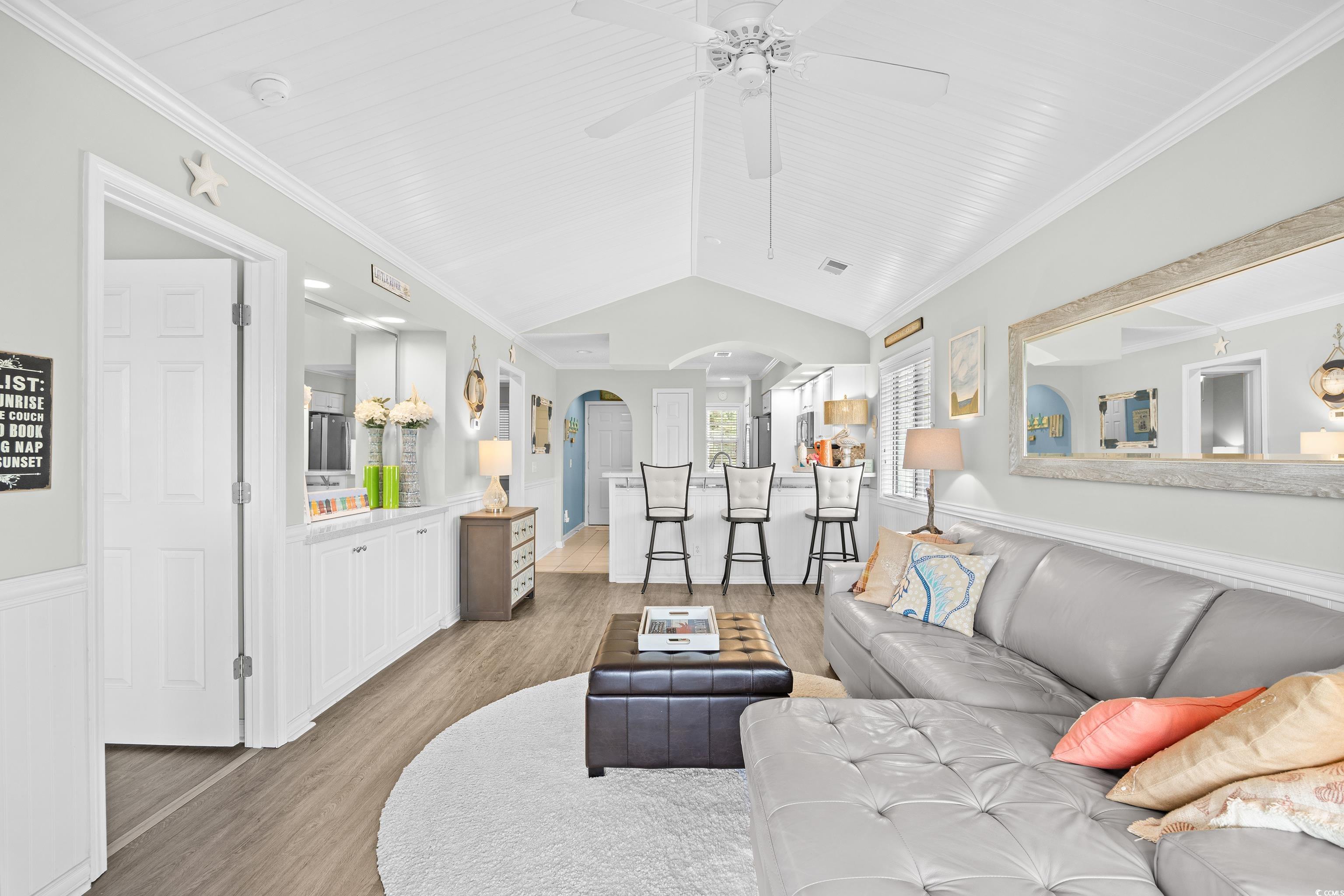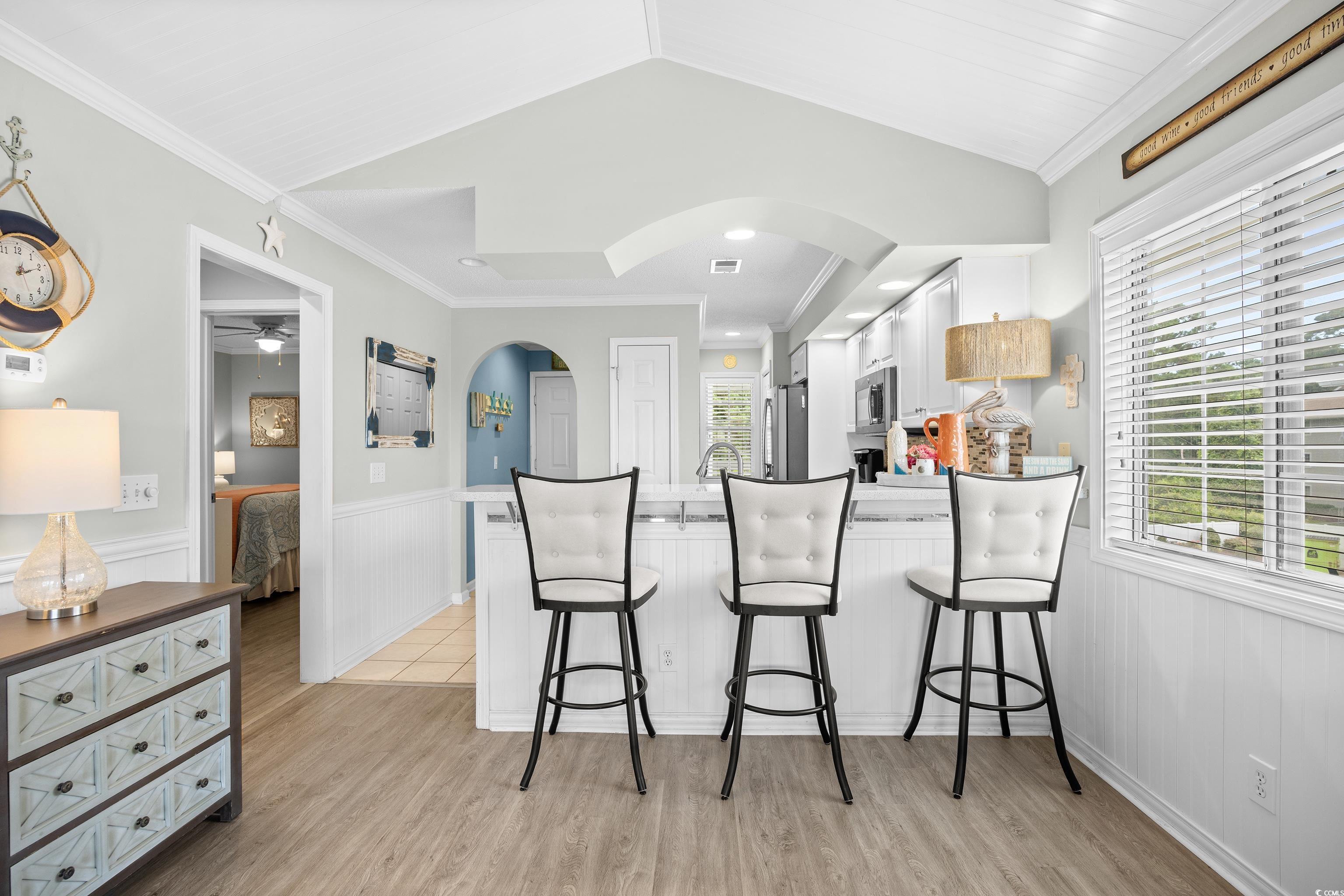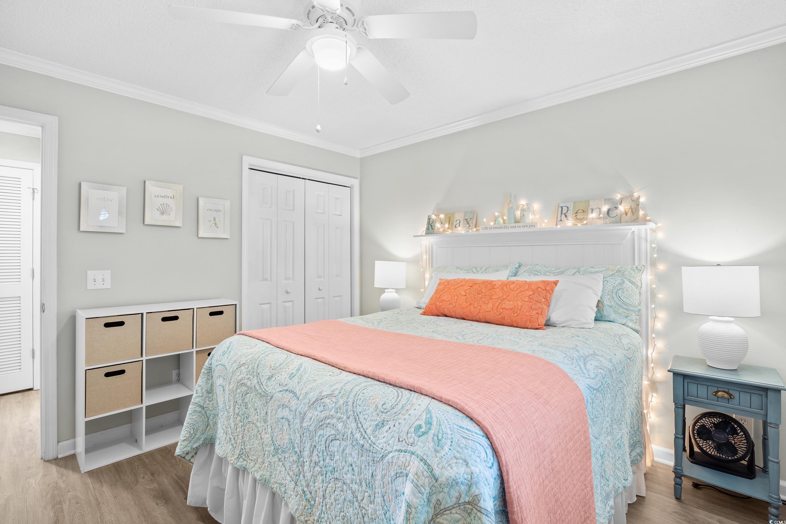 This is the one! Beautiful views of the ICW from this third-floor condo located in the Eastport Neighborhood off Hwy 17. Walk in the front door to updated LVP flooring through the living areas and bedrooms. New tile in bathrooms! Quartz counters in the kitchen, bar area and both bathrooms. Look up at the Beadboard Vaulted Ceiling in the living/dining room!! And beadboard wainscot throughout adds the elevated decor. New ceiling fans throughout including the screened porch. The kitchen has GE appliances which are only a few years old, some of the furniture is newer - the king bed in the master is new, and the queen in the 2nd bedroom is a few years old. Condominium is sold furnished and all appliances including washer/dryer convey. Enjoy the views of the Waterway, golf course location, and community pool. Close to North Myrtle Beach - Cherry Grove Beaches and shopping, dining and entertainment.